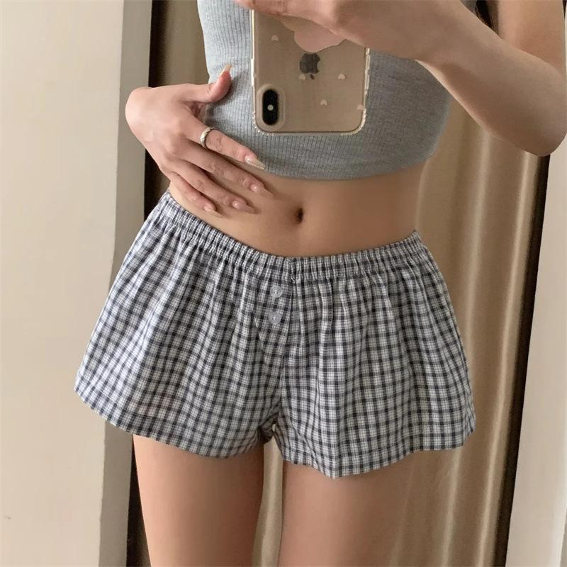 Shorts de Cuadros de Cintura Baja American Hot Girl 2025 Verano Nueva Moda Versátiles Sueltos Adelgazantes Casuales Deportivos Hot Pants
