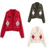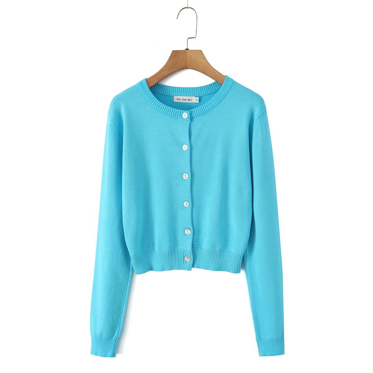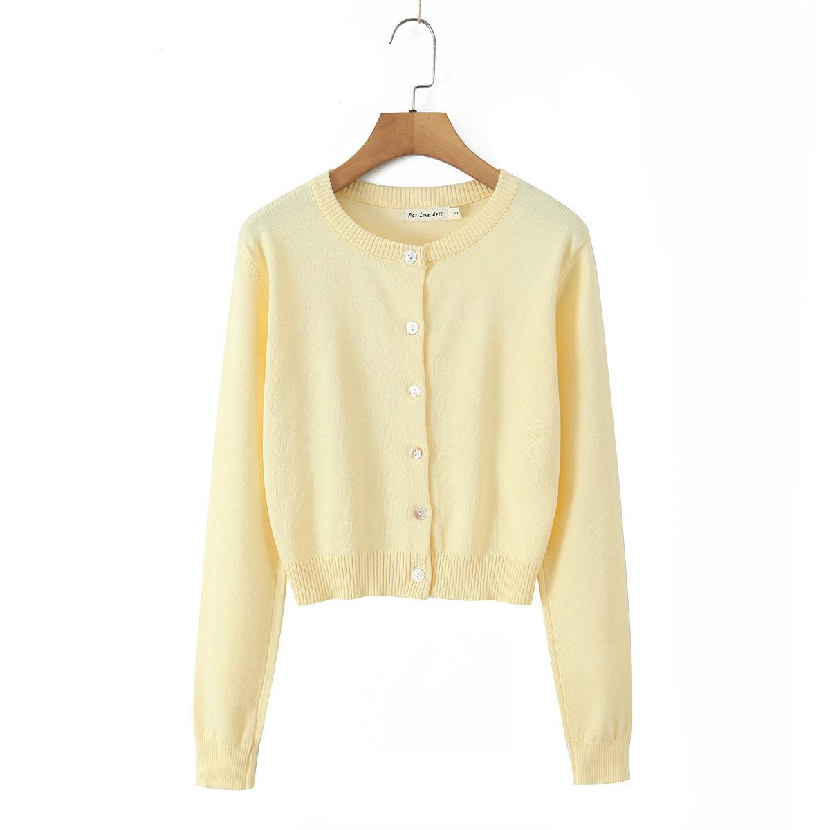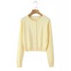 Z Estilo Europeo y Americano Transfronterizo 2025 Nueva Moda Temperamento Mujer Americano Retro Amarillo Claro Cuello Redondo Manga Larga Cárdigan de Punto