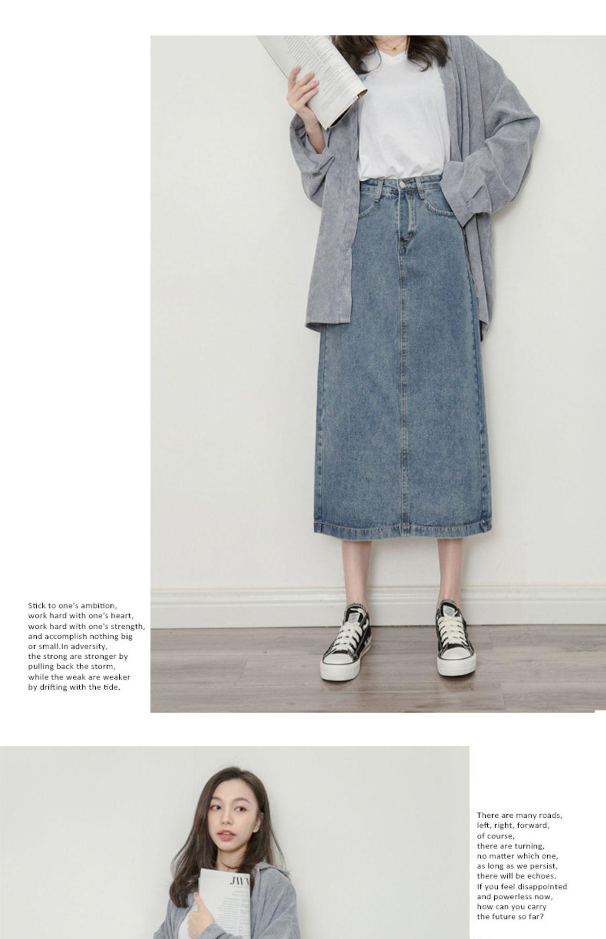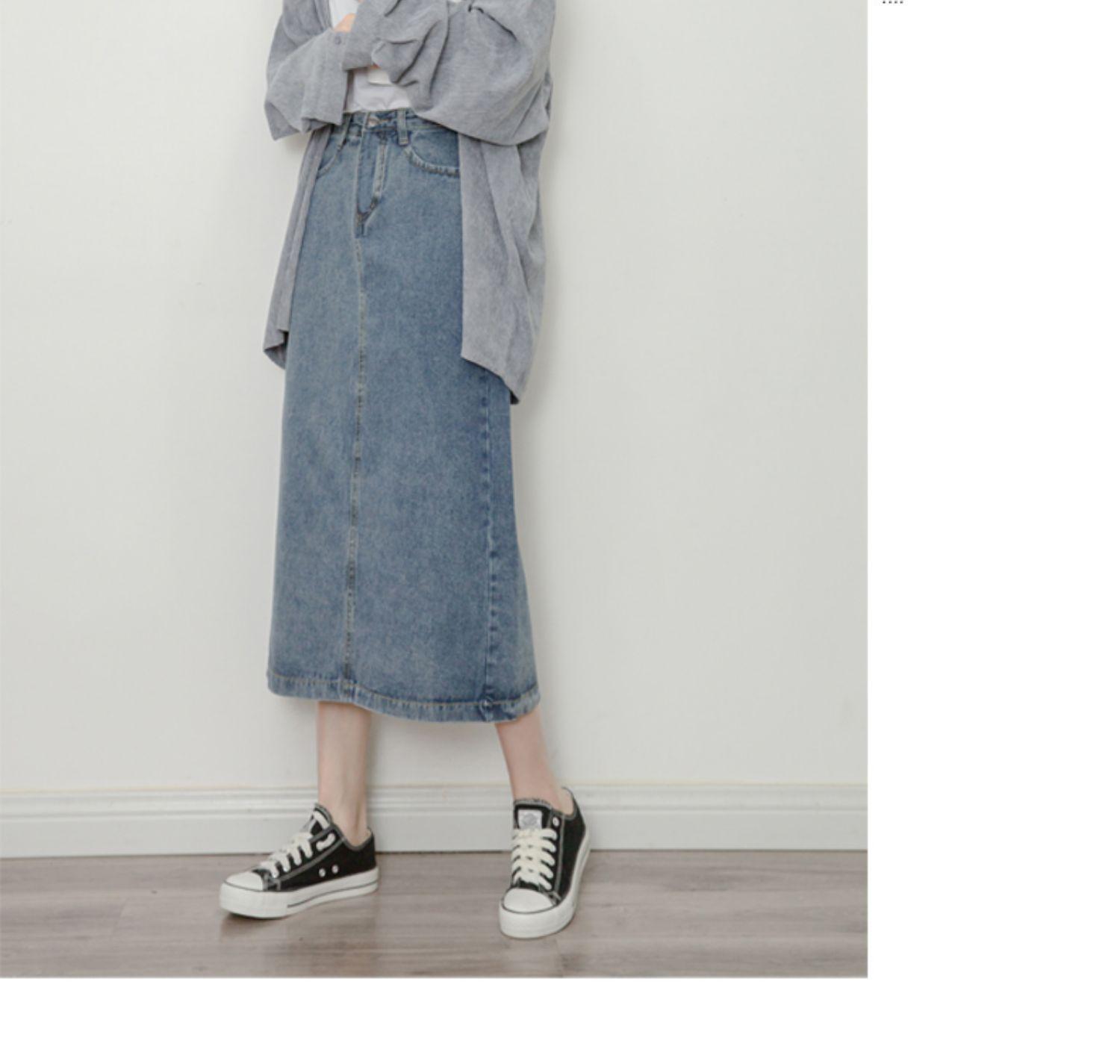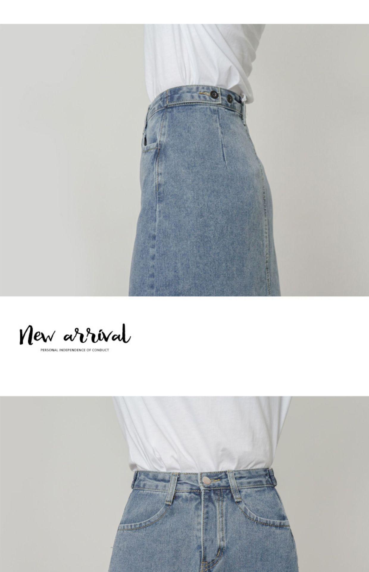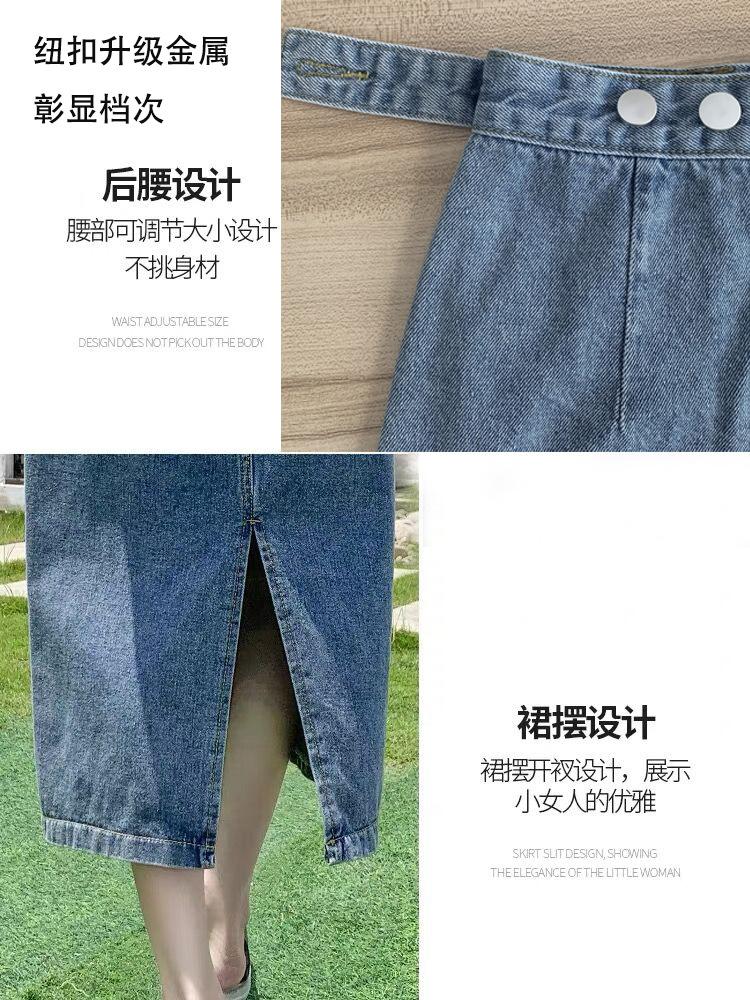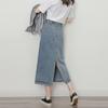 Falda Vaquera Vintage de Cintura Alta con Corte en A 2023 Primavera y Otoño Nueva Llegada Falda Entallada con Abertura para Mujer Falda Midi