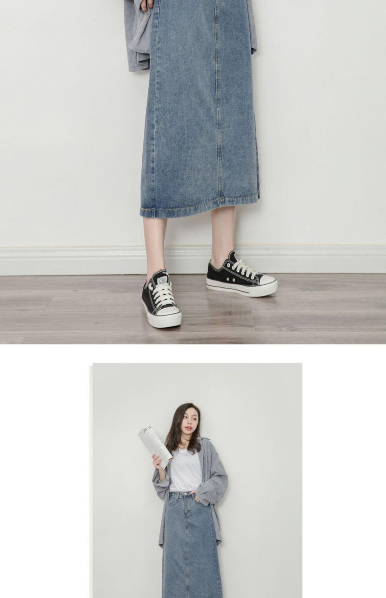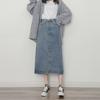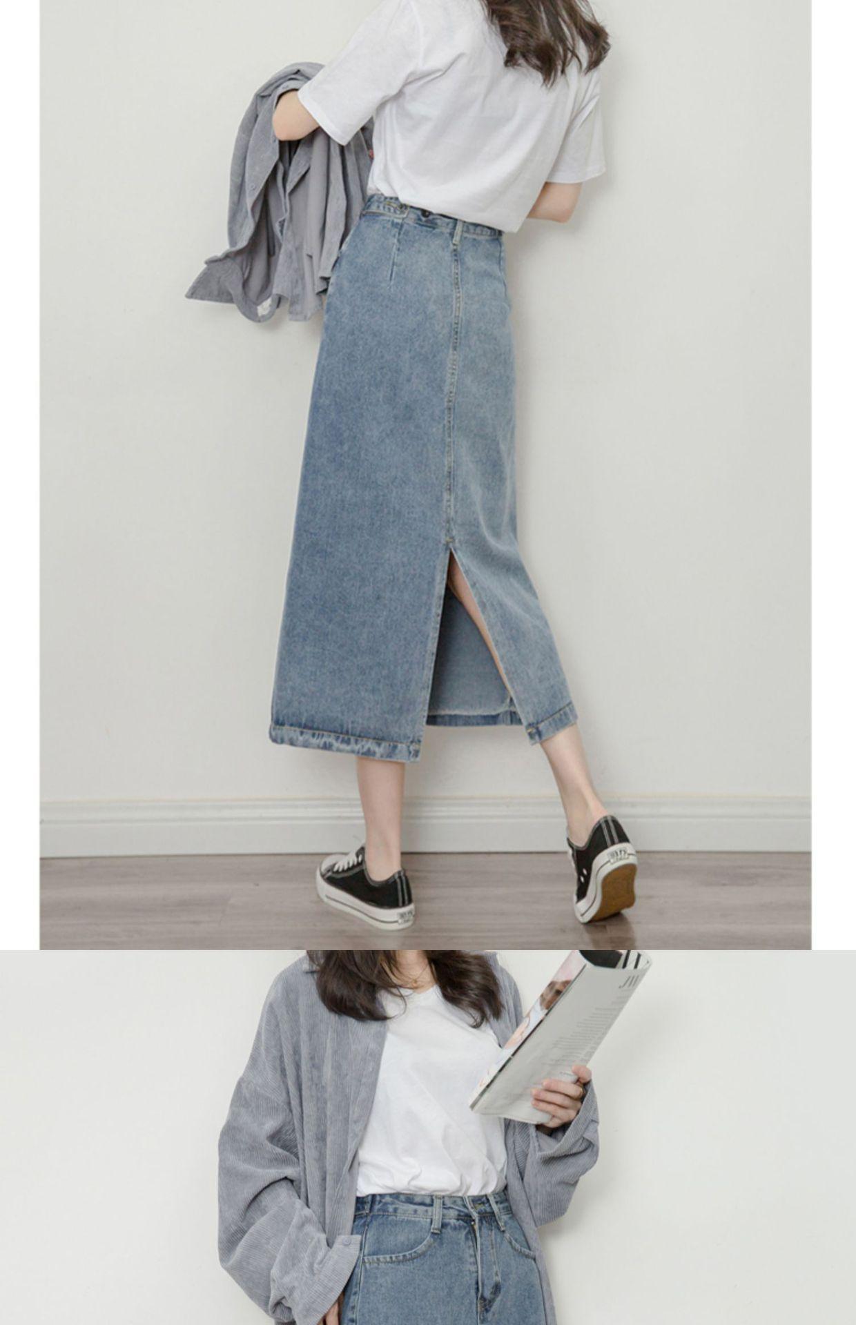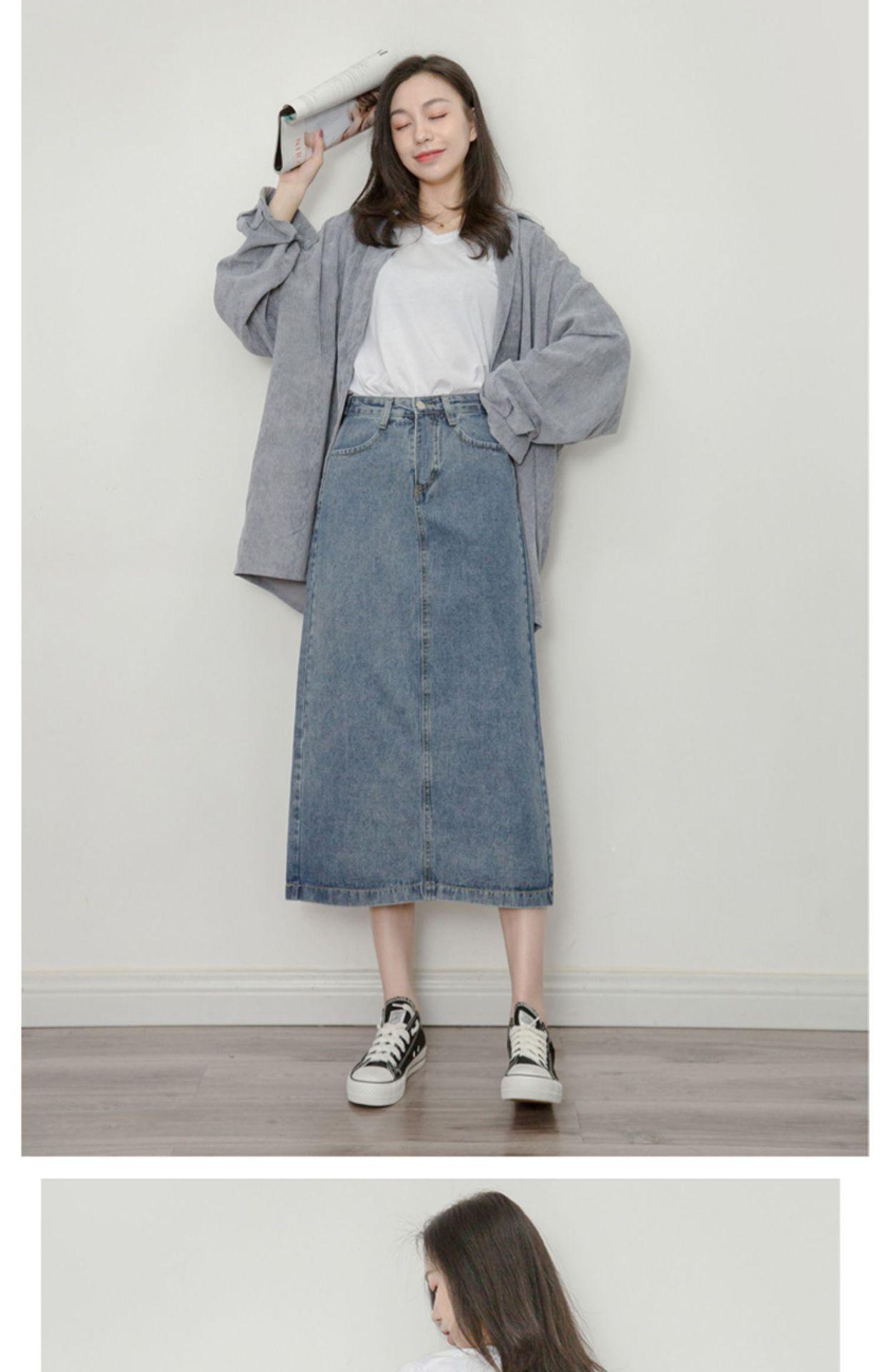 Falda Vaquera Vintage de Cintura Alta con Corte en A 2023 Primavera y Otoño Nueva Llegada Falda Entallada con Abertura para Mujer Falda Midi