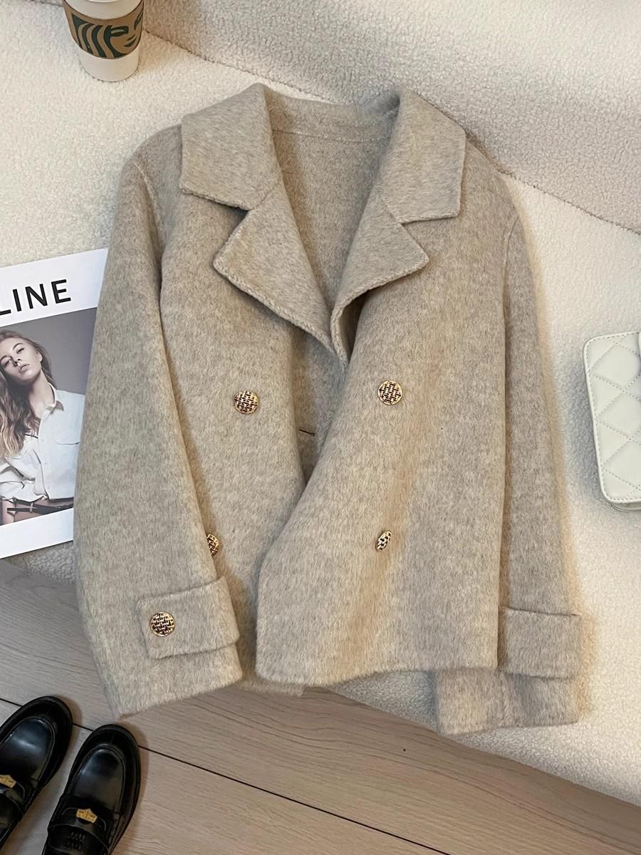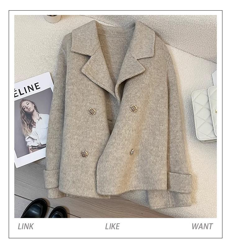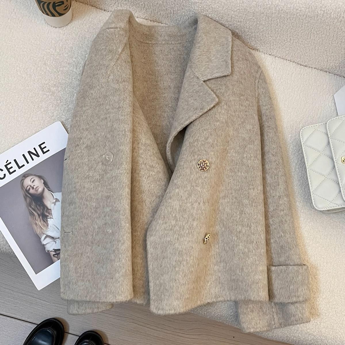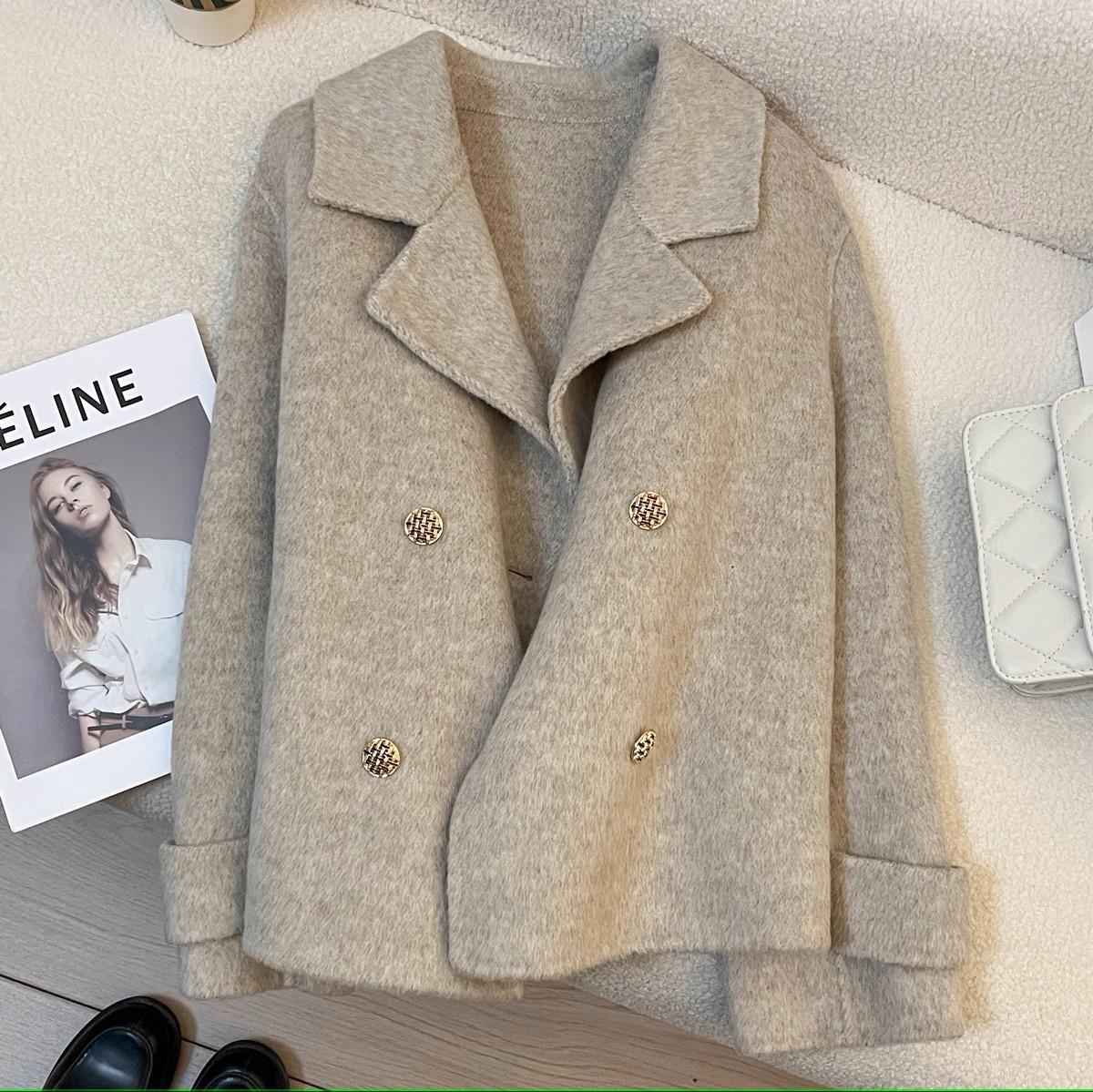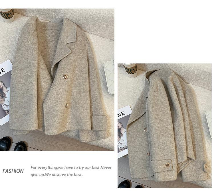 Abrigo de Lana de Primavera de Lana de Doble Cara para Mujer Nuevo Estilo Coreano Pequeño de Alta Gama Elegante Abrigo Corto Ropa de Mujer