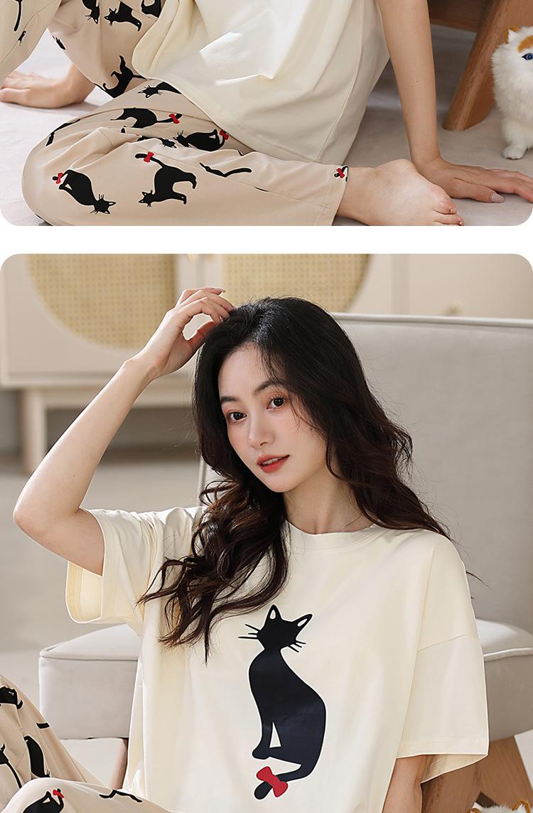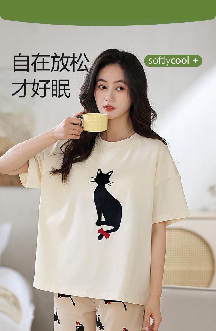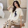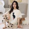 Pijama de pantalones cortos de manga corta para mujer de verano de algodón se puede usar 2025 nuevo caricatura talla grande para mujer primavera y otoño ropa para el hogar