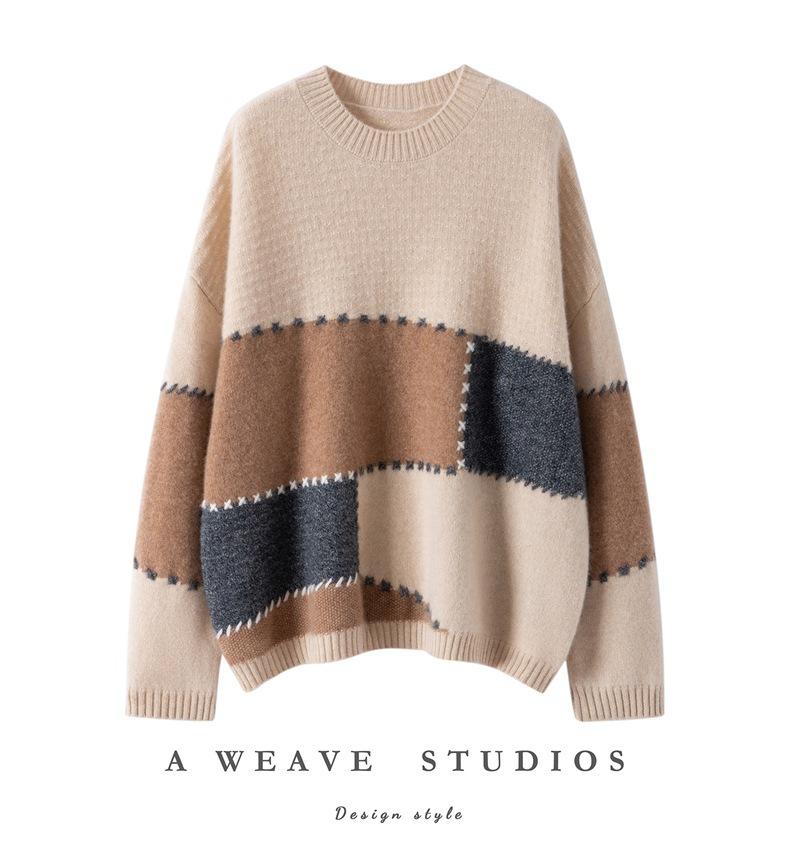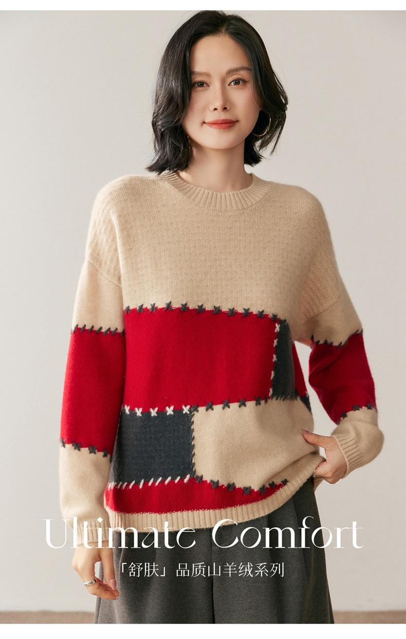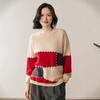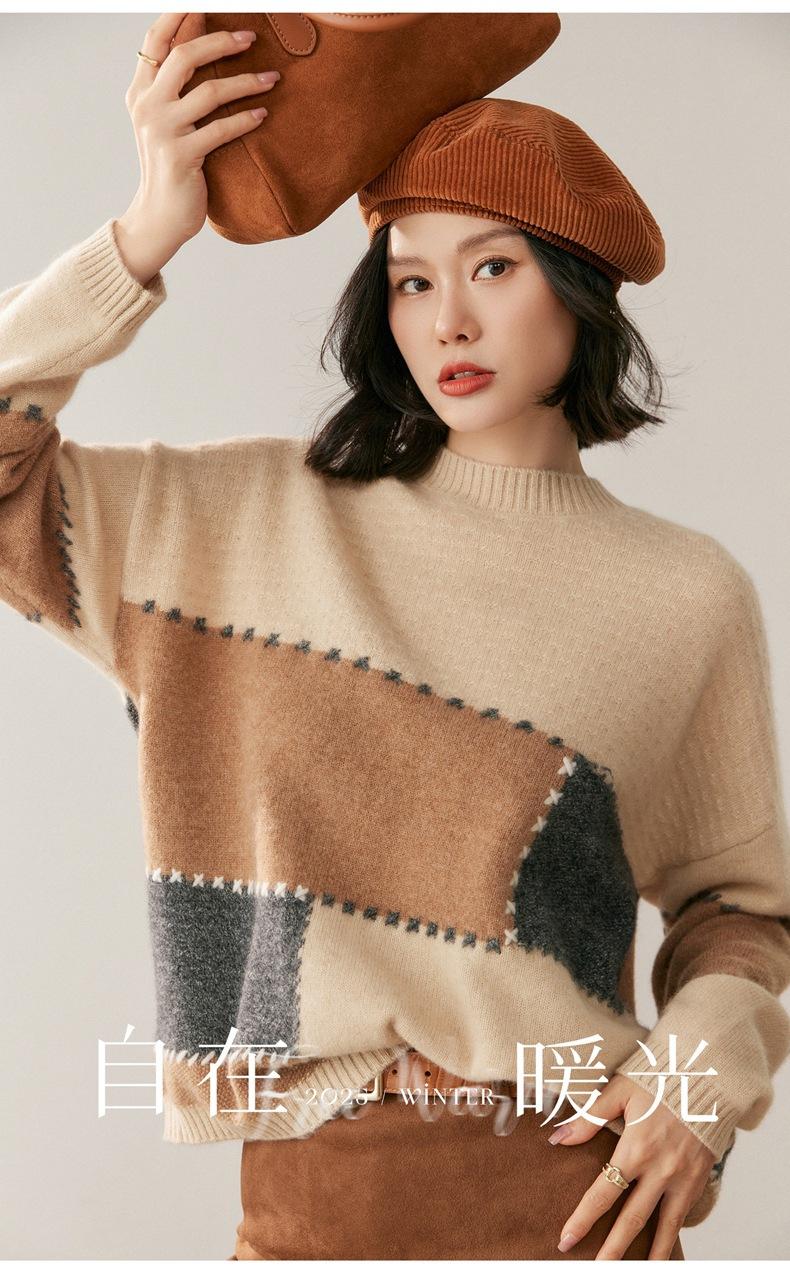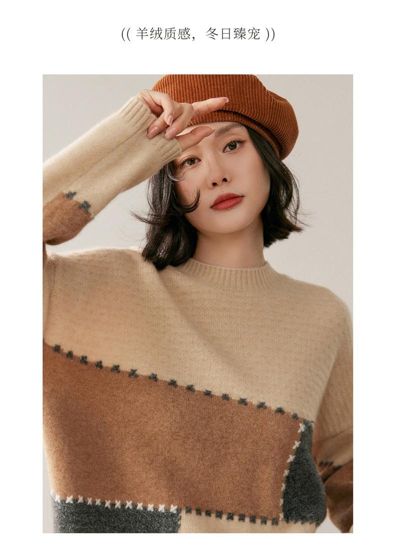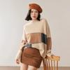 2025 Otoño/Invierno Nuevo Color Block Cachemira para Mujer Cuello Semi-Alto Capa Base Estilo Suave Suéter Grueso Cálido