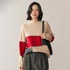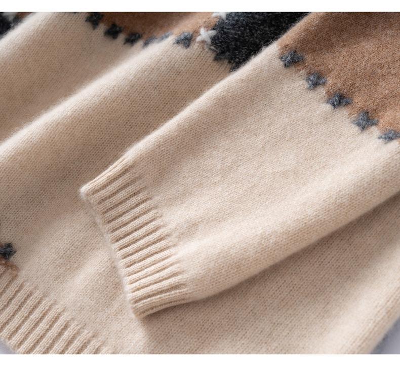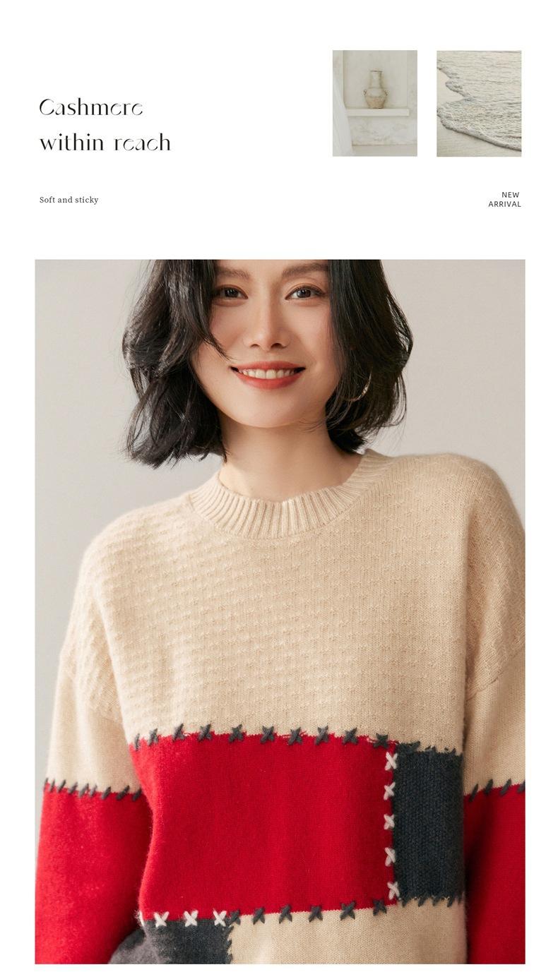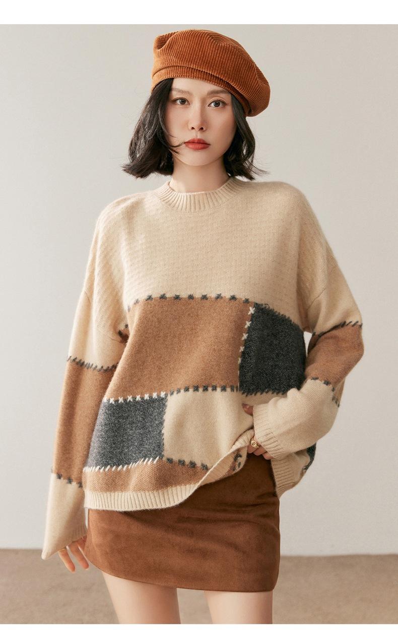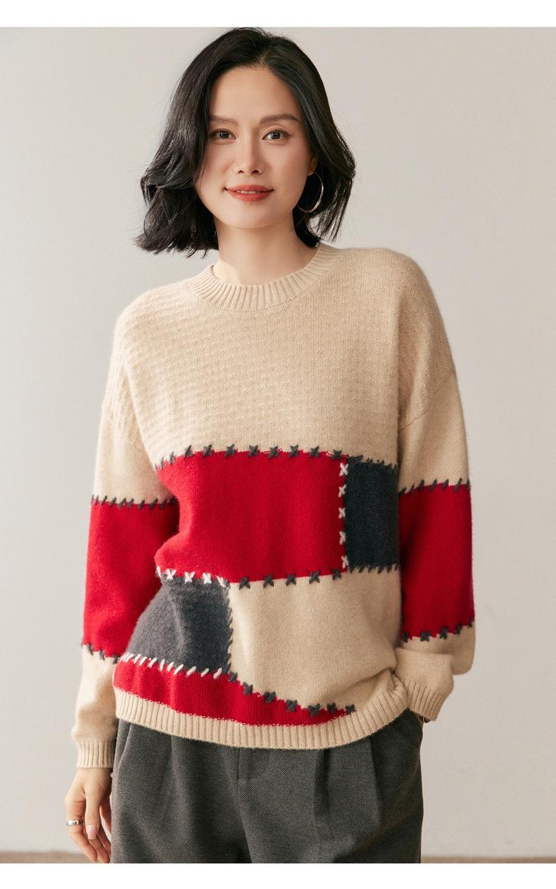 2025 Otoño/Invierno Nuevo Color Block Cachemira para Mujer Cuello Semi-Alto Capa Base Estilo Suave Suéter Grueso Cálido