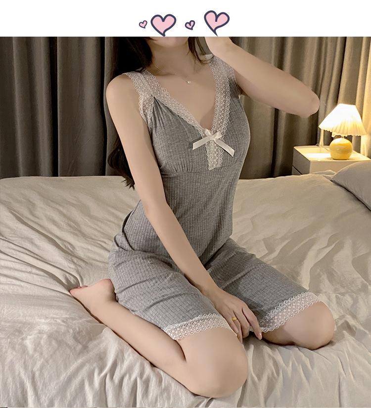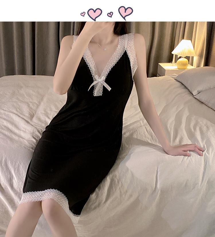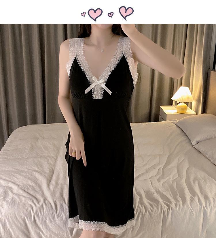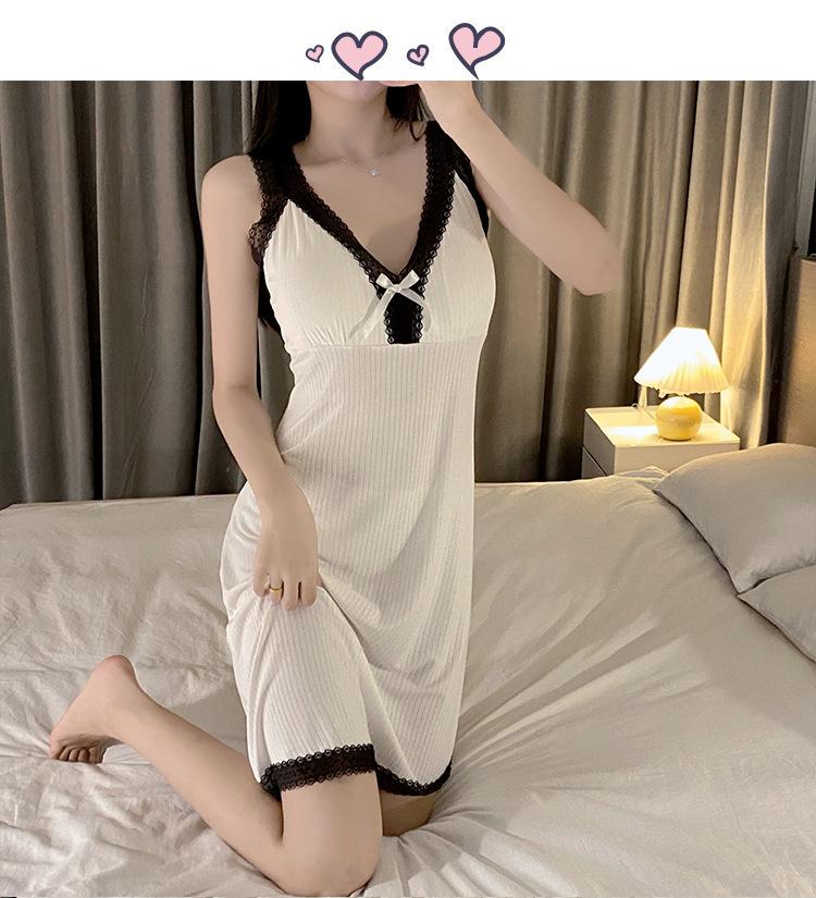 Camisón sin mangas con tirantes y almohadillas para el busto para mujer Verano Dulce Sexy Lindo Estilo Coreano Hogar Dormitorio de Niñas Pijama Vestido