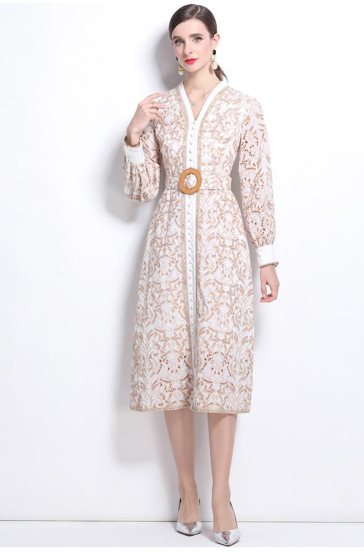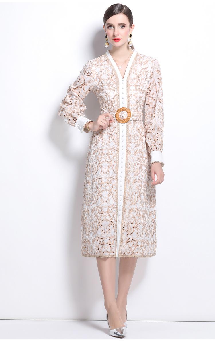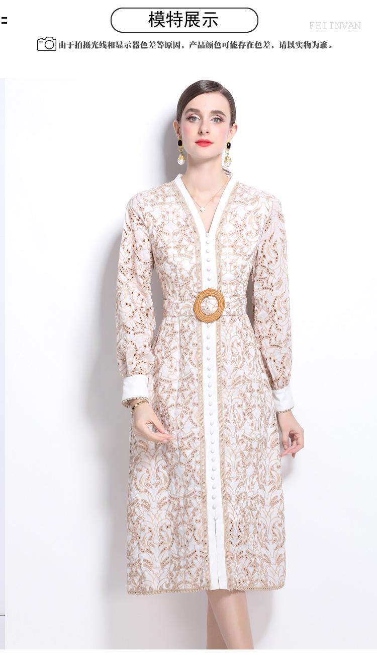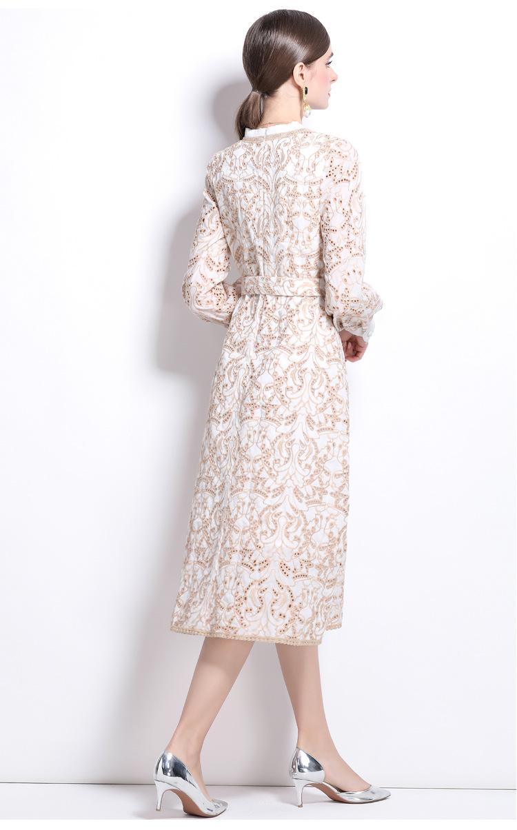 2024 Nuevo Estilo Elegante Falda Larga Interior Elegante Bordado Calado Cárdigan de Un Solo Botón Adelgazante Vestido