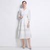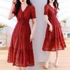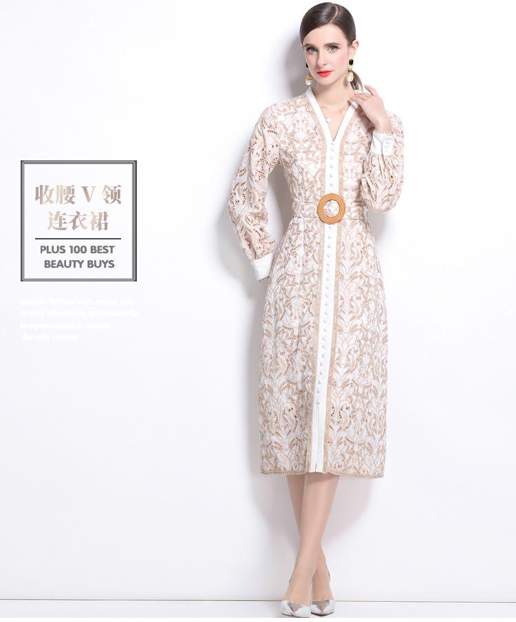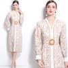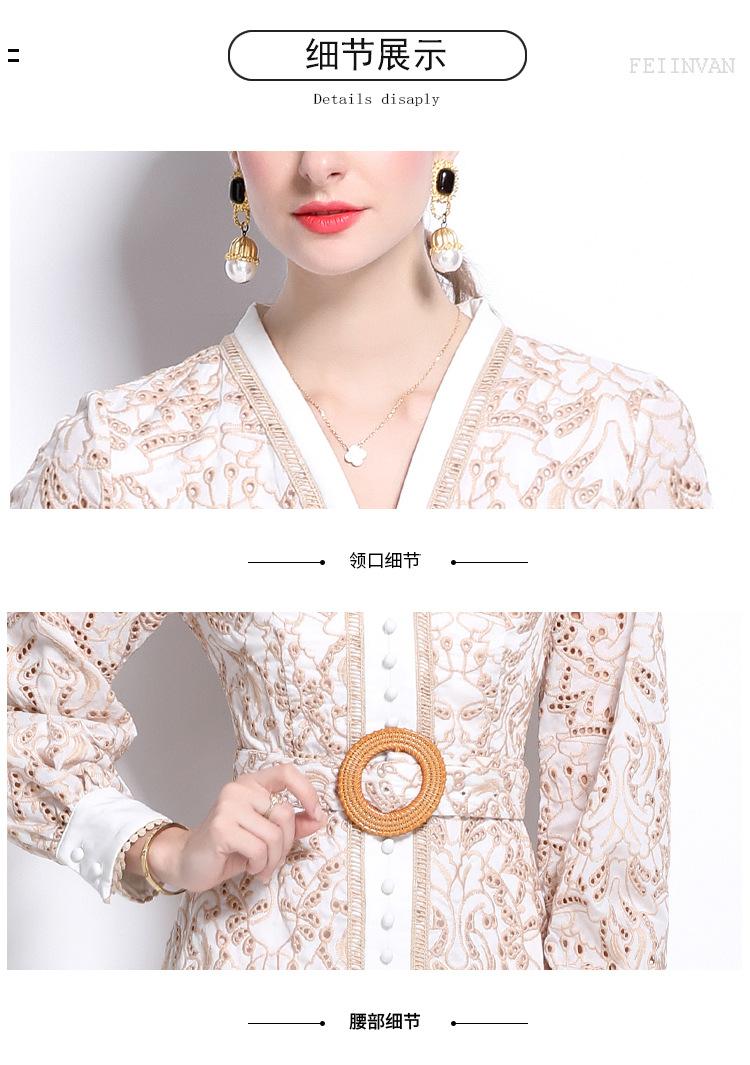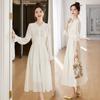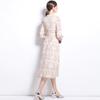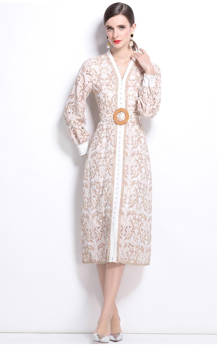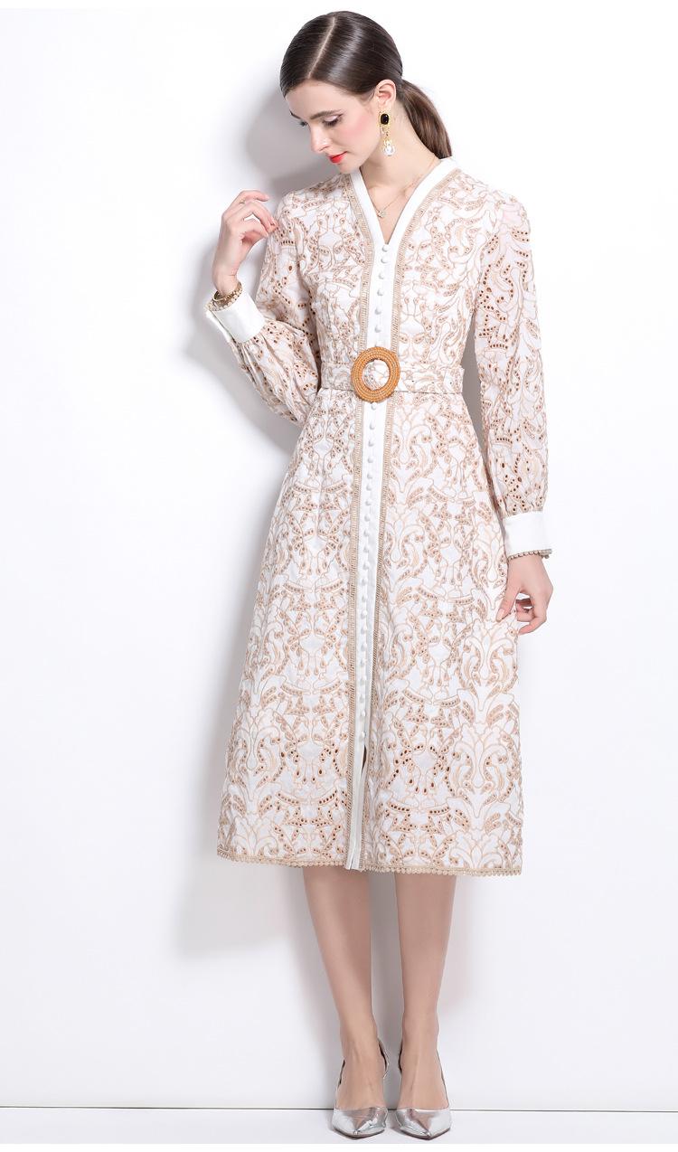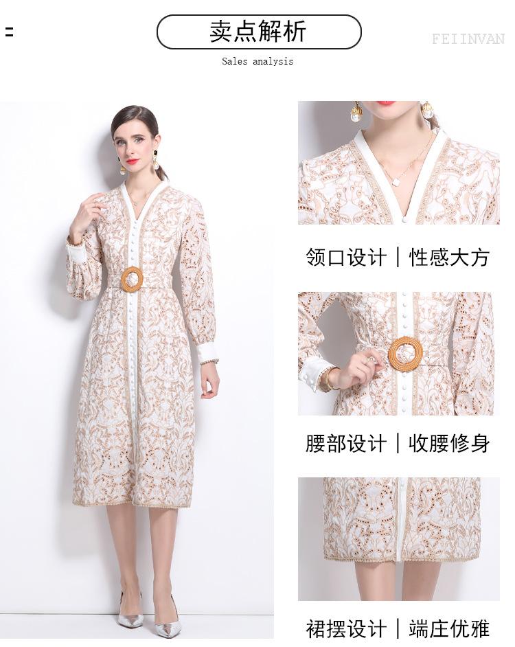 2024 Nuevo Estilo Elegante Falda Larga Interior Elegante Bordado Calado Cárdigan de Un Solo Botón Adelgazante Vestido