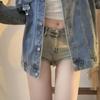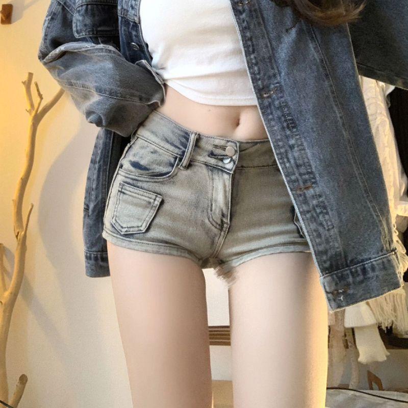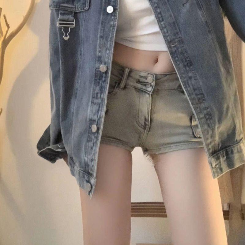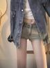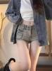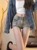 Shorts de mezclilla desgastados para chica sexy para mujer 2024 verano nuevo retro americano cintura alta corte slim pierna ancha ultra cortos hot pants
