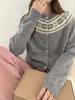 Cárdigan de Punto de Lana Pura para Mujer con Cuello Redondo Otoño e Invierno Nuevo Diseño Jacquard de Combinación de Colores Estilo Commuter Ropa Exterior Trendy