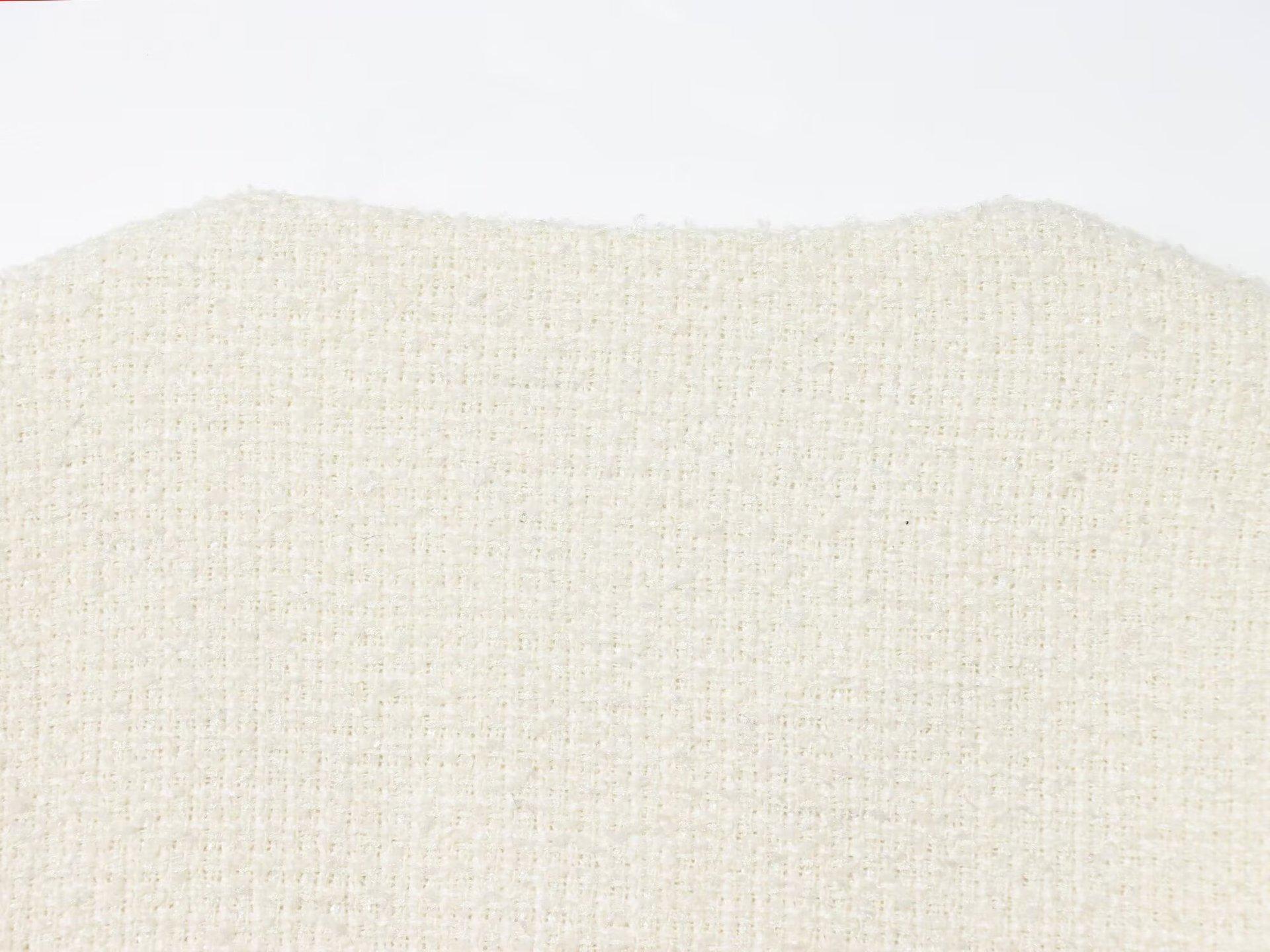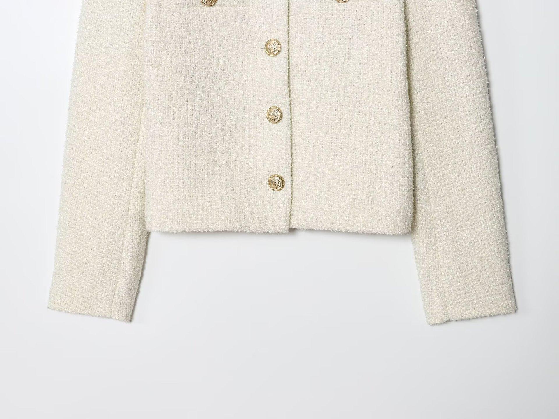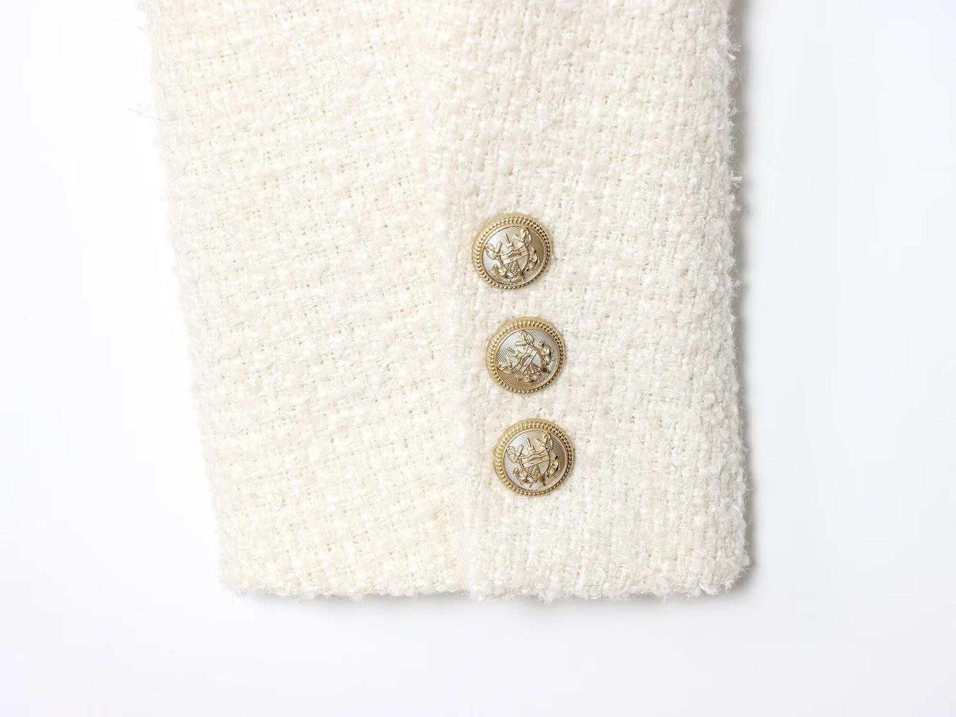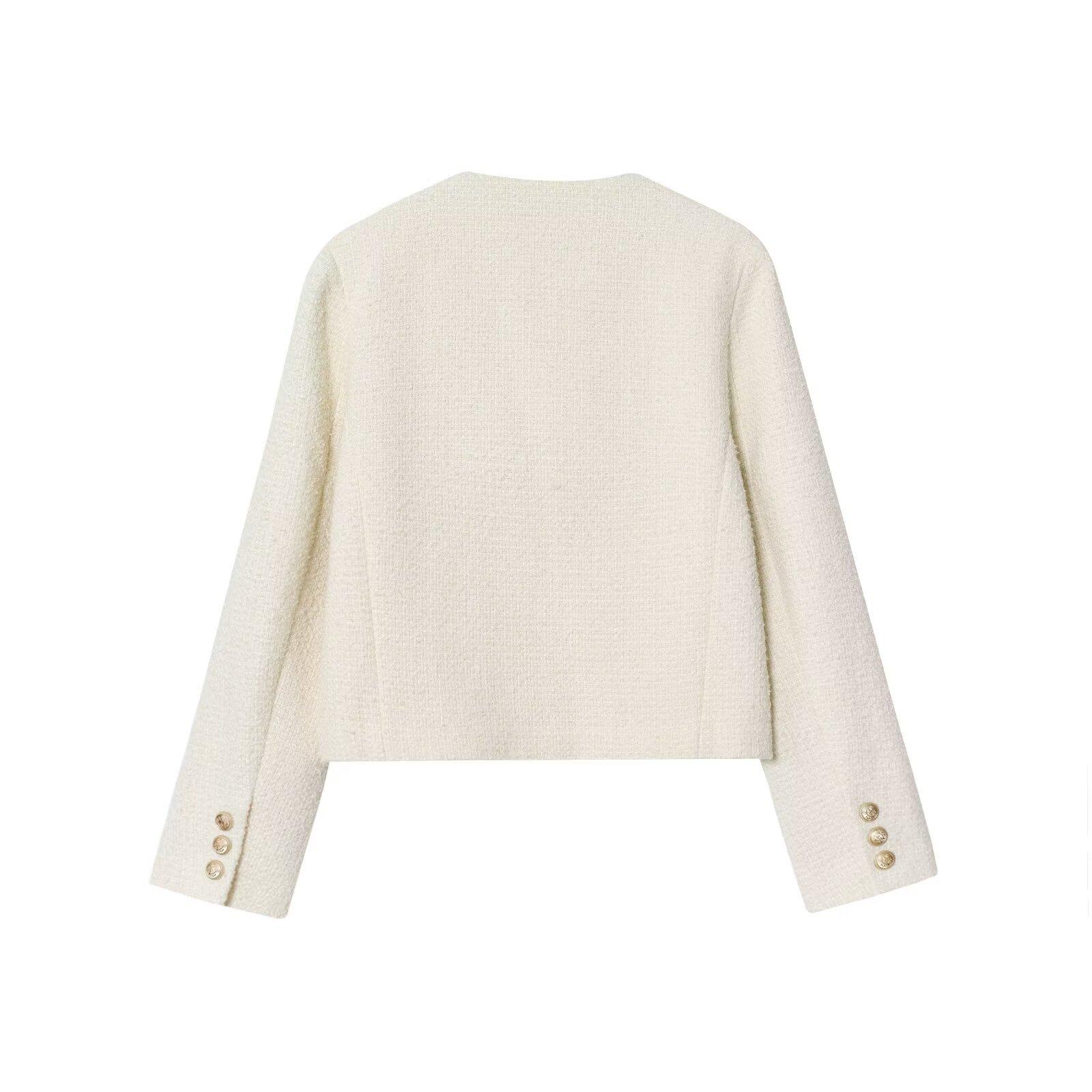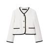 2025 Estilo Europeo y Americano Verano Mujer Chaqueta Tweed Hebilla Metálica Pequeña Fragante 61238 Blanco Negro Acrílico Sin Cuello Manga Larga