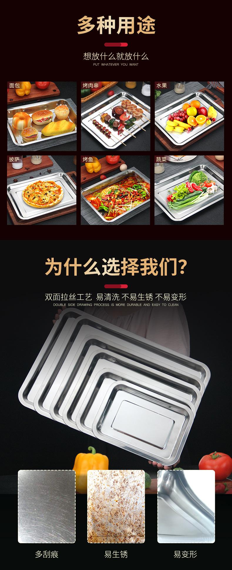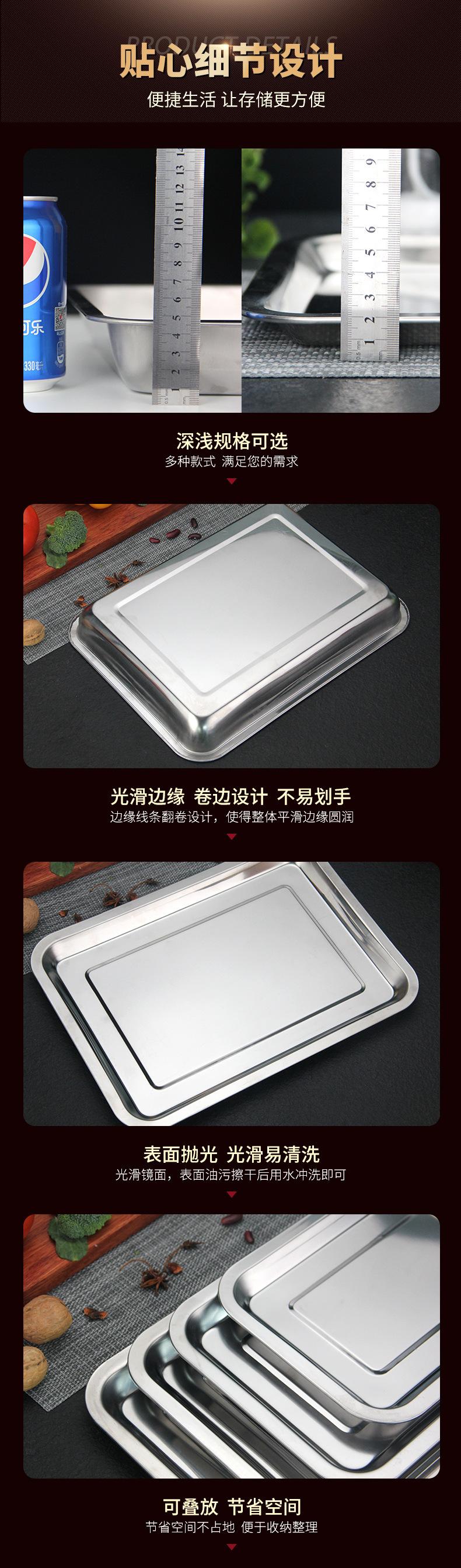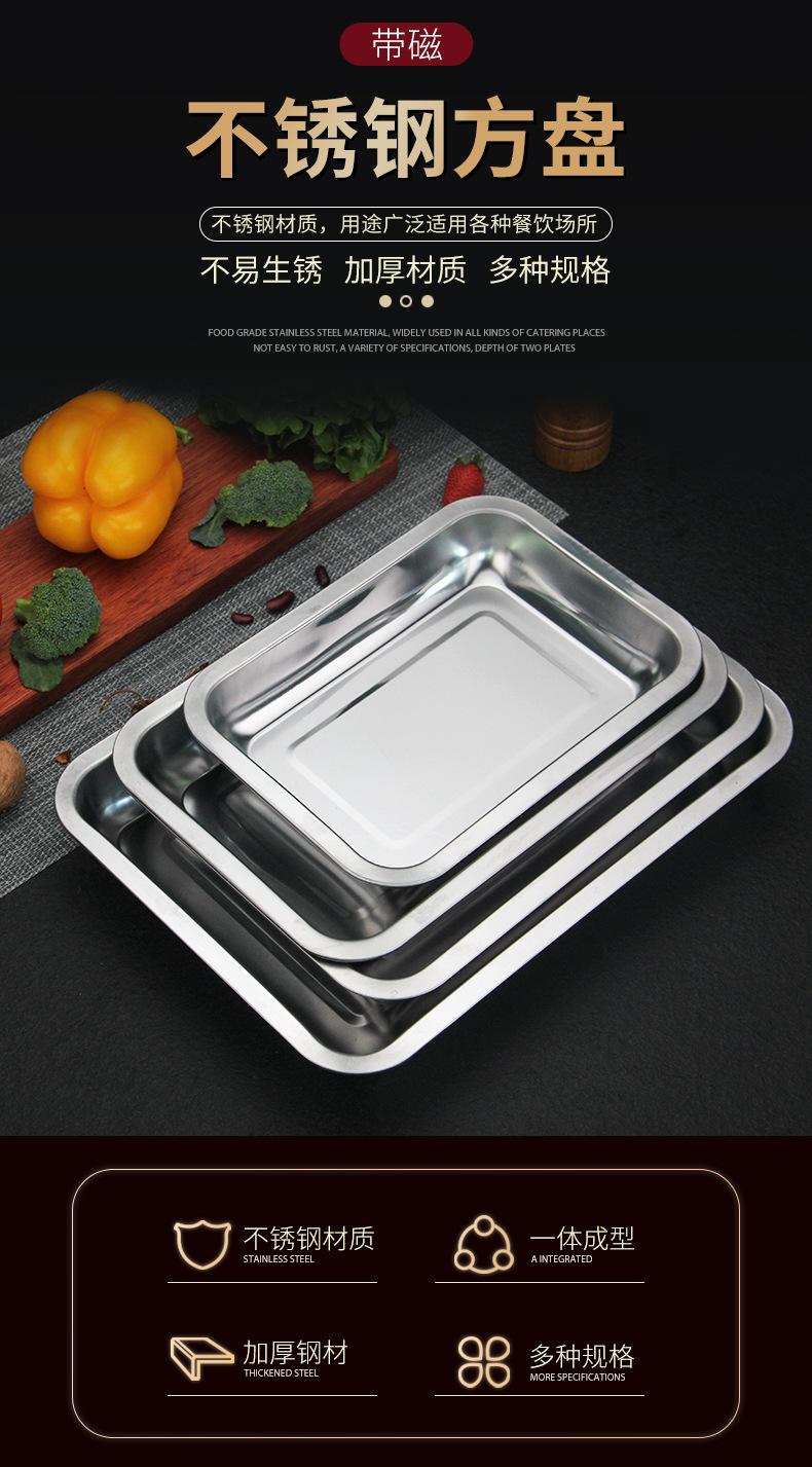 Plato cuadrado de acero inoxidable bandeja rectangular plato de exhibición plato para barbacoa plato para estofado plato para arroz de cantina plato comercial para plato frío