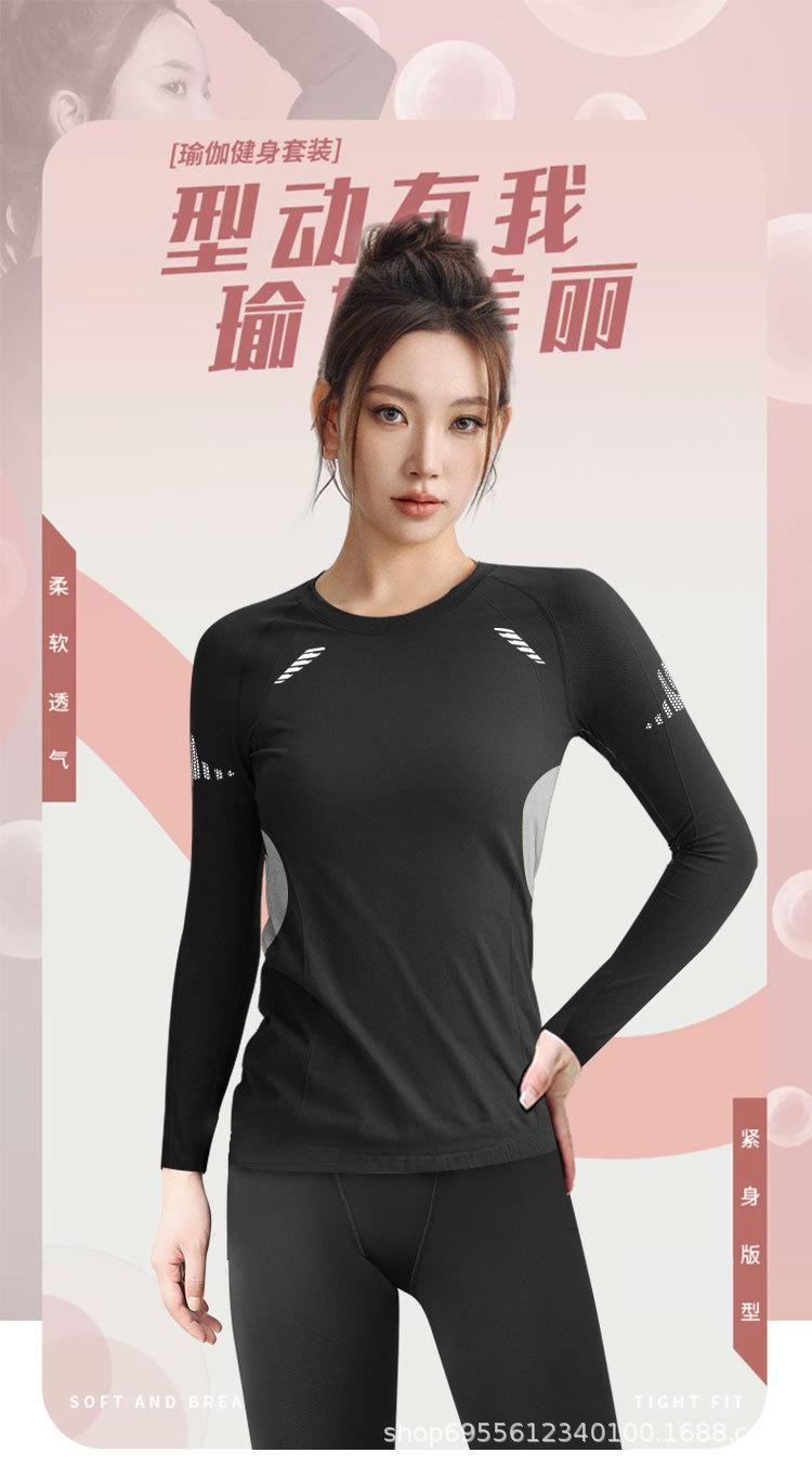 Ropa de Yoga para Mujer Profesional Pilates Running Entrenamiento Deportivo Malla Top Manga Larga Otoño e Invierno Traje de Fitness de Alto Nivel