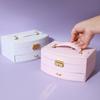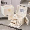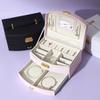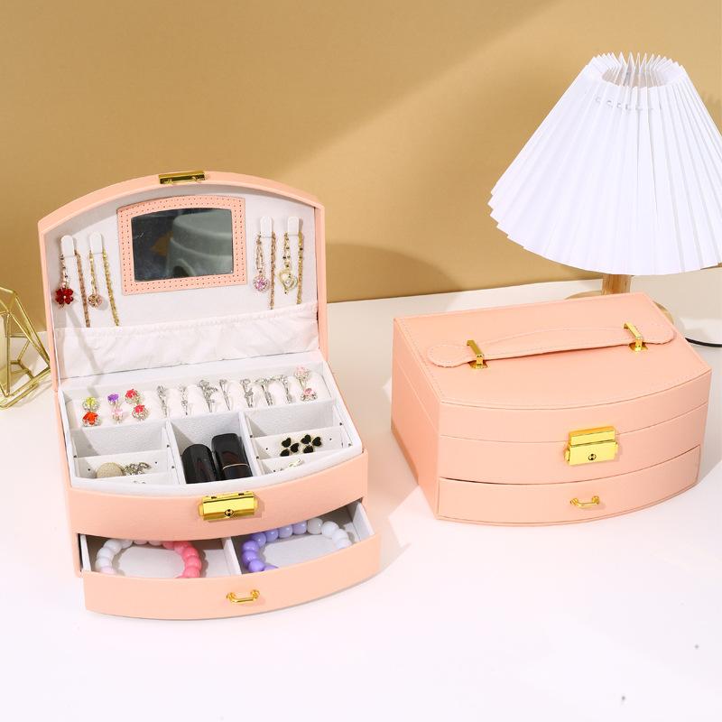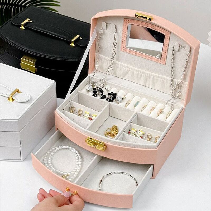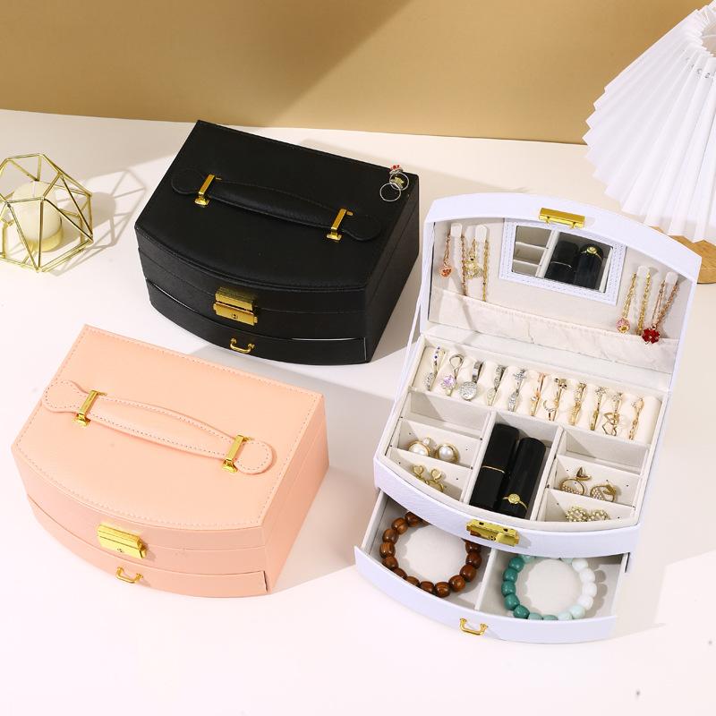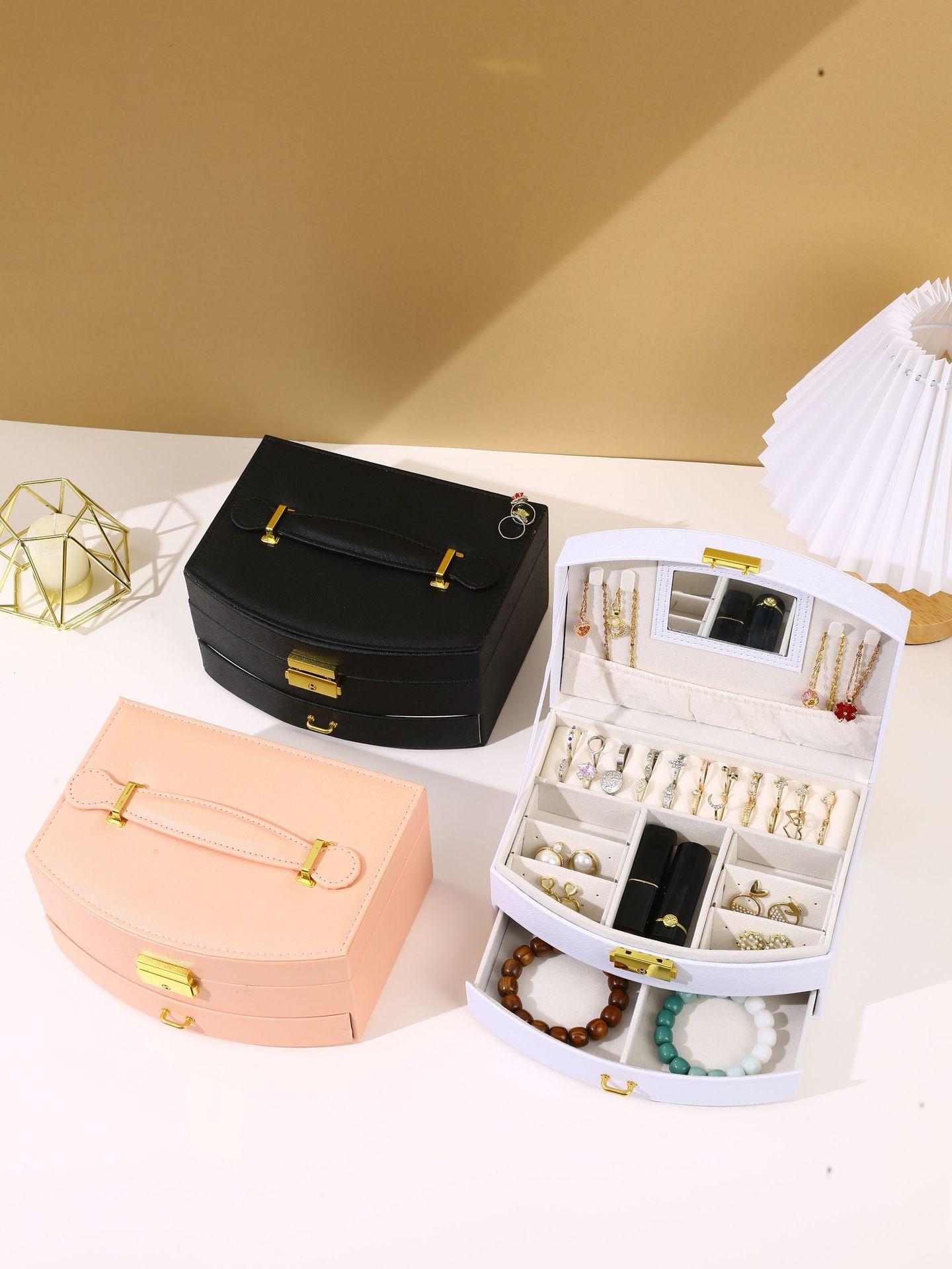 Caja de Joyería Doble Capa en Forma de Abanico con Espejo Caja de Exhibición de Joyería Tocador Portátil de Gama Alta Caja de Almacenamiento de Joyería