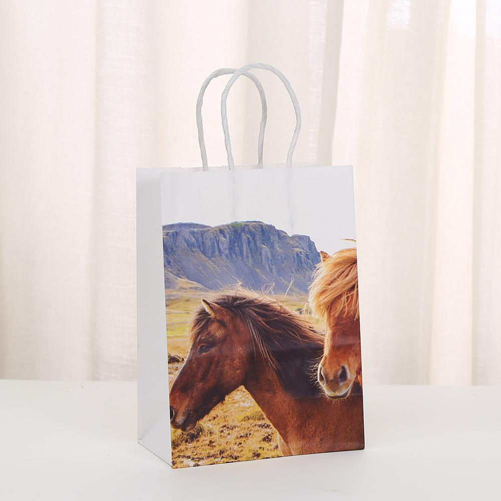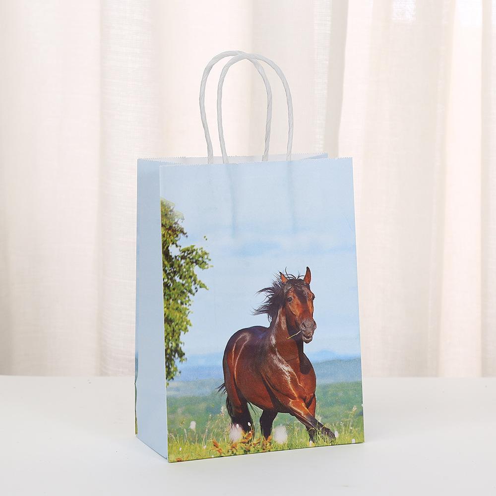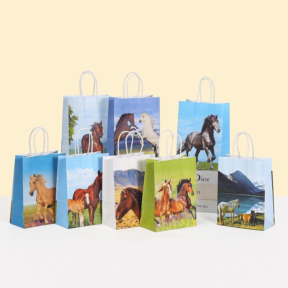 Nueva Bolsa de Papel Kraft Serie Caballo Impresión Animal Bolsa de Compras Vacaciones Embalaje de Regalo Portátil Bolsa de Papel