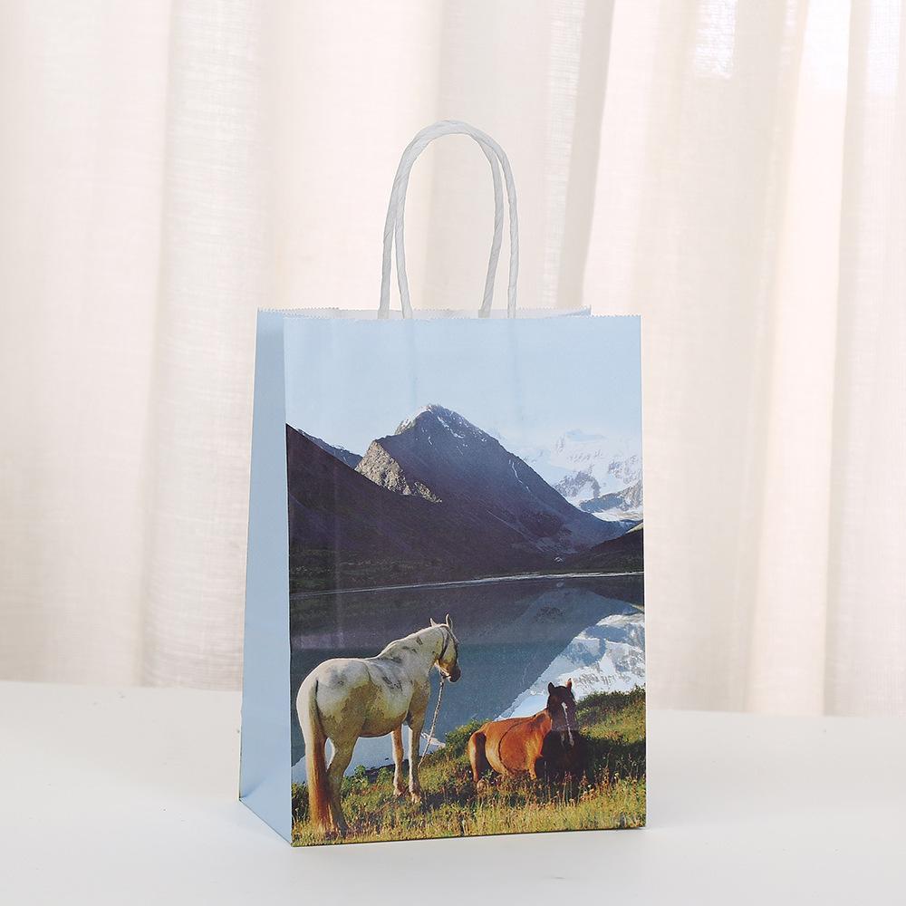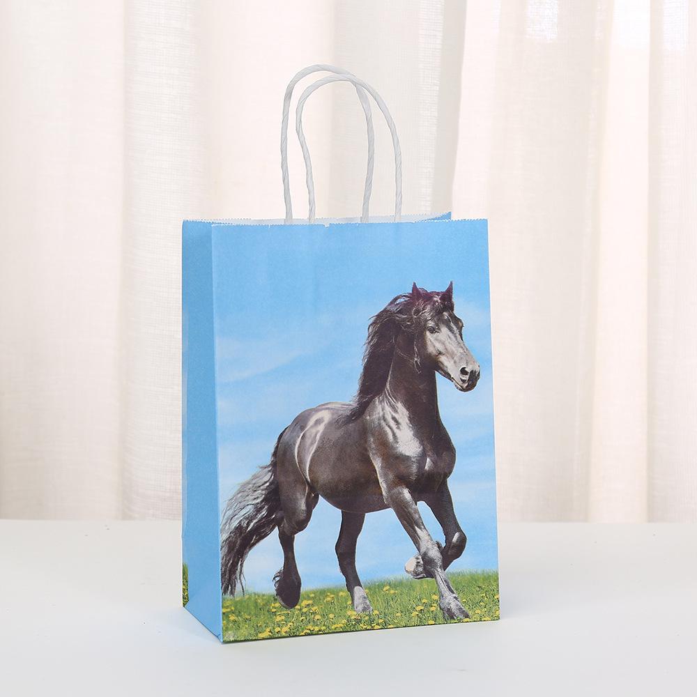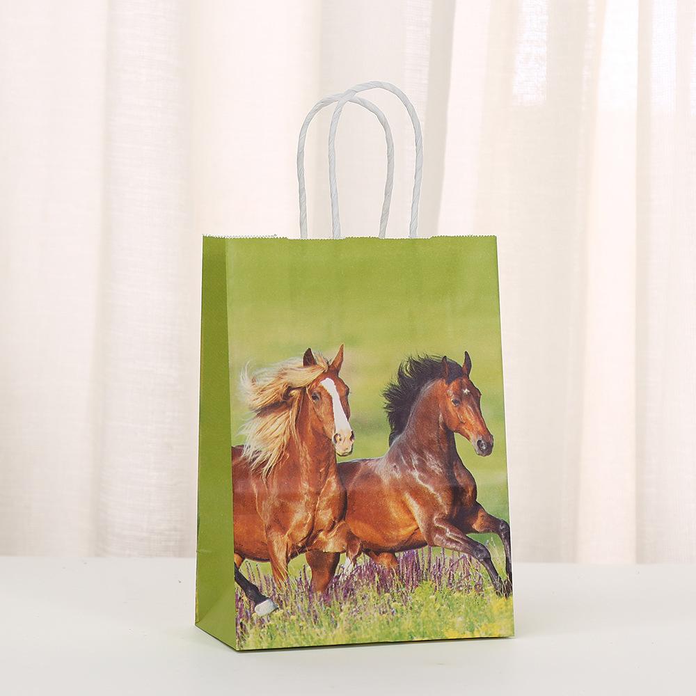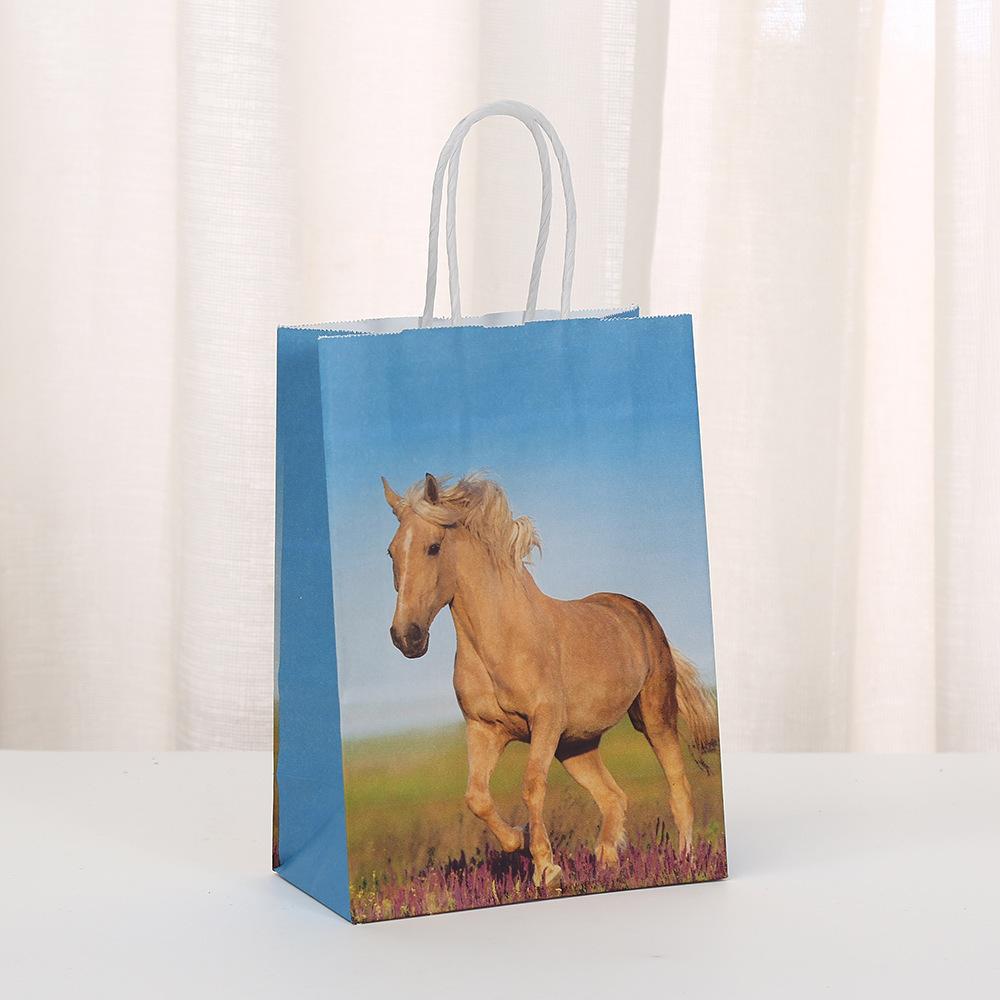 Nueva Bolsa de Papel Kraft Serie Caballo Impresión Animal Bolsa de Compras Vacaciones Embalaje de Regalo Portátil Bolsa de Papel