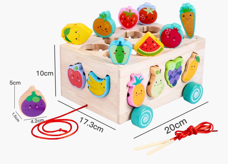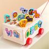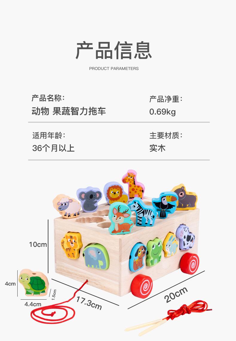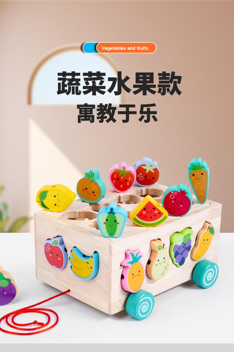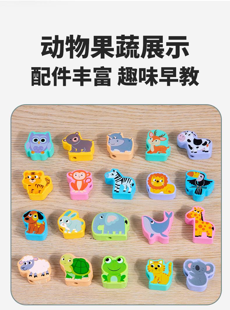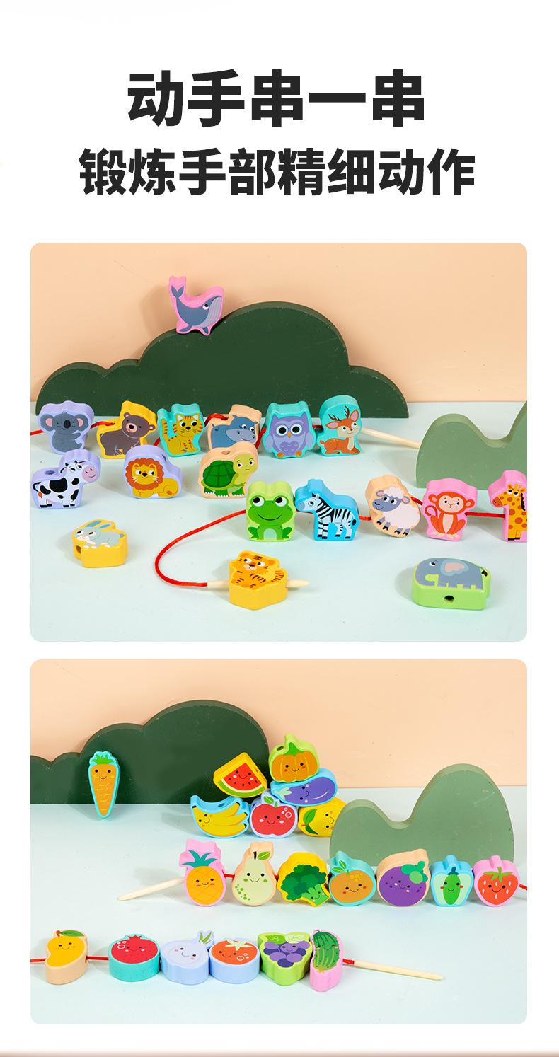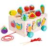 Juguetes de madera para niños, cuerda de emparejamiento cognitivo de animales y frutas, juguetes educativos multifuncionales para arrastrar para niños y niñas