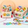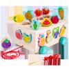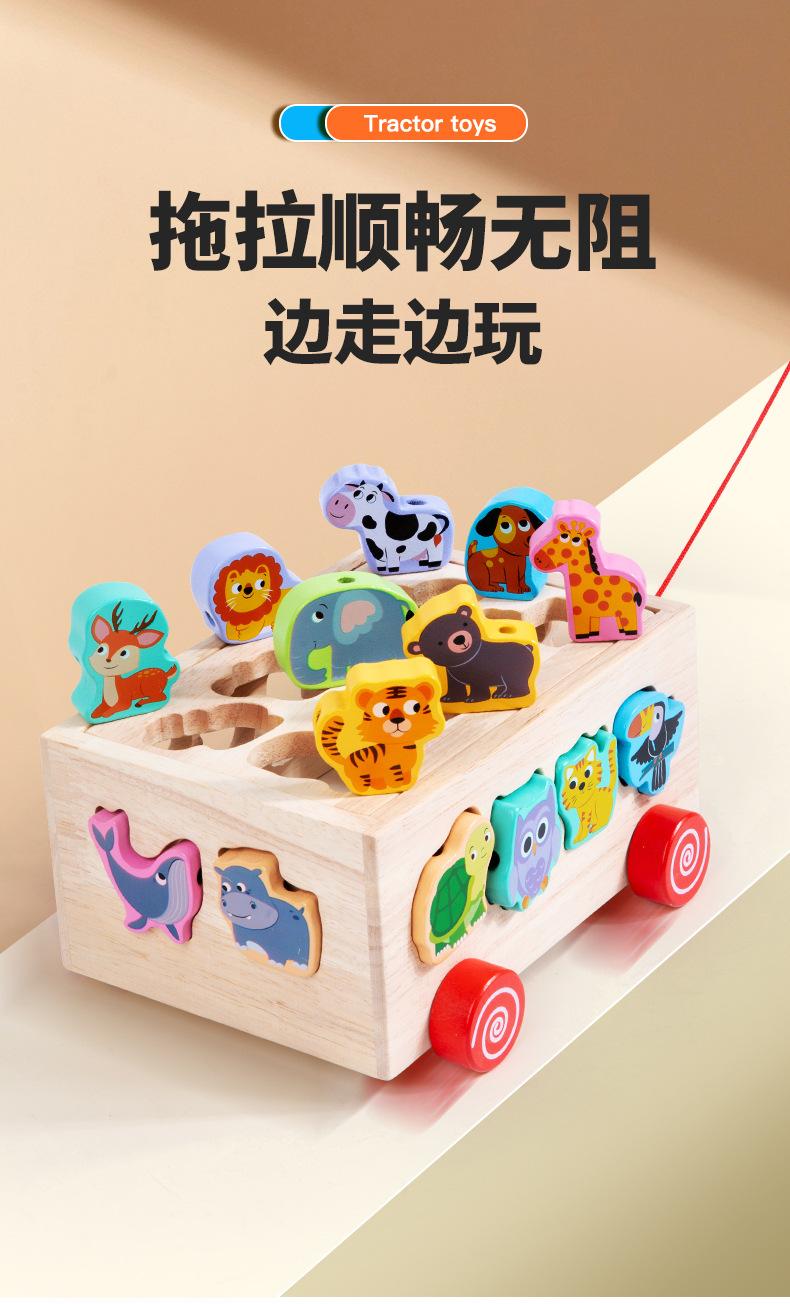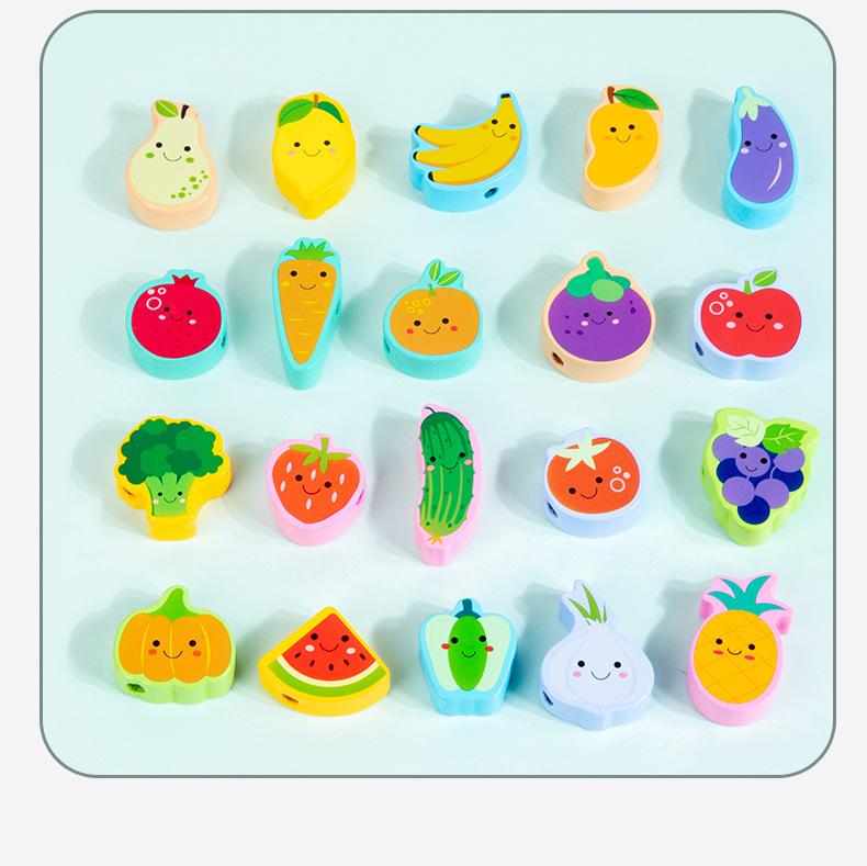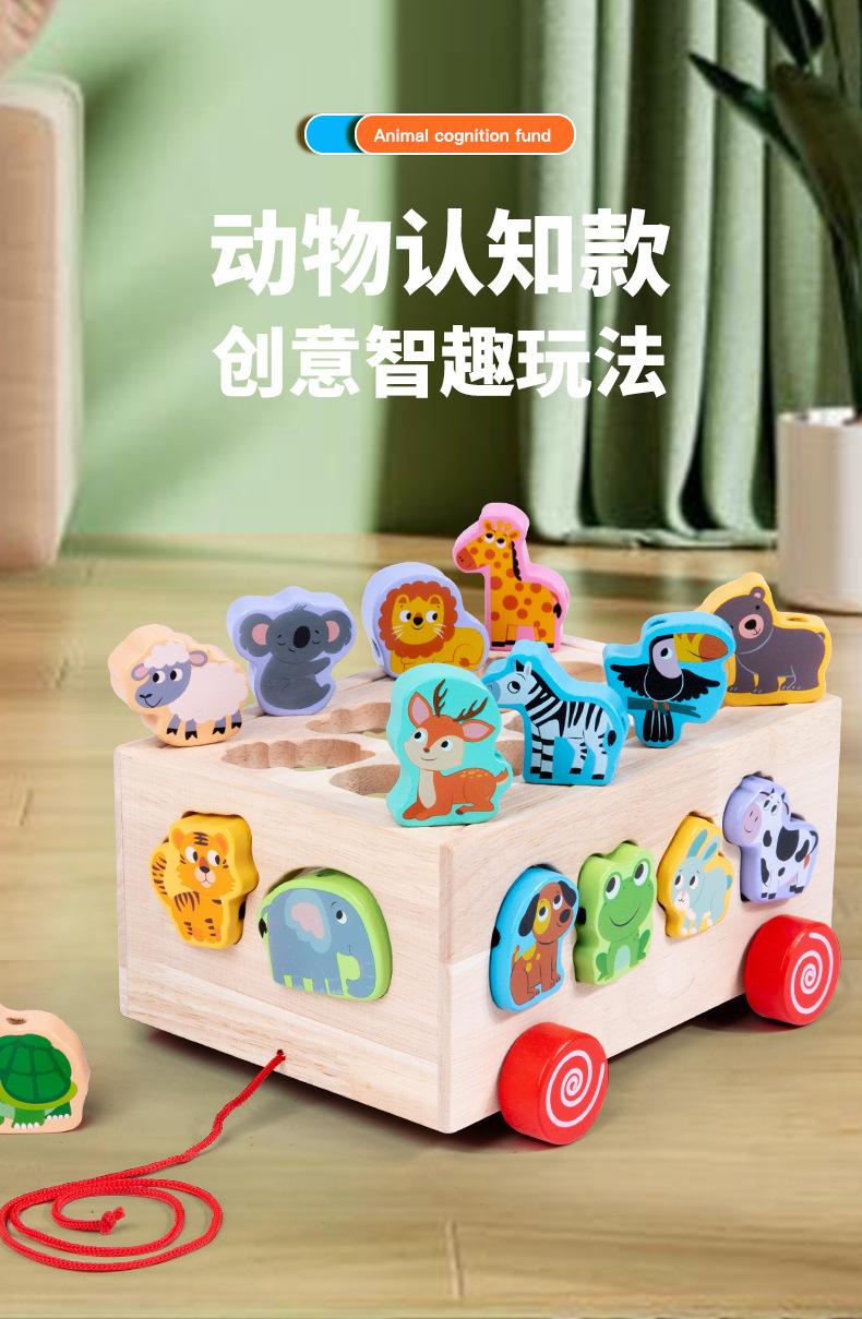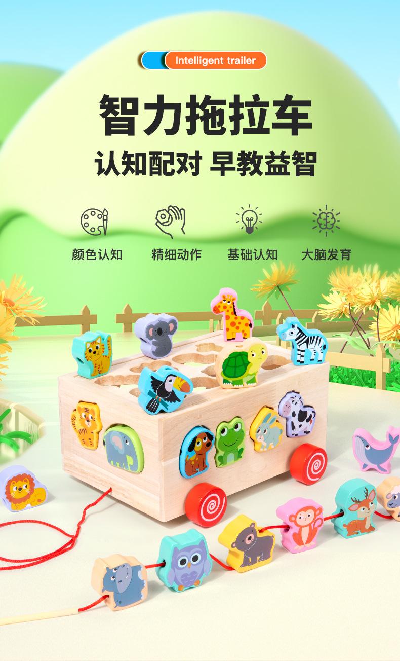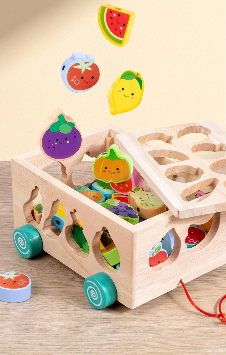 Juguetes de madera para niños, cuerda de emparejamiento cognitivo de animales y frutas, juguetes educativos multifuncionales para arrastrar para niños y niñas