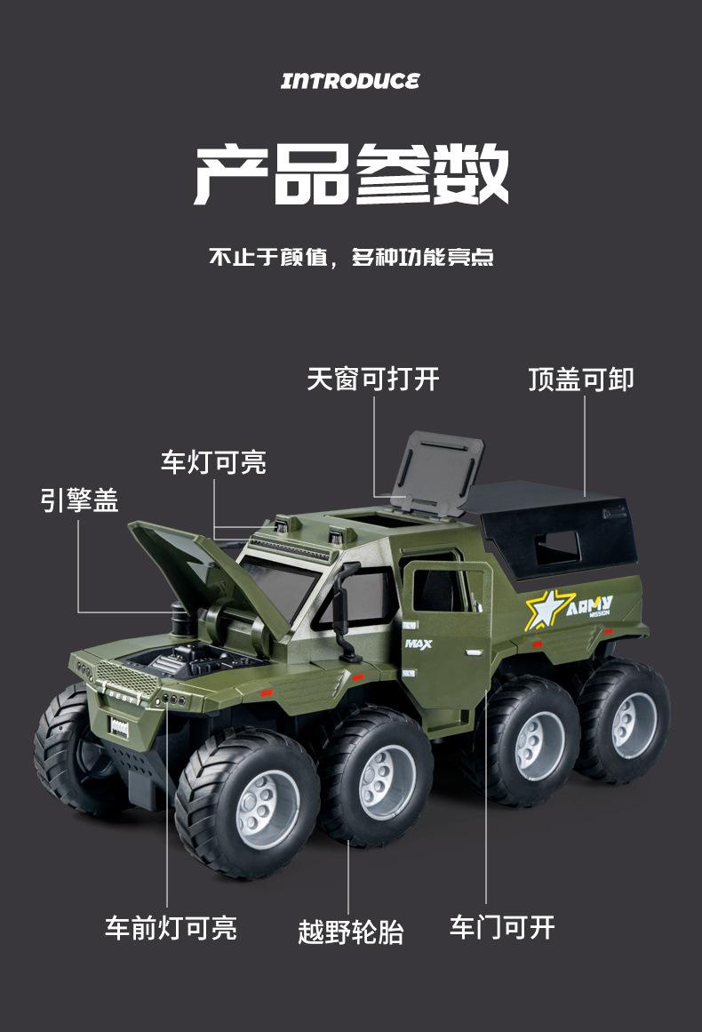 Regalo para niño de 3-6 años coche simulación inercia armadura vehículo todoterreno de ocho ruedas puerta se puede abrir coche de juguete para niños