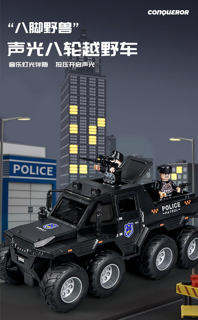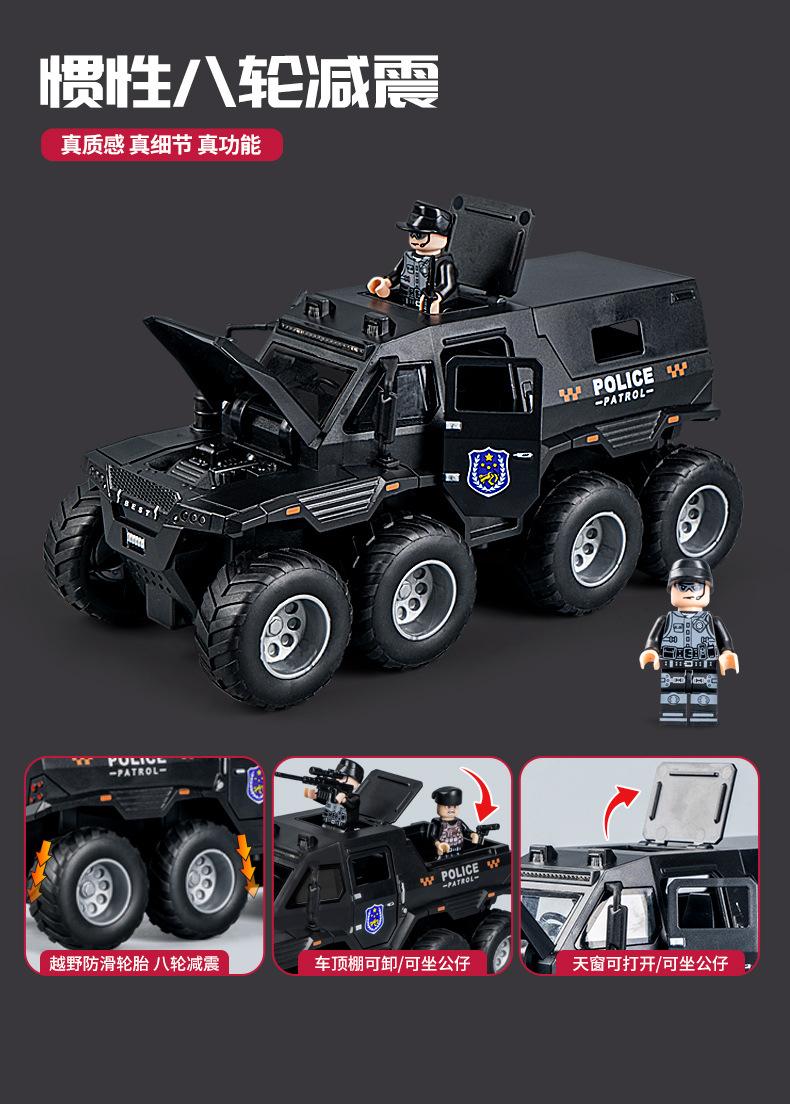 201-44a [white] eight-wheeled public security vehicle can open the door, 201-44b [black] eight-wheeled swat ve...