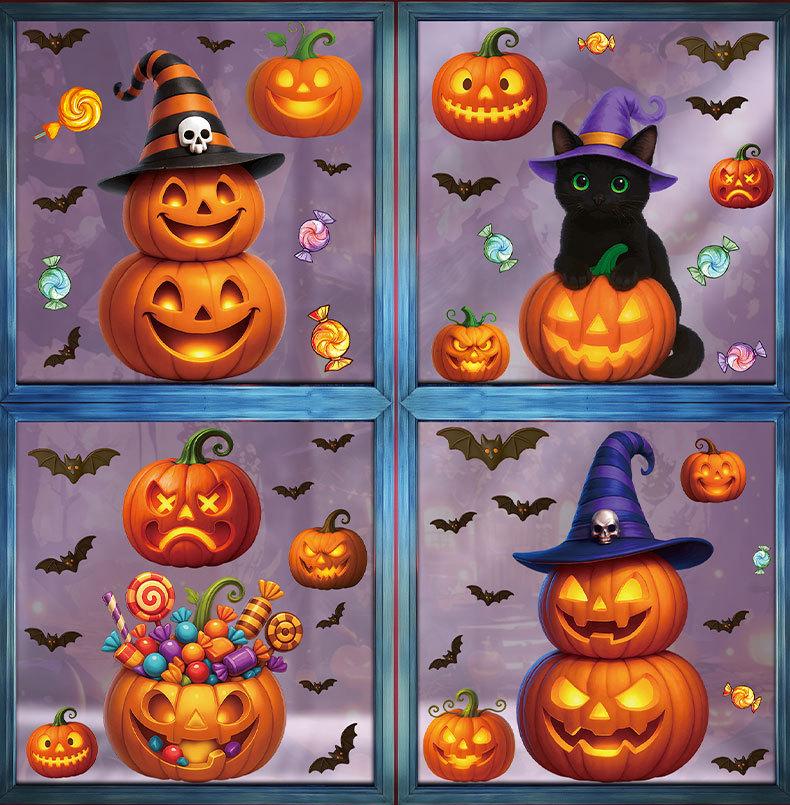 Calcomanías de Calabaza de Halloween Decoración de Arreglo para Fiesta Navideña Calcomanías Electrostáticas de Linterna de Calabaza de Caramelo Gato Negro Fantasma Calcomanías para Ventana