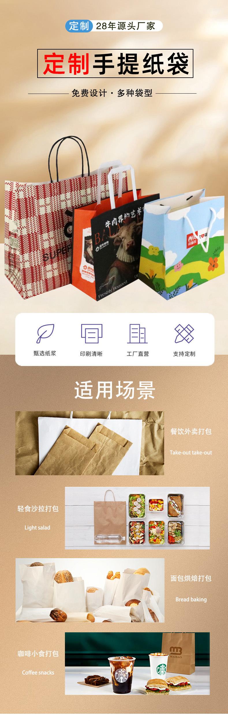 Bolsa de Papel Kraft Marrón Bolsa de Embalaje Bolsa de Mano para Regalo Festivo Bolsa de Embalaje Personalizada para Bebida Horneada Café Navidad Para Llevar