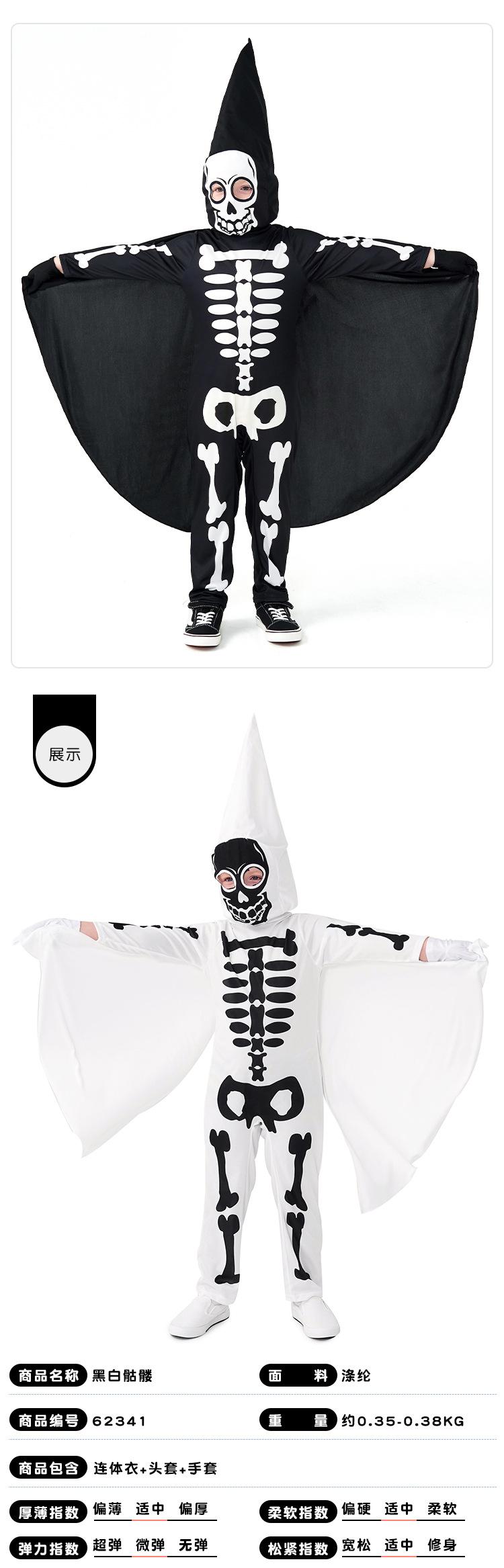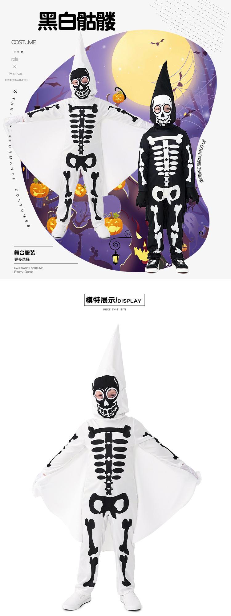 Disfraz de Vestido de Halloween Comercio Exterior Transfronterizo Actuación Infantil Disfraz de cosplay de Calavera Hueso Fantasma Disfraz de Fiesta