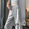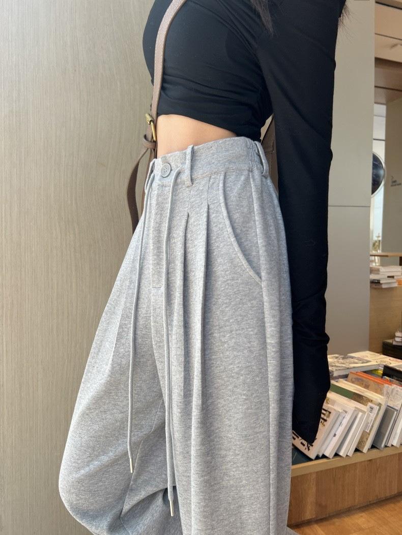 Pantalones Deportivos Grises para Mujer Verano 2025 Nuevo Cintura Alta Pierna Estrecha Ancha Rectos Casuales Sueltos con Cordón