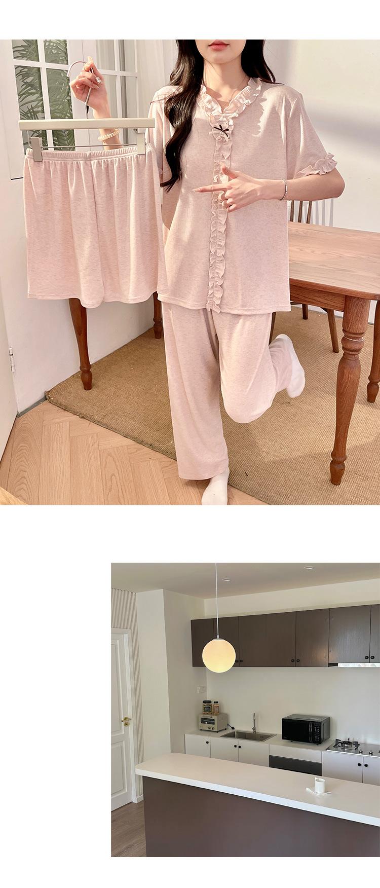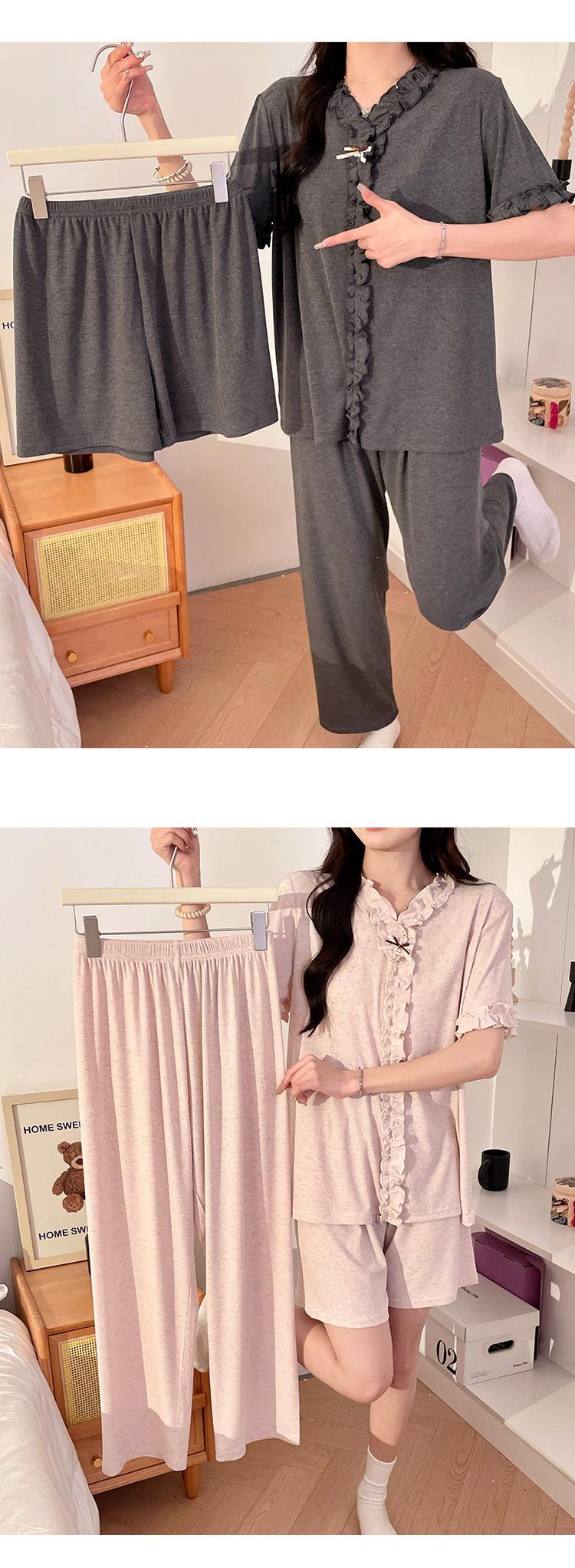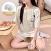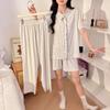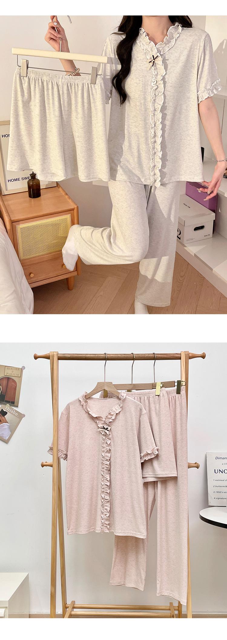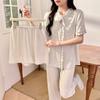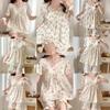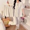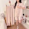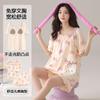 Pijamas de Verano para Mujer 2025 Nuevo Pantalón de Manga Corta con Almohadillas en el Busto, Dulce Traje de Tres Piezas, Shorts Sencillos, Ropa para el Hogar