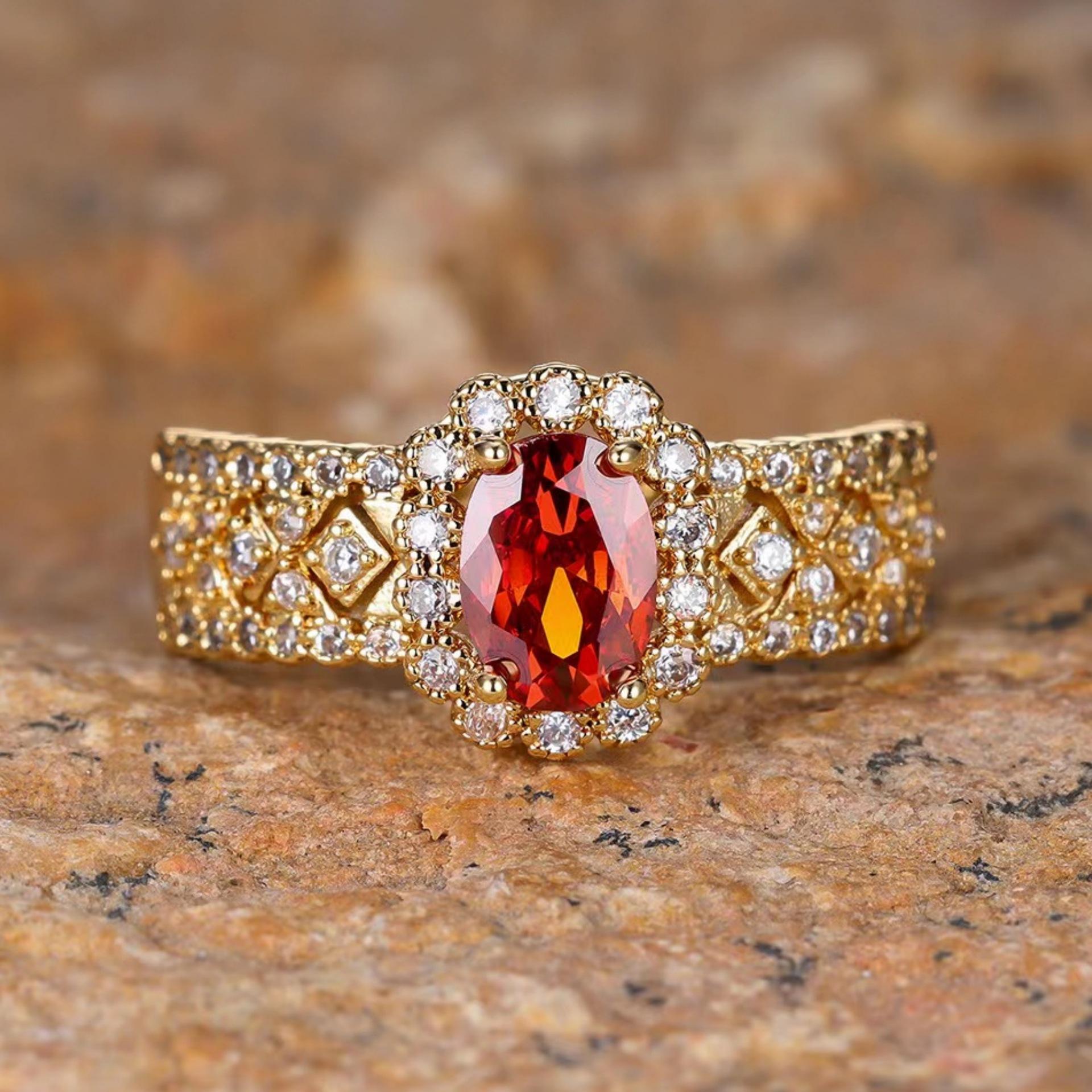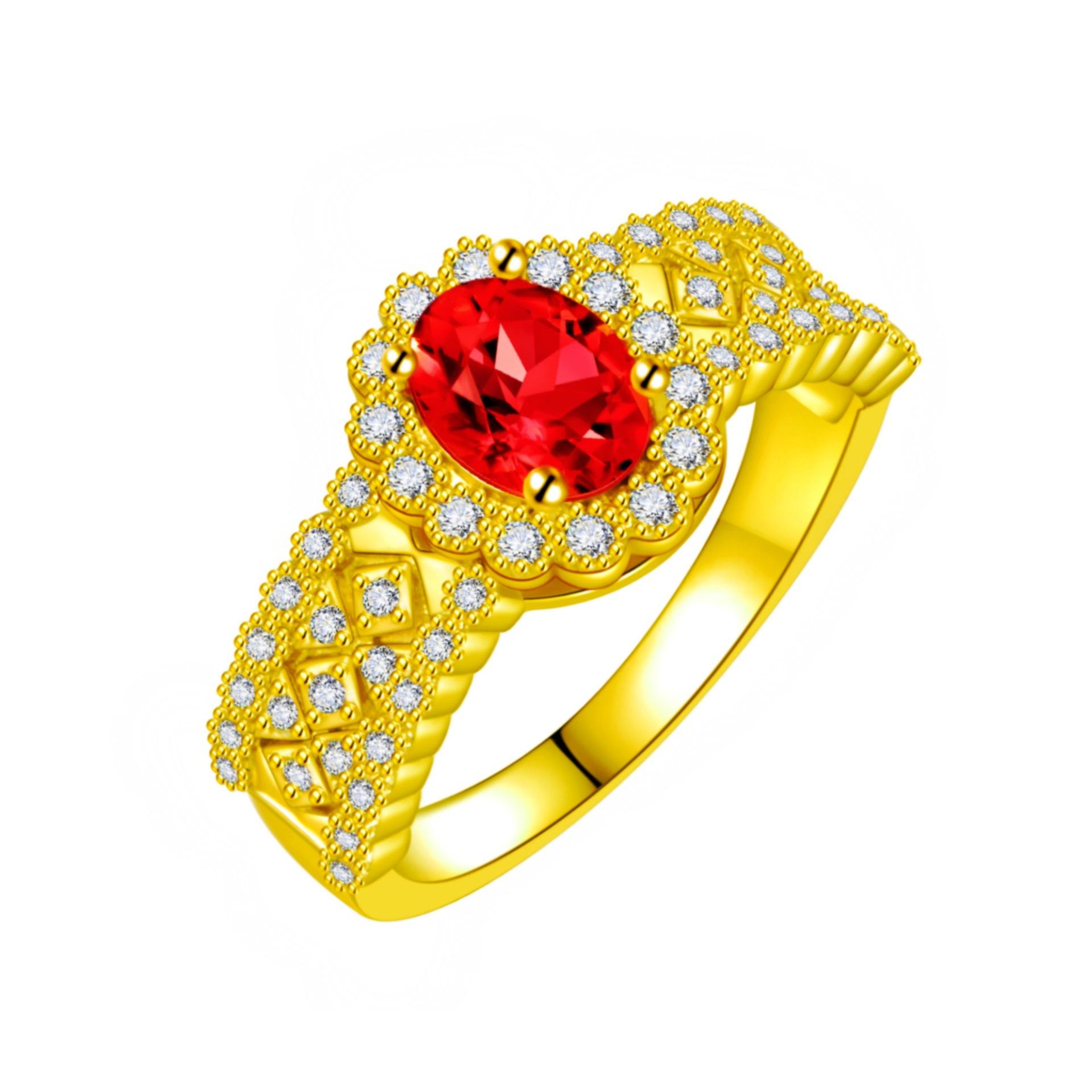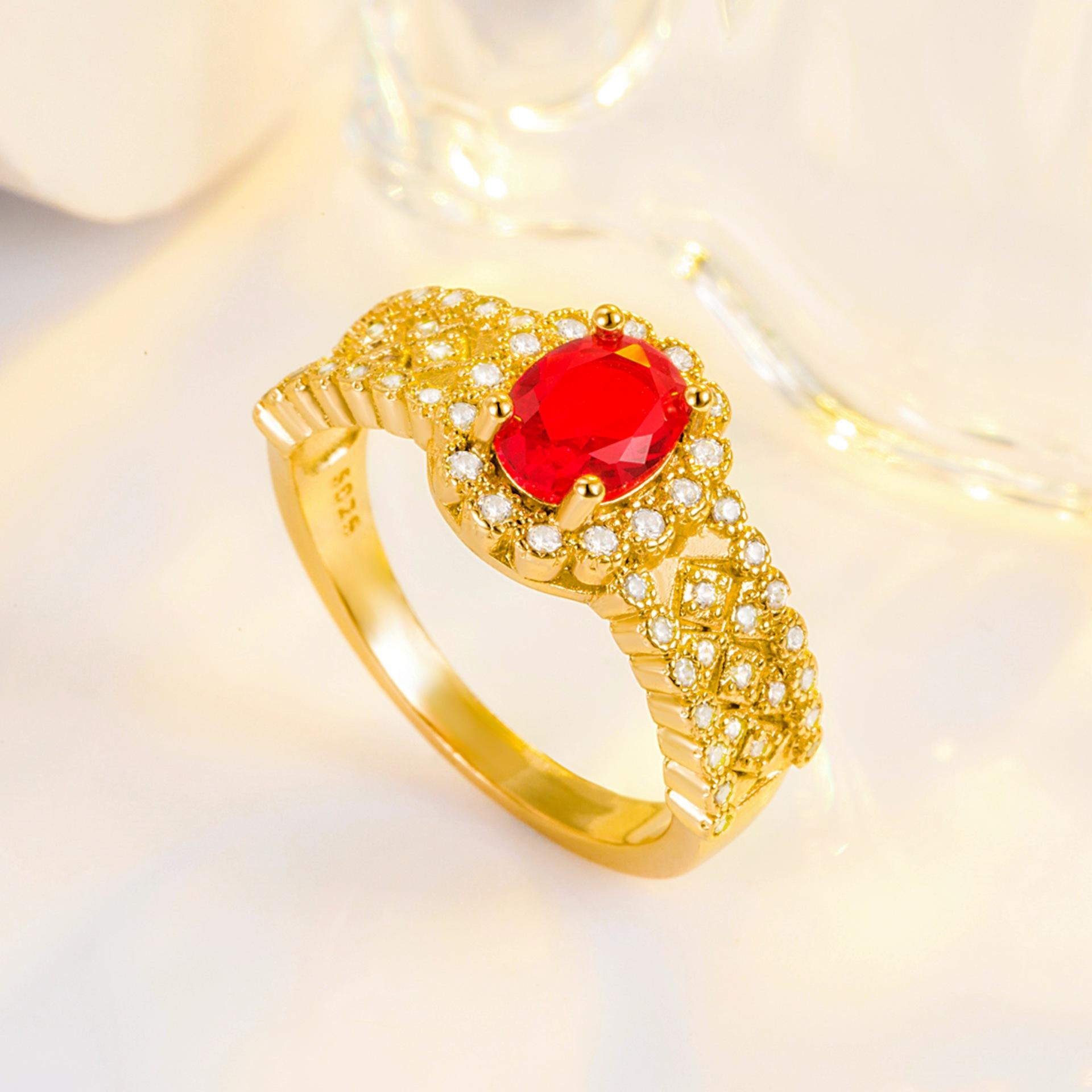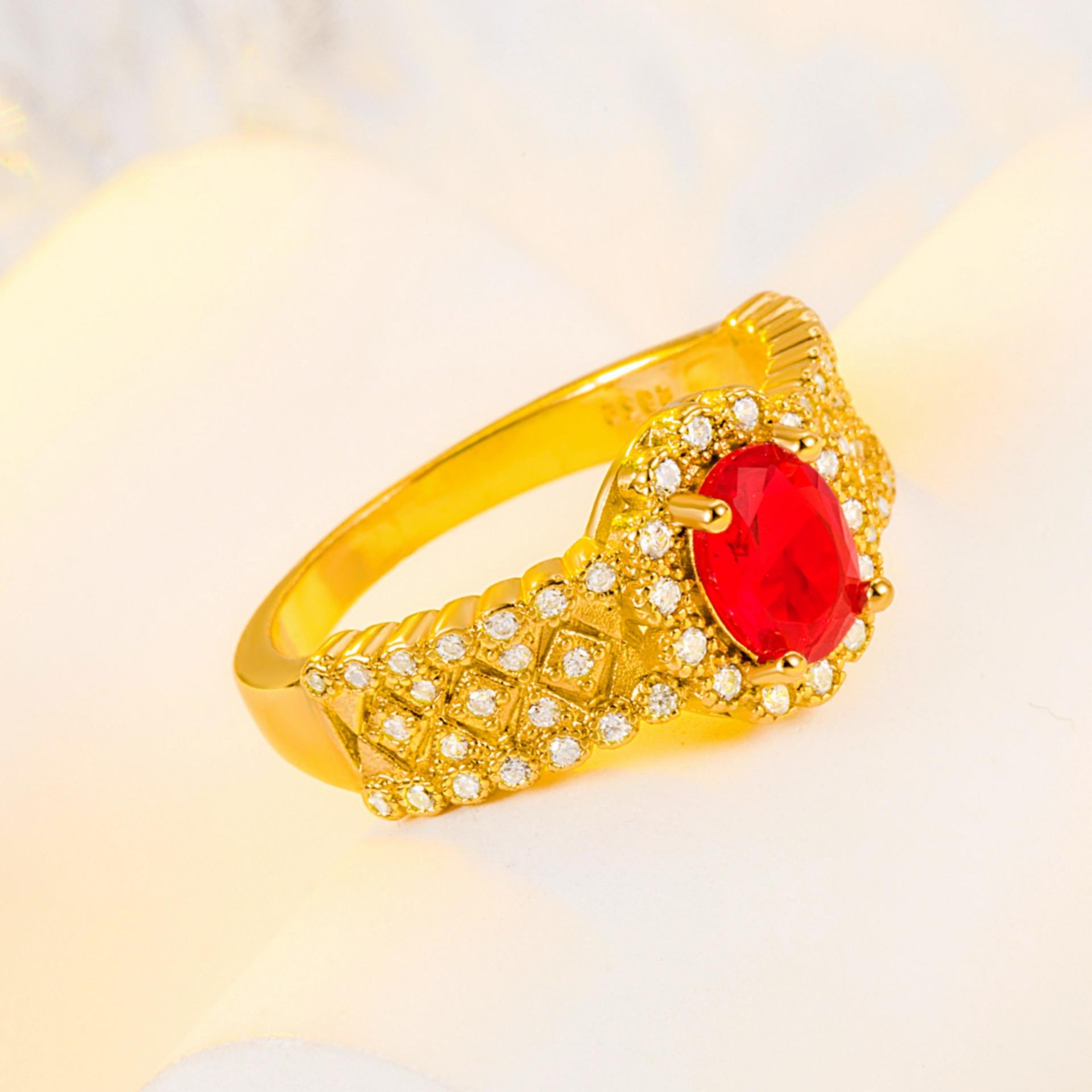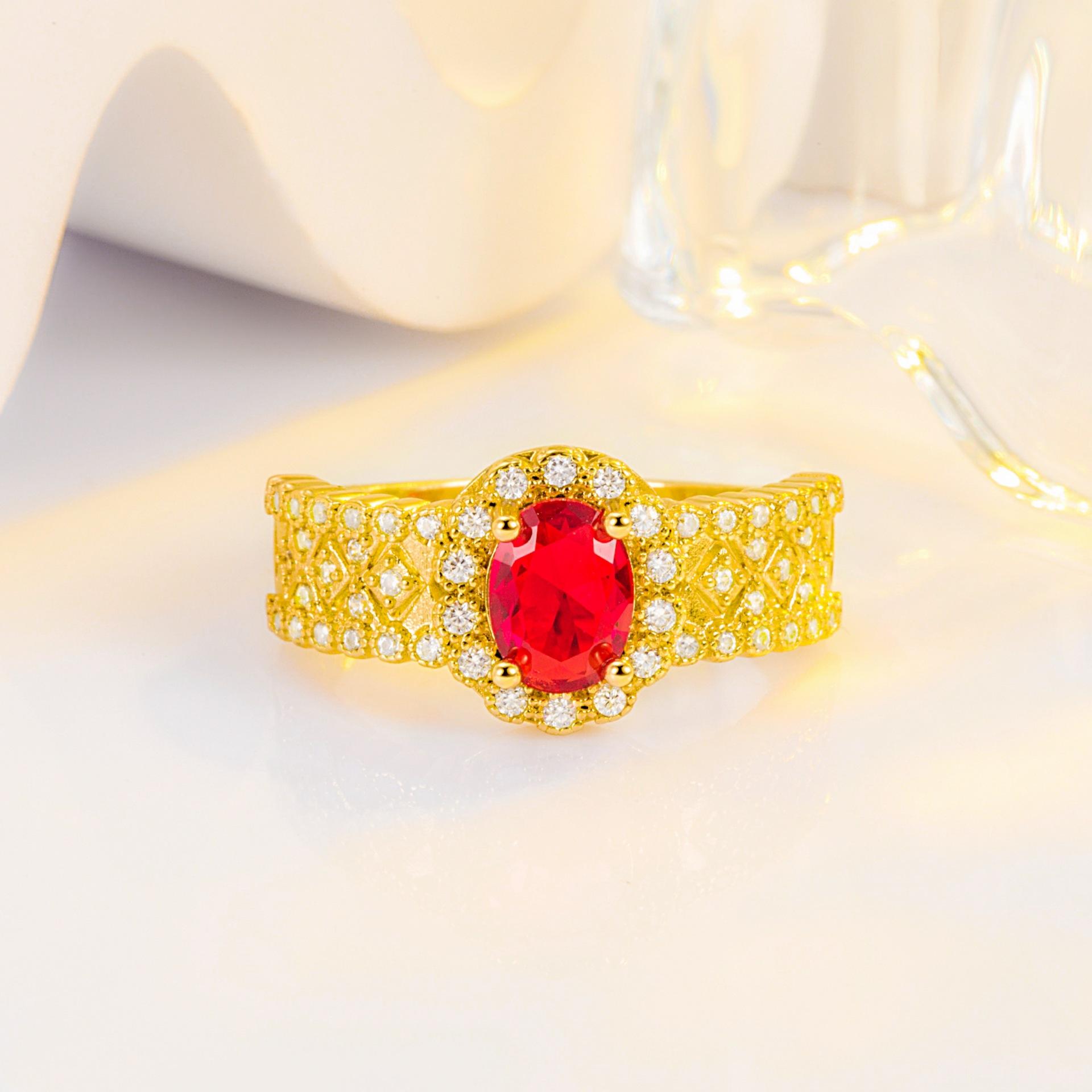 AliExpress temu venta caliente anillo de diamantes rojos coloridos de lujo anillo de rubí con patrón tallado de lujo estilo italiano