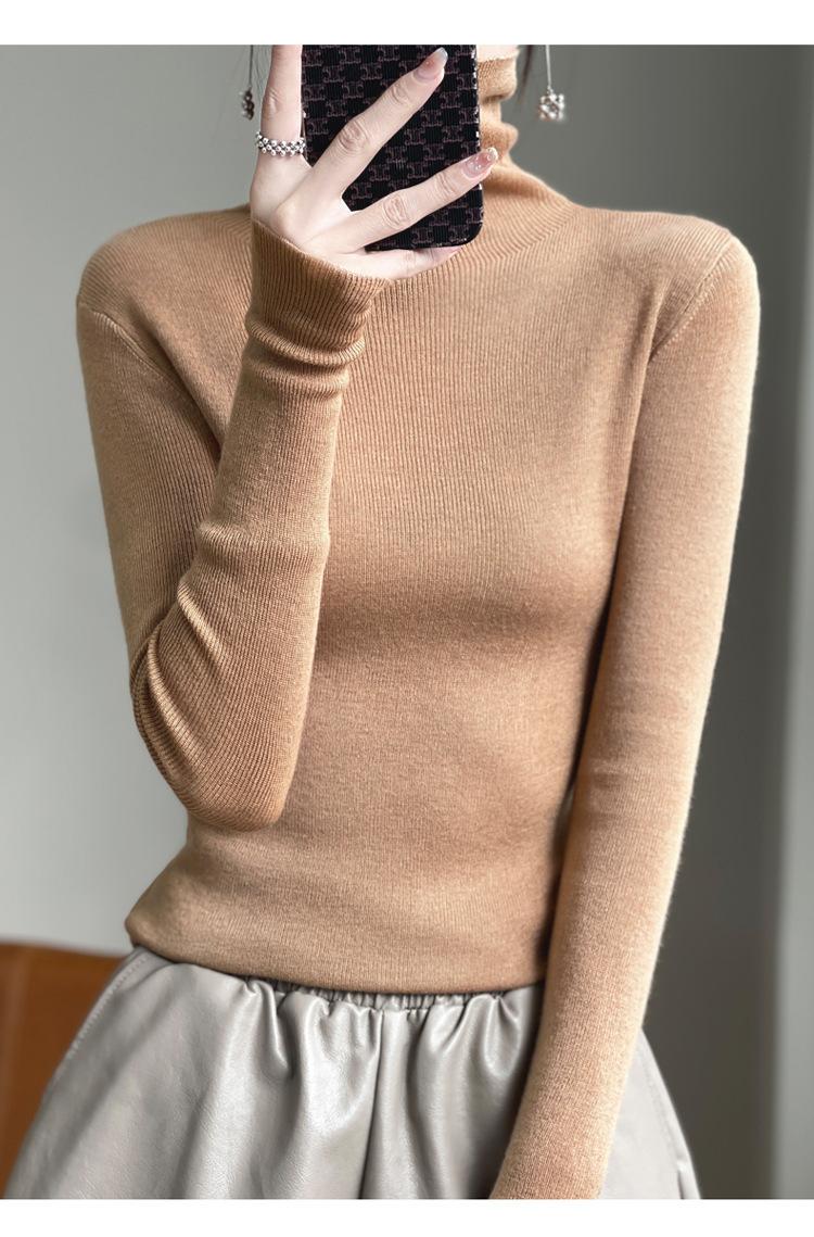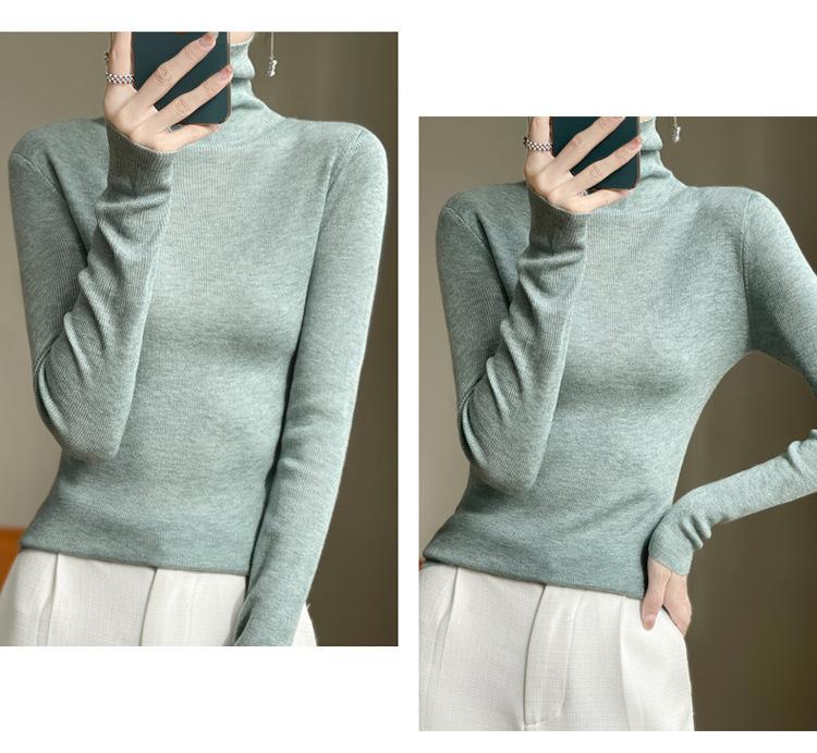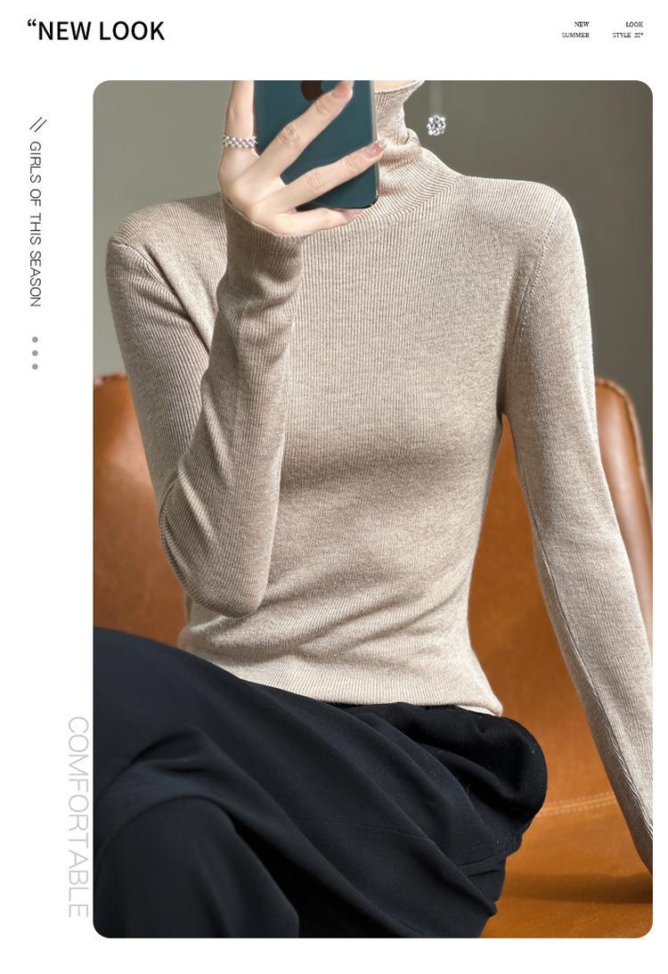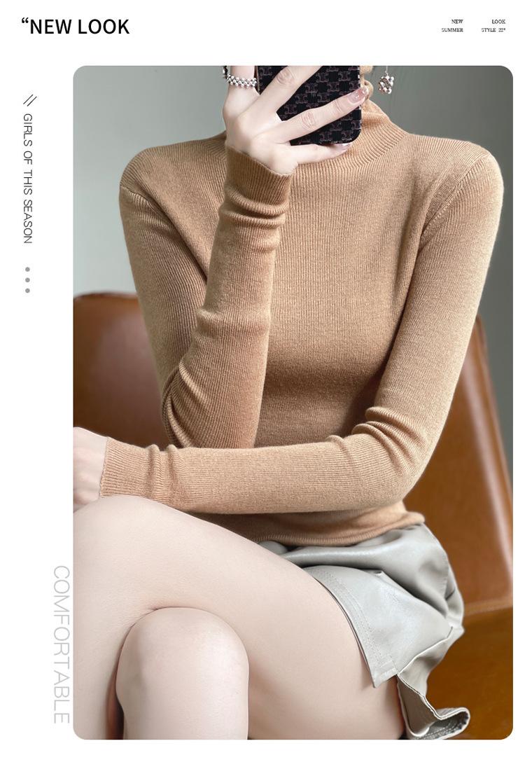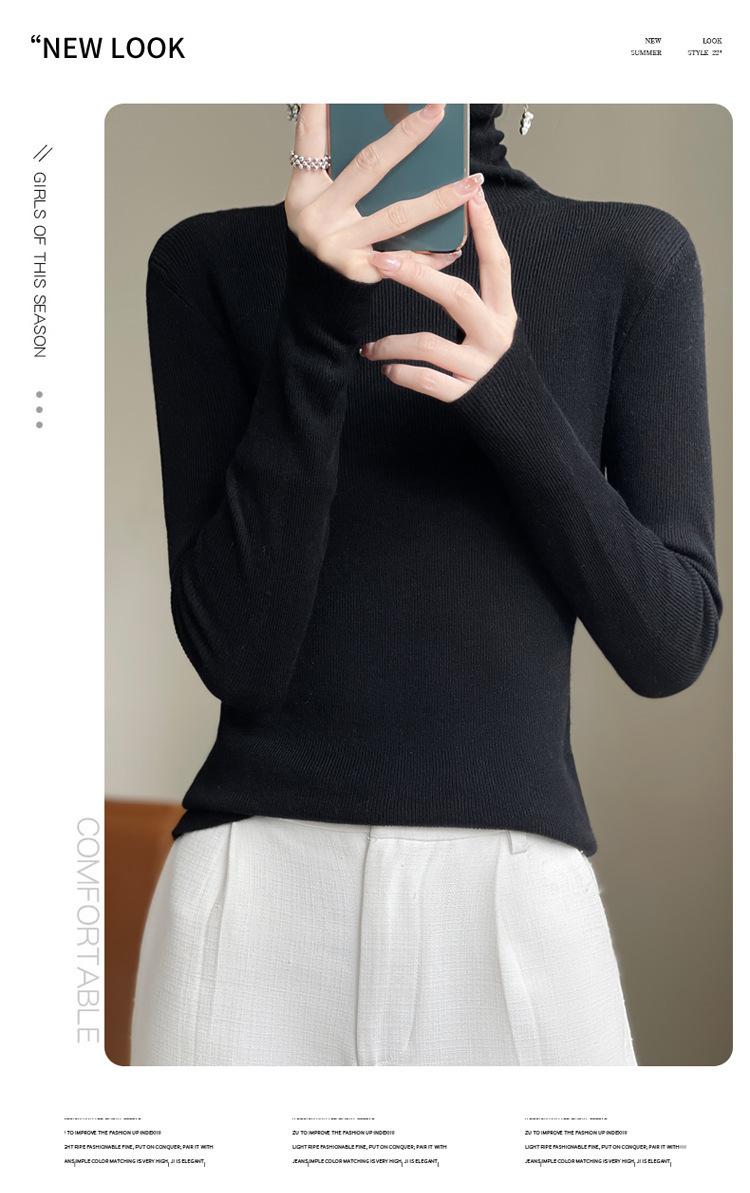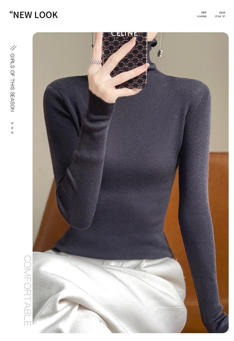 Transfronterizo 2025 Otoño/Invierno Estilo Coreano Cuello Alto Manga Larga Top de Punto para Mujer Ropa Interior para Mujer Jersey Ajustado Top Básico