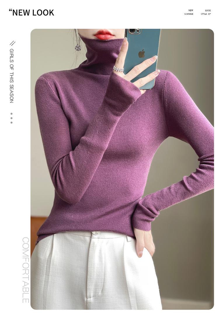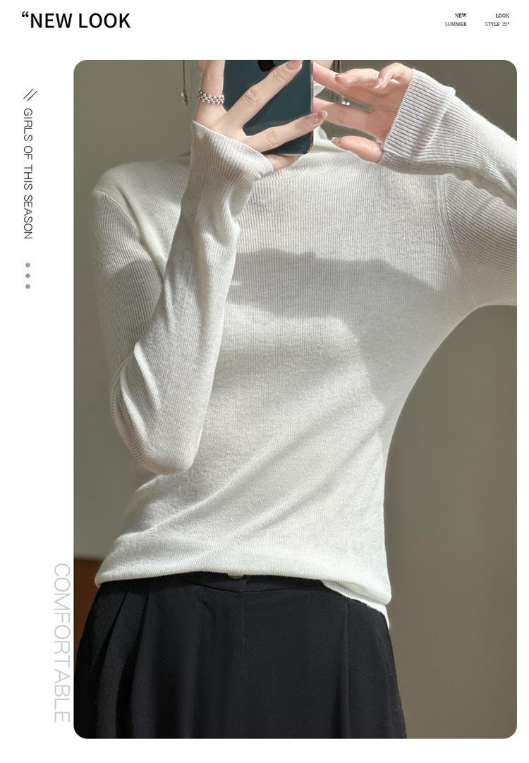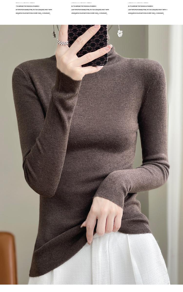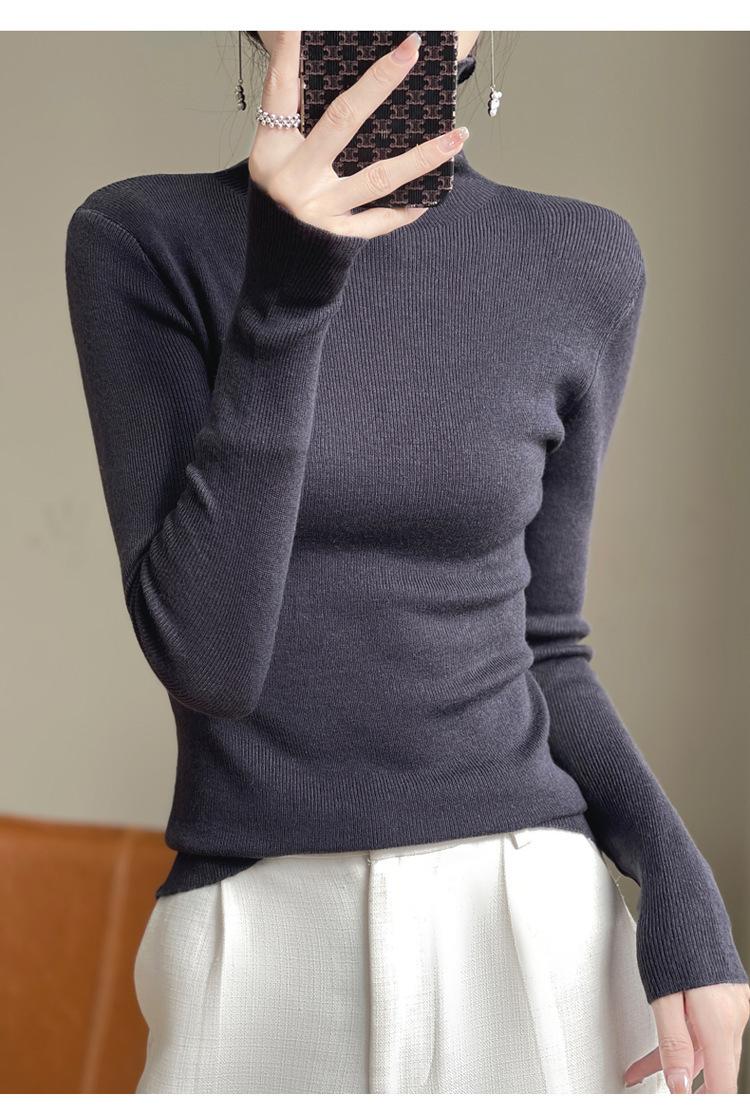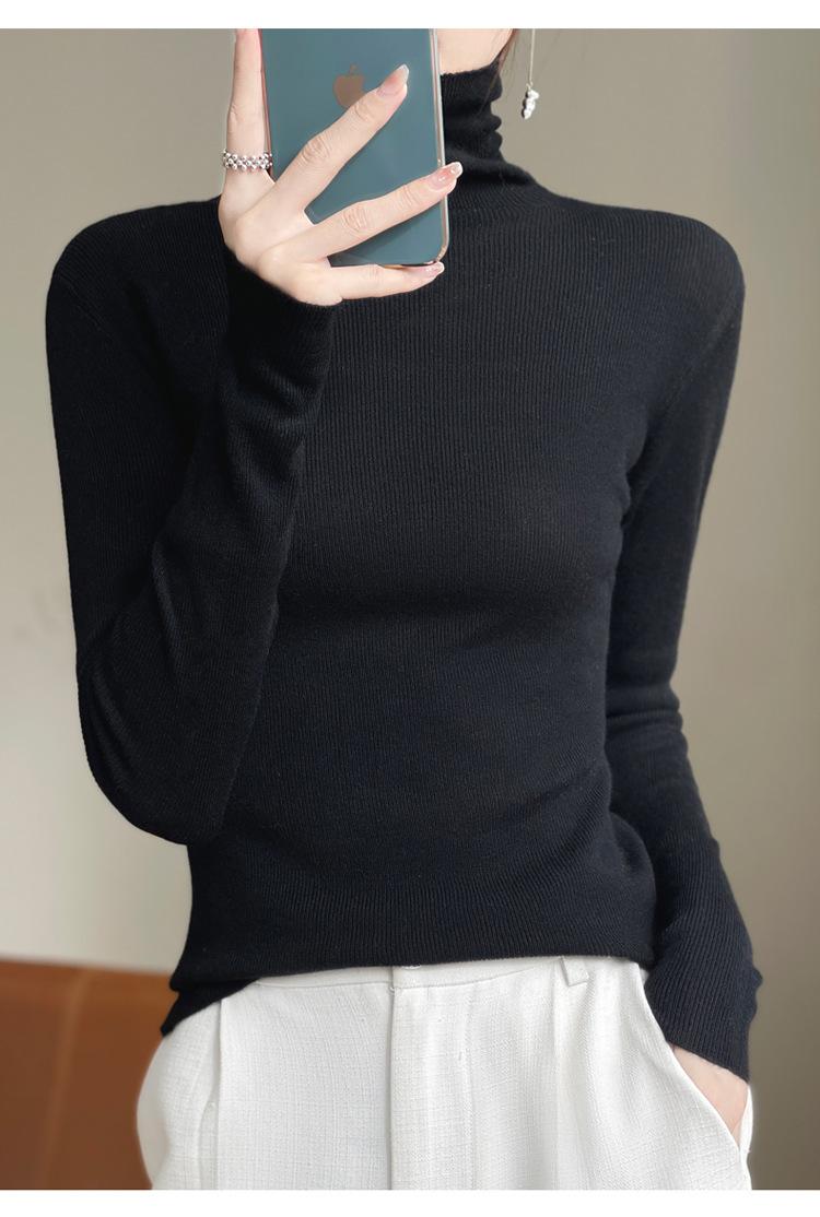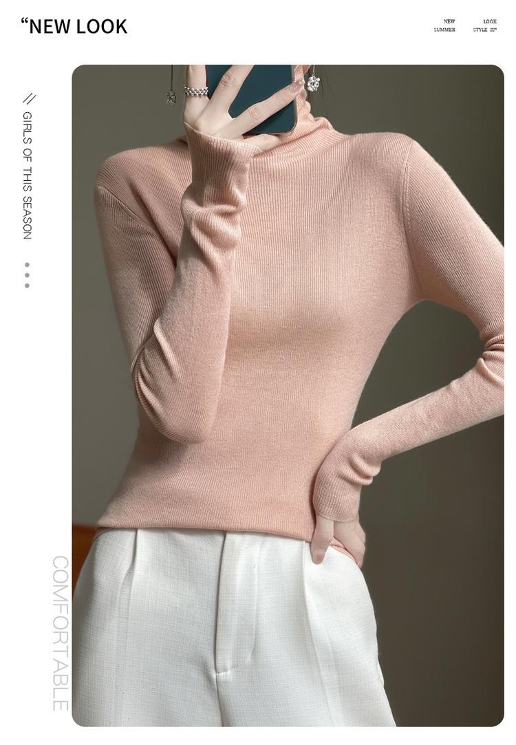 Transfronterizo 2025 Otoño/Invierno Estilo Coreano Cuello Alto Manga Larga Top de Punto para Mujer Ropa Interior para Mujer Jersey Ajustado Top Básico