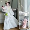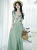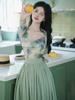 Ropa nueva de otoño 2023 para mujer, blusa suave de malla estampada de estilo francés + traje de falda retro de cintura alta con vuelo amplio