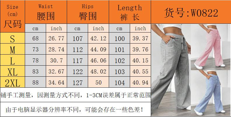 Pantalones a Rayas Europeos y Americanos de Comercio Exterior Transfronterizo 2024 Nuevos Casuales Versátiles Moda Urbana Pierna Ancha Sueltos Mujer