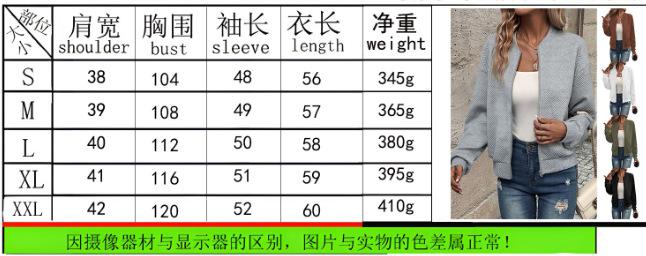 Amazon Comercio exterior transfronterizo europeo y americano otoño e invierno nuevo color sólido chaqueta con cremallera béisbol cuello alto manga hombro caído chaqueta casual