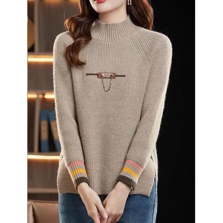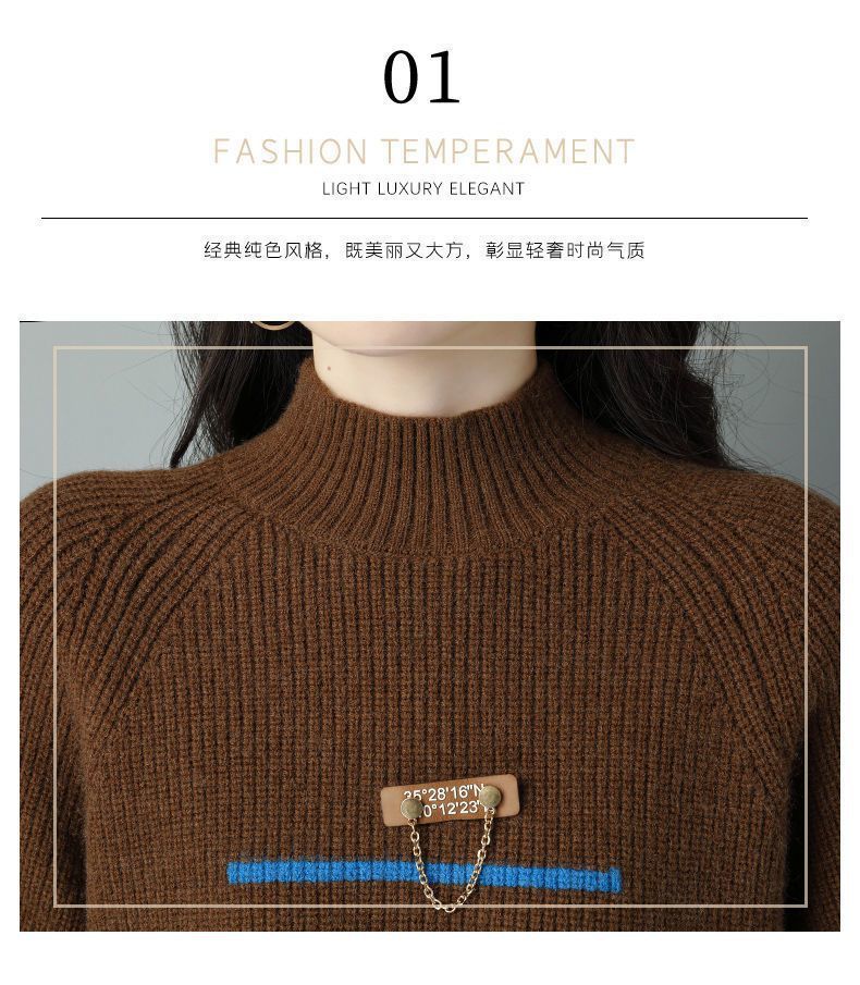 Suéter Nuevo de Cuello Alto Medio para Mujer Jersey de Punto Suéter Coreano Holgado de Color Sólido Camiseta Básica Otoño e Invierno Engrosado Estilo Occidental para Mujer Moderno