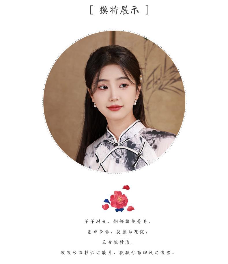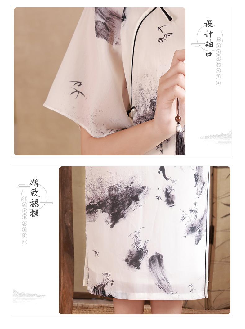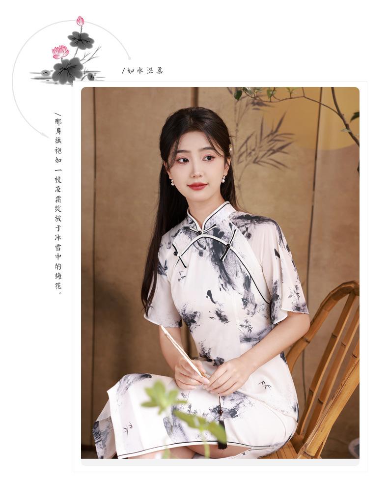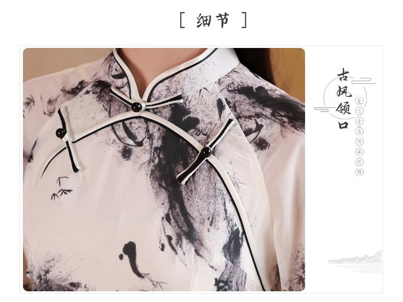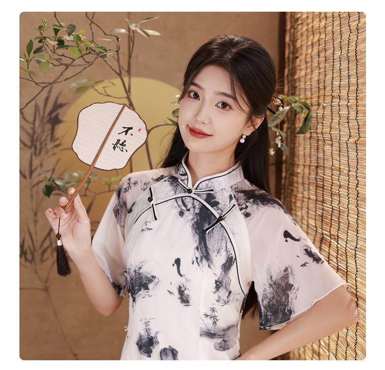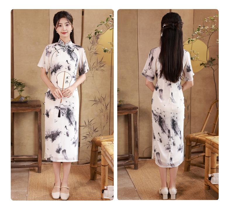 Cheongsam de Pintura a Tinta 2024 Nuevo Mejorado Estilo Retro Chino Vestido de Estampado Blanco y Negro Verano Joven Sencillo Elegante Mujeres