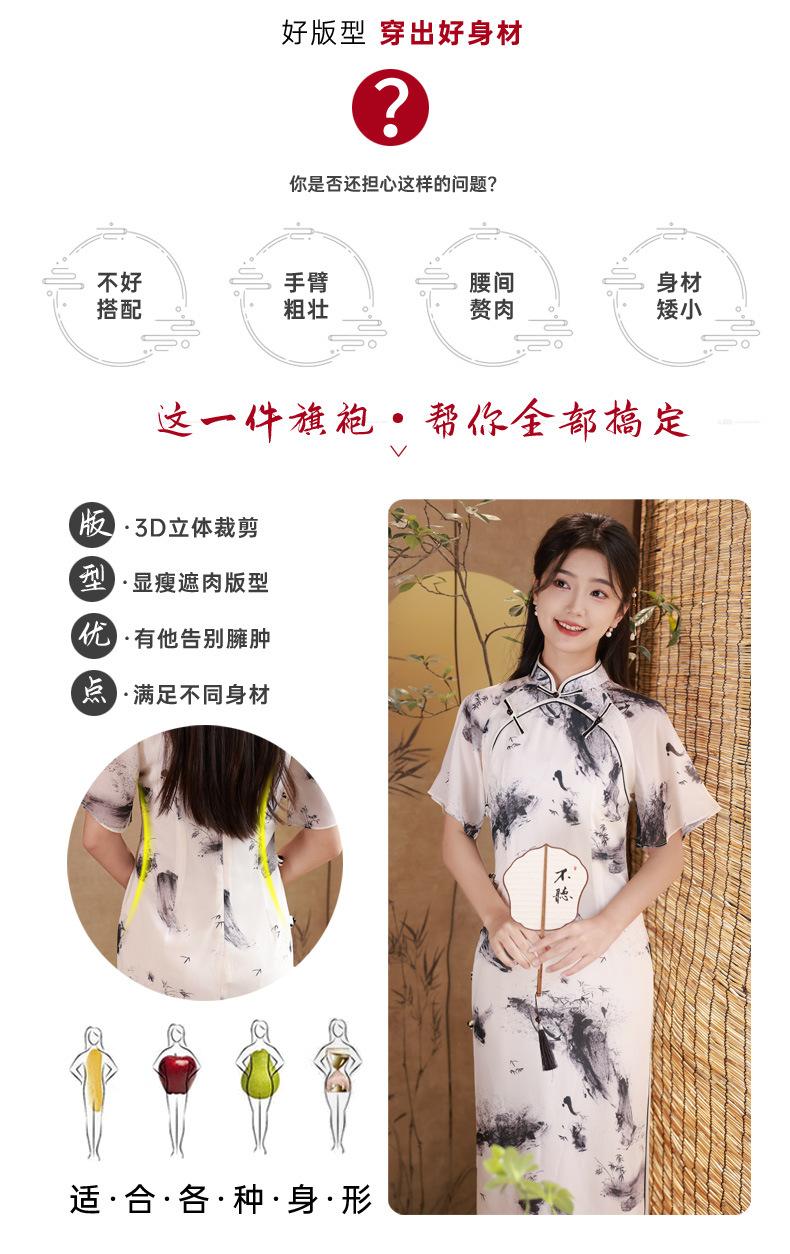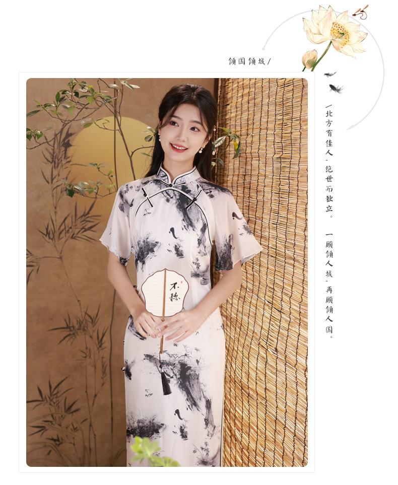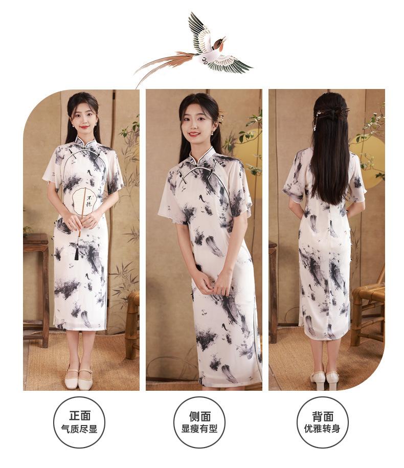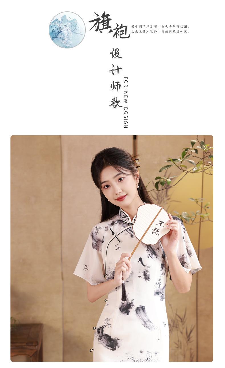 Cheongsam de Pintura a Tinta 2024 Nuevo Mejorado Estilo Retro Chino Vestido de Estampado Blanco y Negro Verano Joven Sencillo Elegante Mujeres