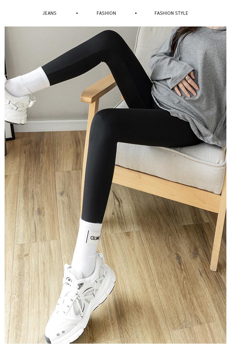 Pantalones de Tiburón para Mujeres Embarazadas Otoño e Invierno con Forro Polar Gruesos Leggings de Cintura Baja a la Moda Adelgazantes Combinan con Todo Pantalones de Yoga
