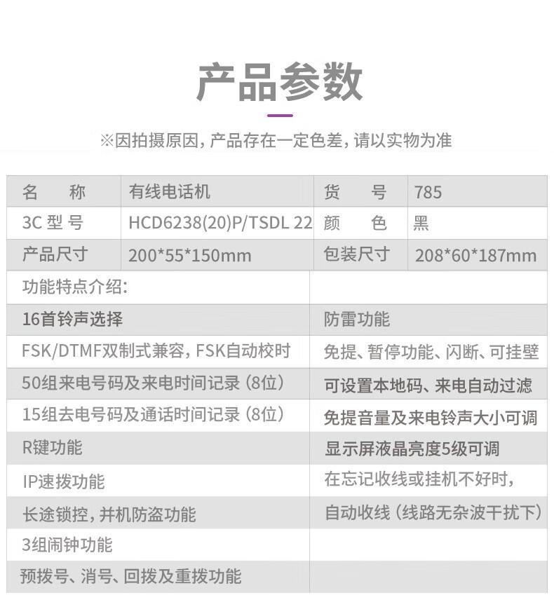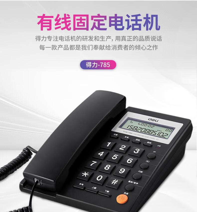 Deli 785 Teléfono Negro Oficina Escritorio Fijo Fijo Identificador de Llamadas Teléfono Fijo Alámbrico Dropshipping