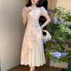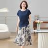 Conjunto de dos piezas para mujer de verano con top estampado de cuello cuadrado estilo vacacional y falda midi de cintura elástica