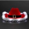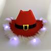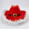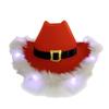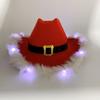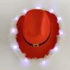 Sombrero vaquero occidental rojo navideño con luz LED variable de colores sombrero con ribete de plumas para fiesta de carnaval