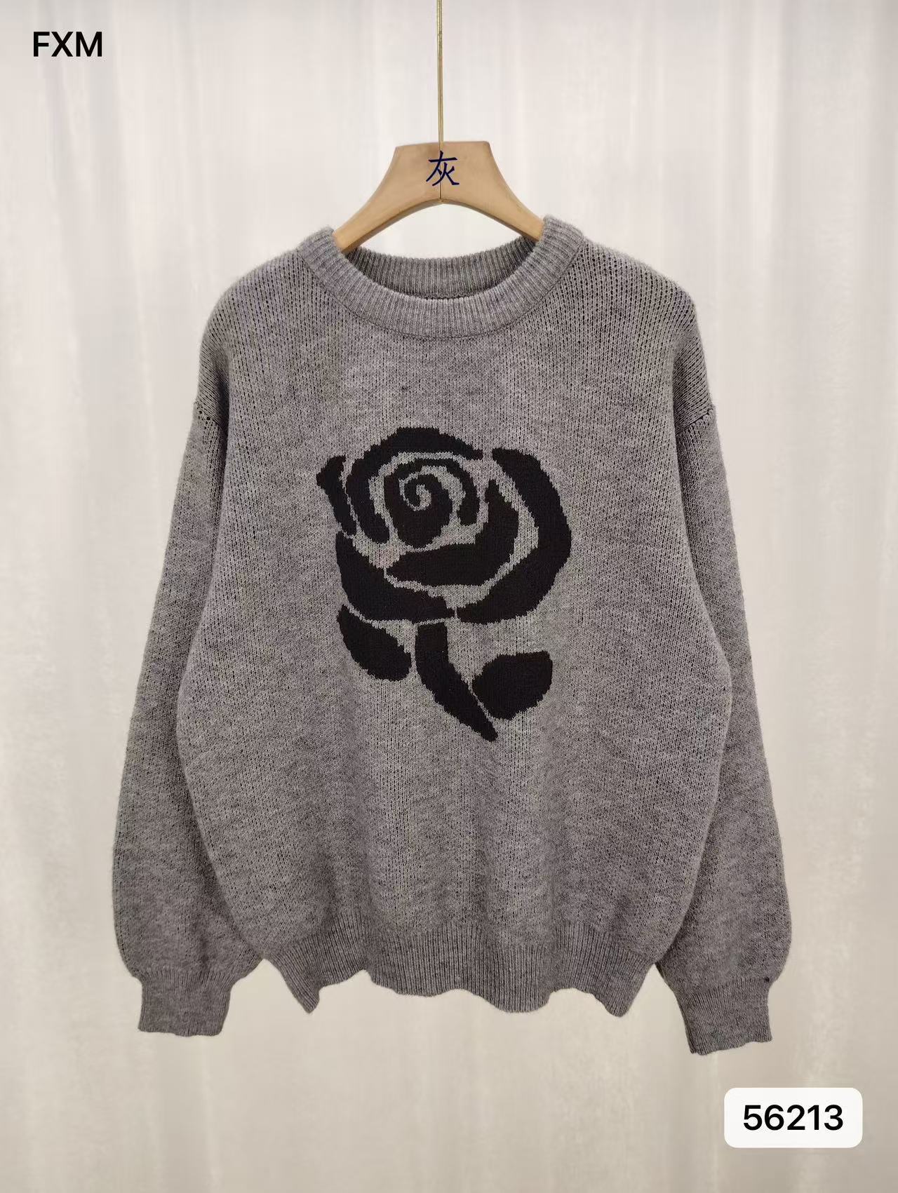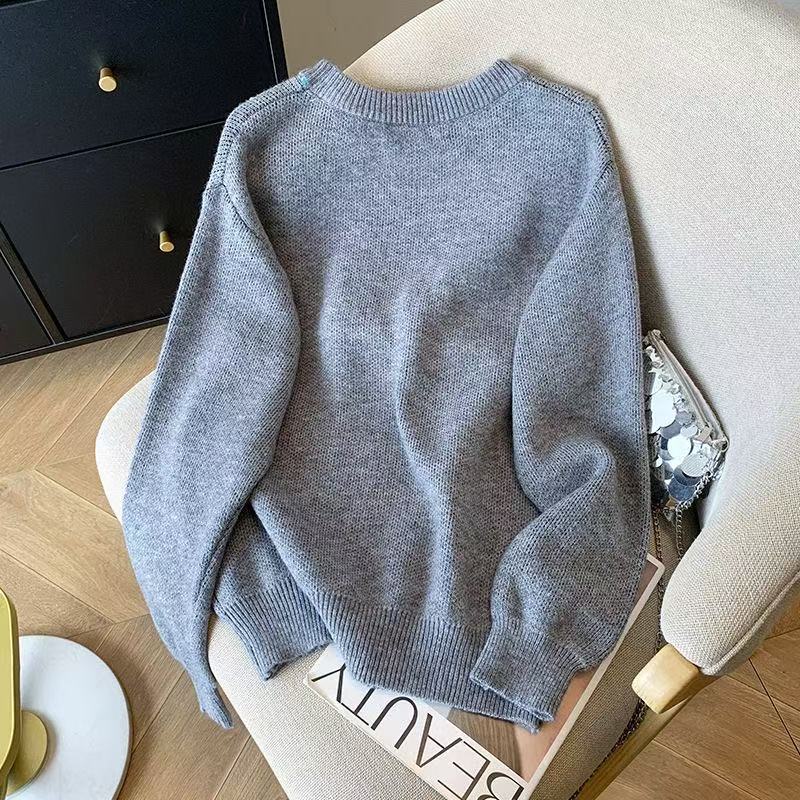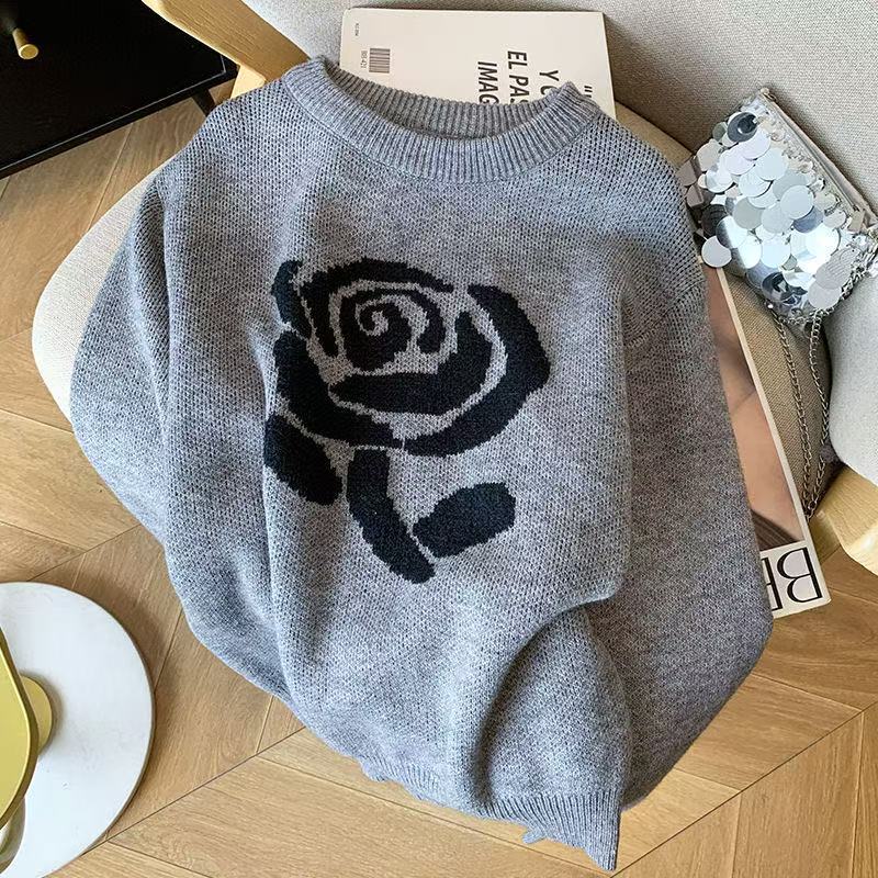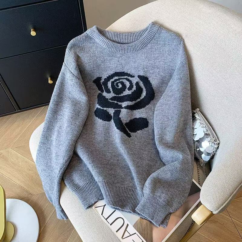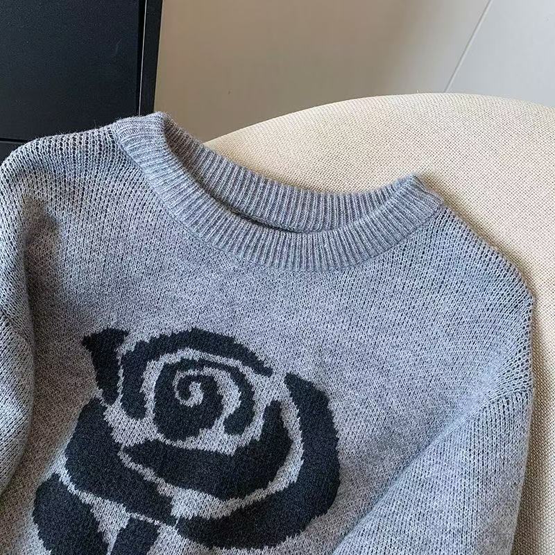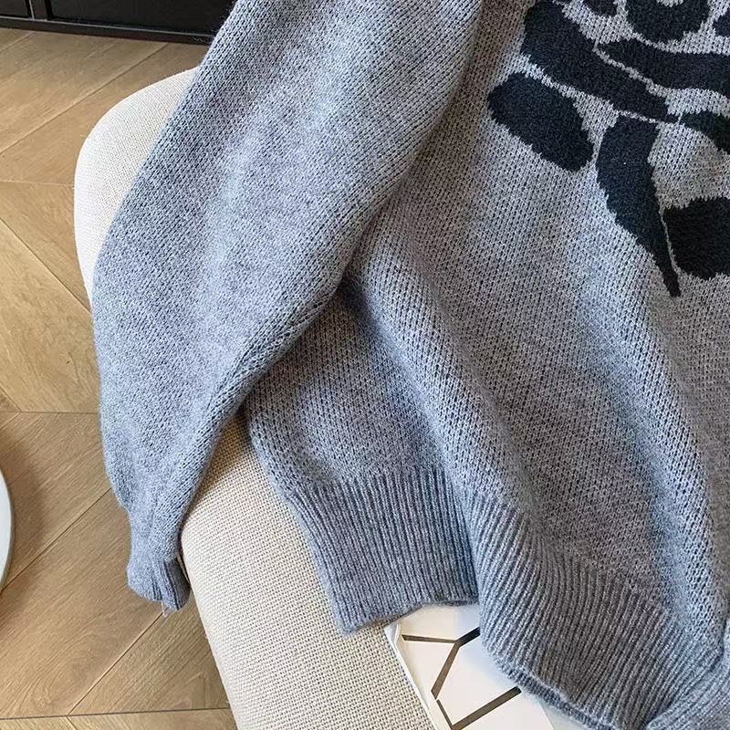 Suéter de Punto de Manga Larga Jacquard de Rosa Dulce y Perezosa para Mujer Otoño e Invierno Nuevo Suelto Cálido Top de Ropa Interior Tendencia para Mujer