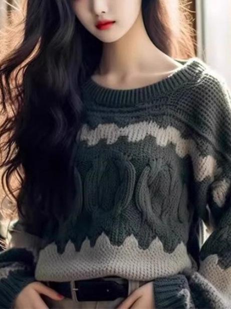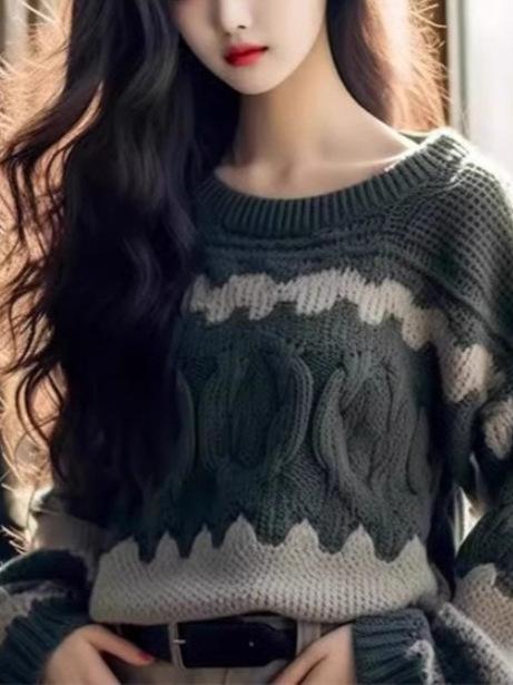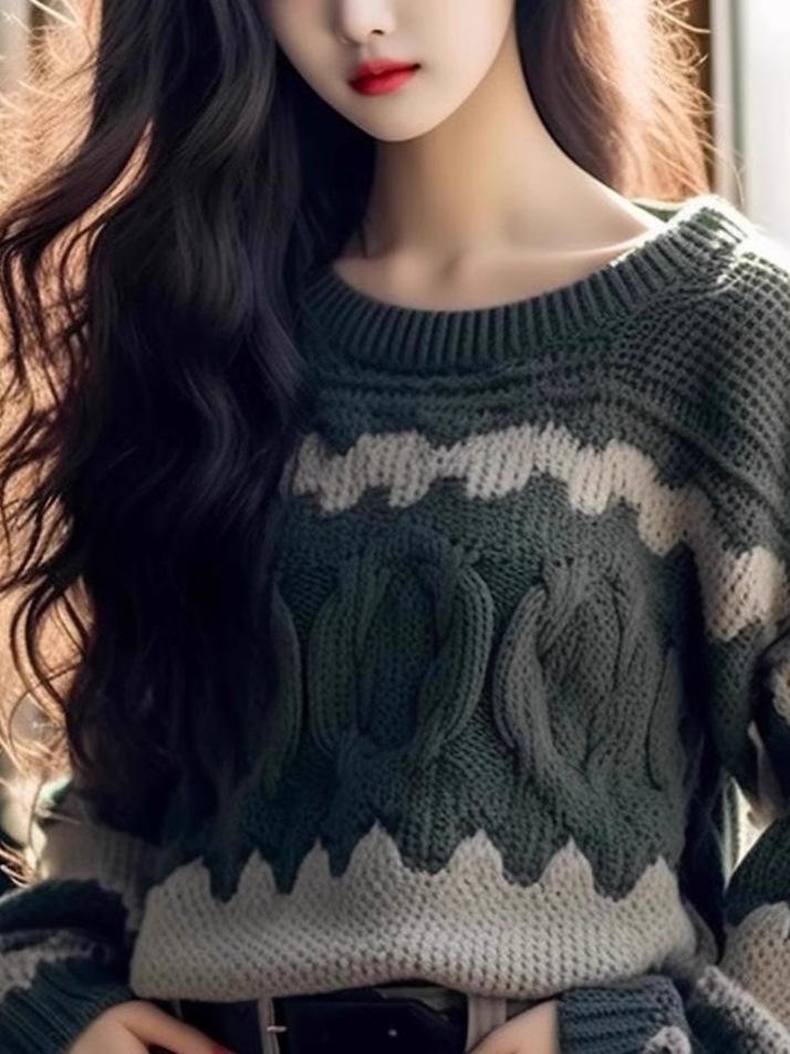 Camiseta básica de punto de alta gama para mujer otoño e invierno 2025 nuevo estilo moda estilo extranjero suéter de punto a rayas estilo holgado y perezoso