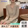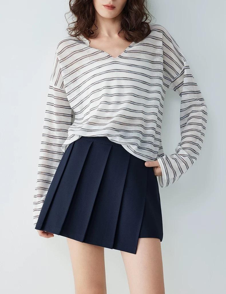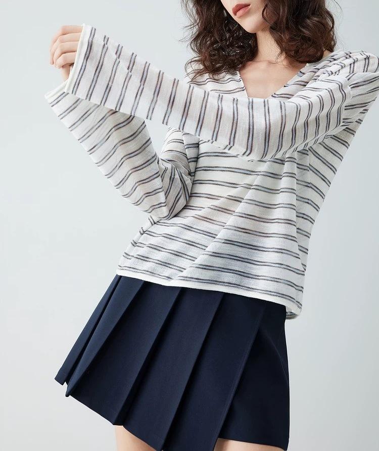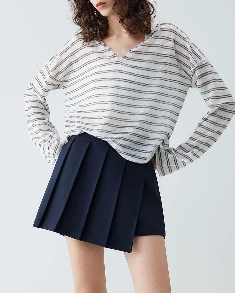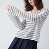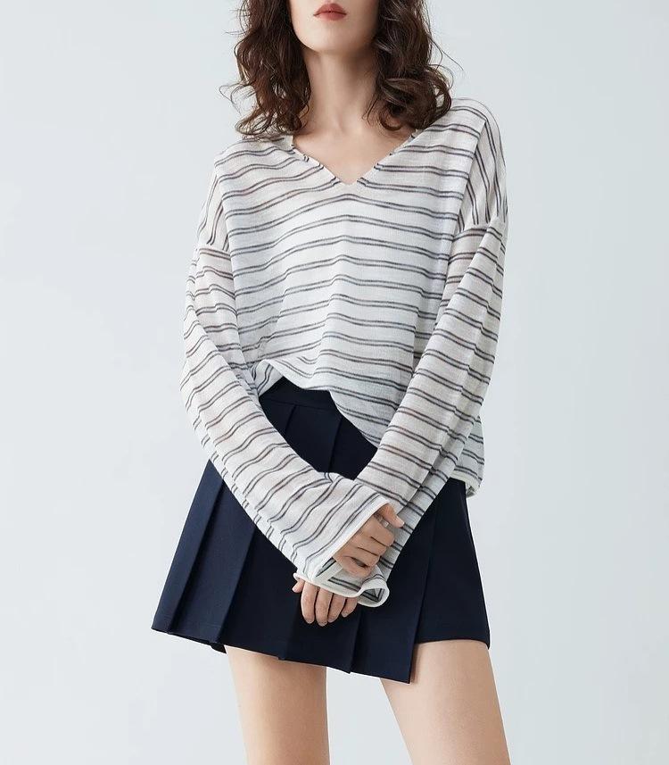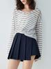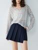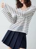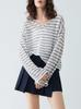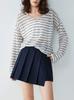 Suéter Casual de Punto con Cuello en V de Rayas Francesas para Mujer Otoño 2025 Nuevo Estilo Jersey Diseño Ligero Sentido Suelto Top