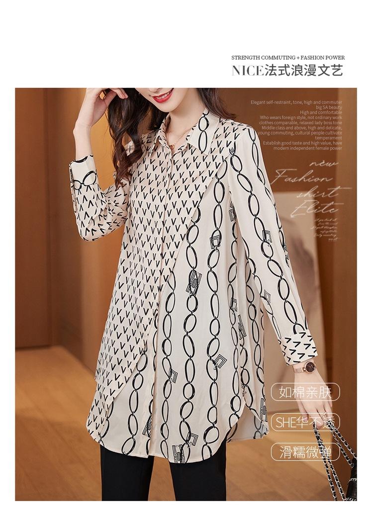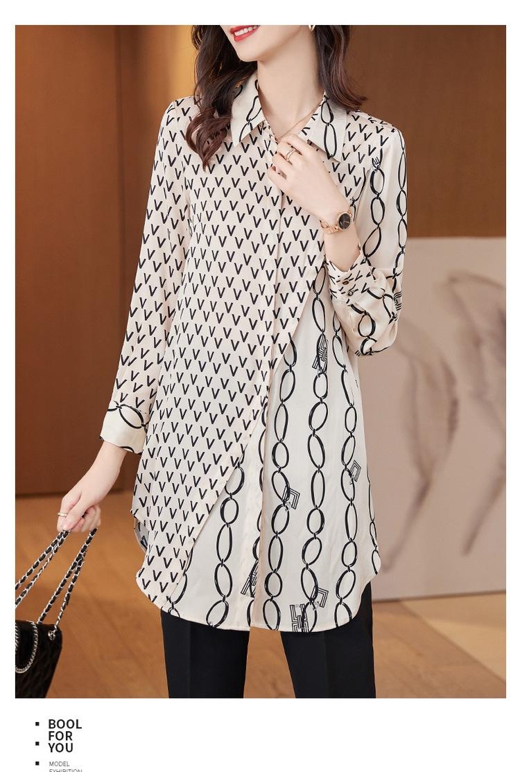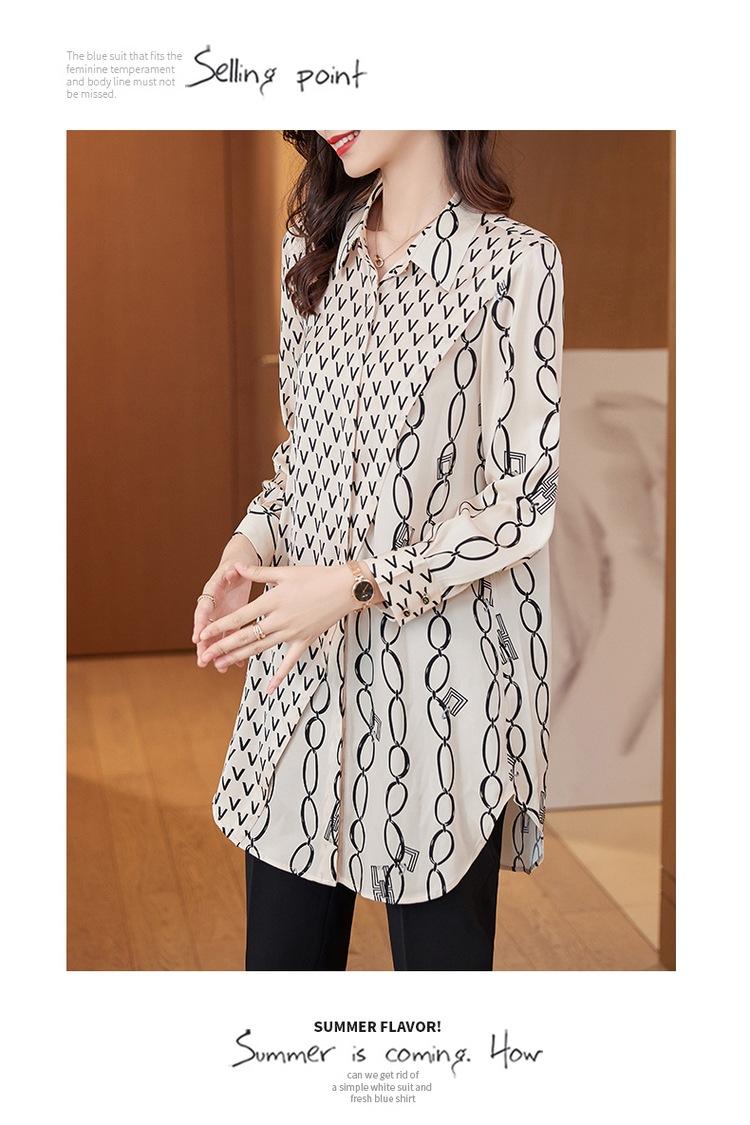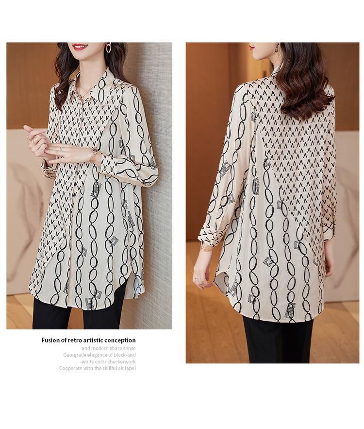 Camisa de Gasa para Mujer Manga Larga Top 2023 Nueva Moda Primavera Sentido Occidental Largo Medio Camisa Floral