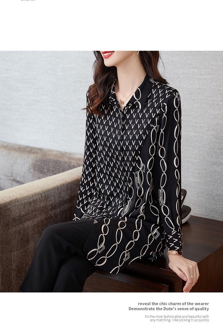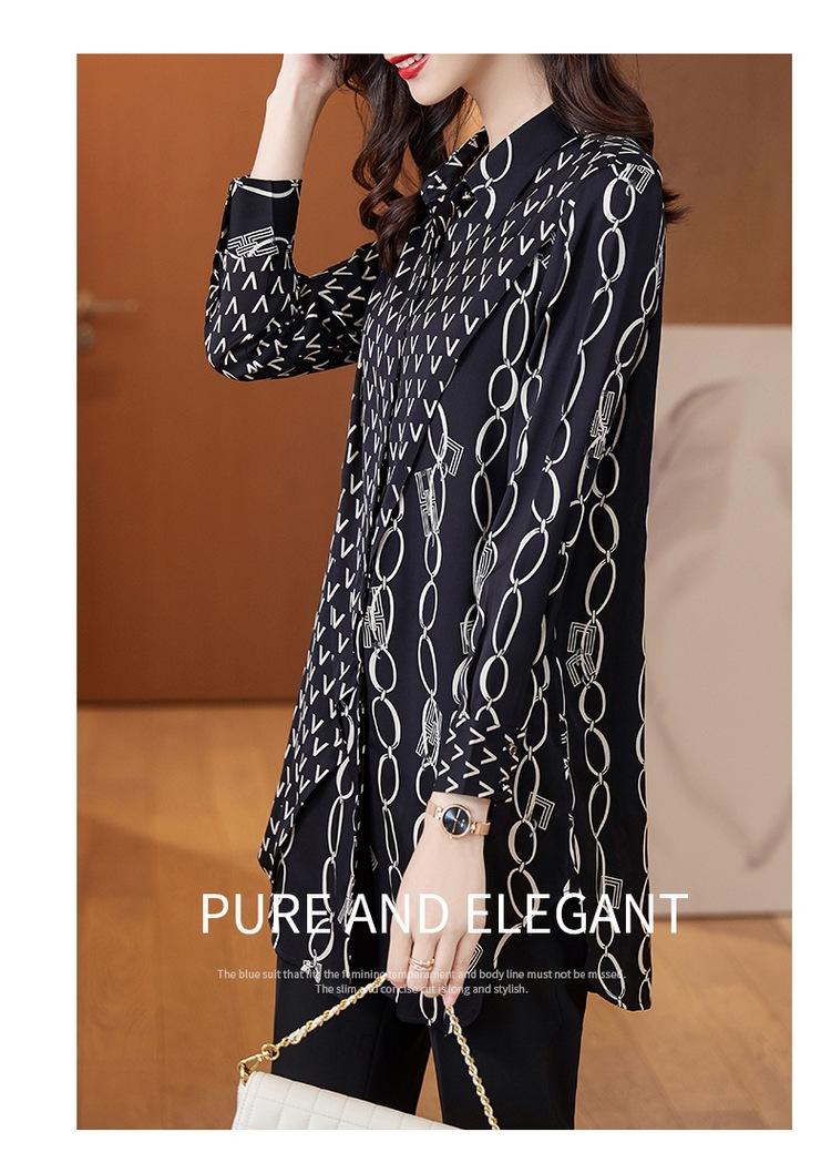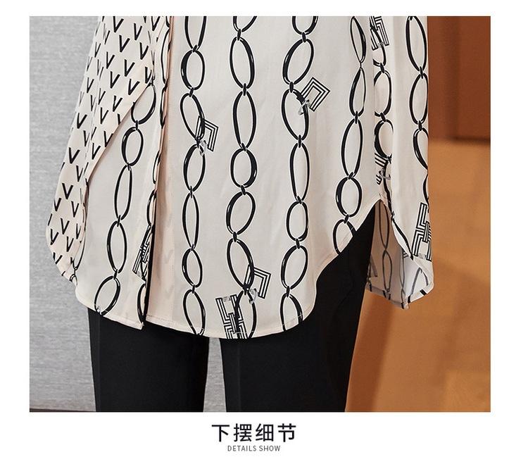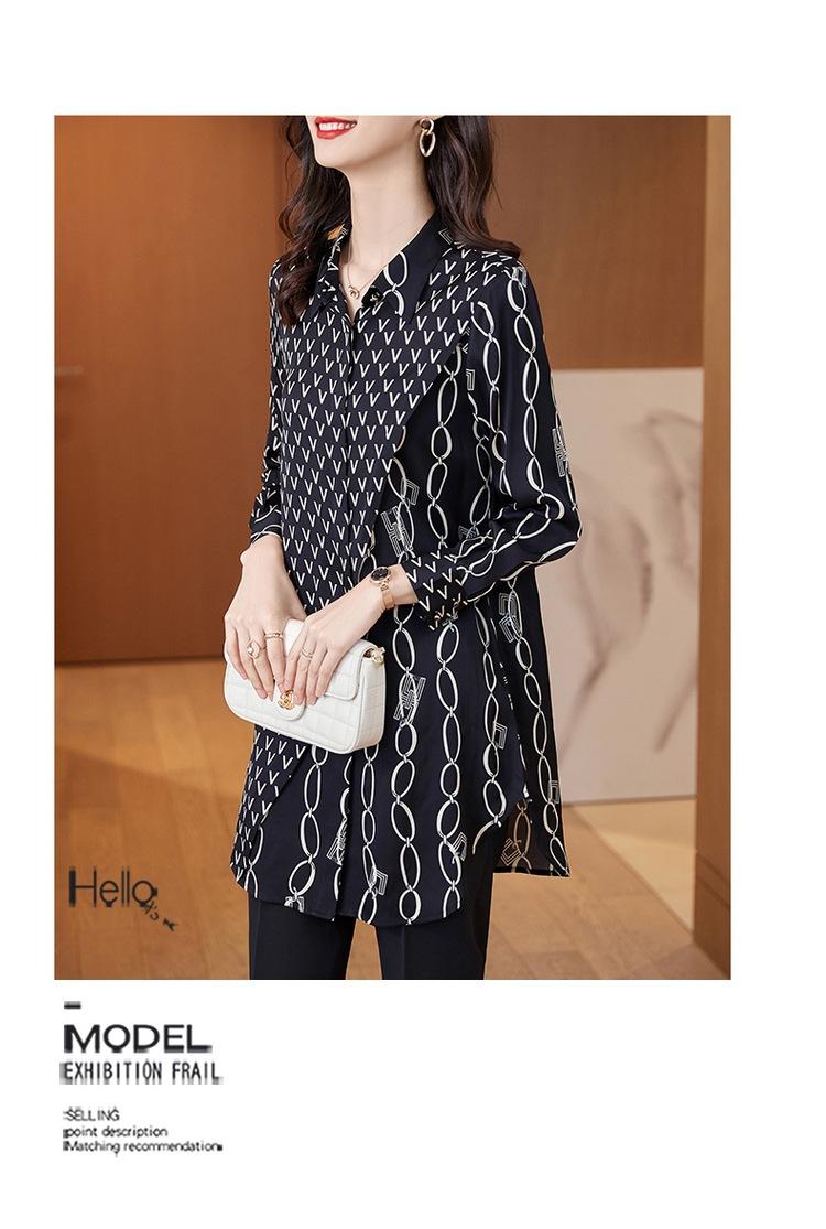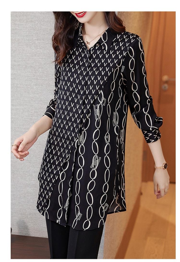 Camisa de Gasa para Mujer Manga Larga Top 2023 Nueva Moda Primavera Sentido Occidental Largo Medio Camisa Floral