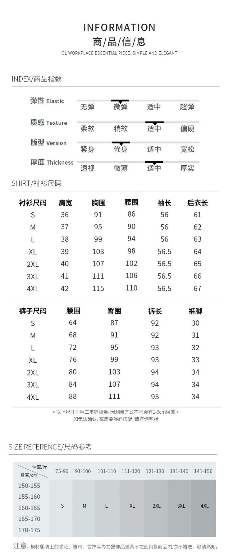 One-piece white shirt, One-piece black shirt, White shirt + black trousers, Black shirt + black trousers