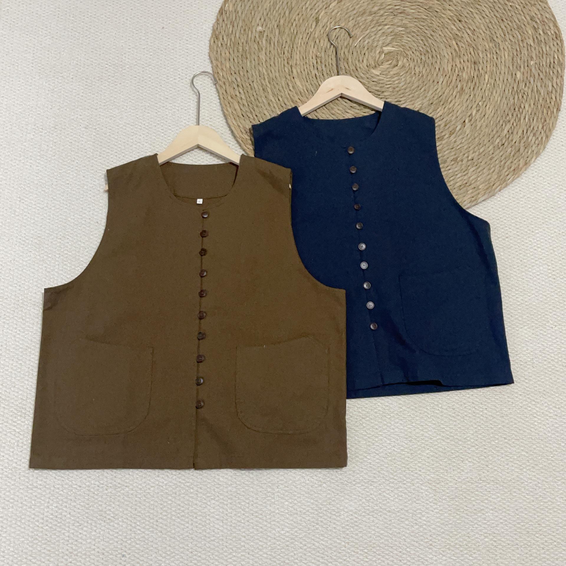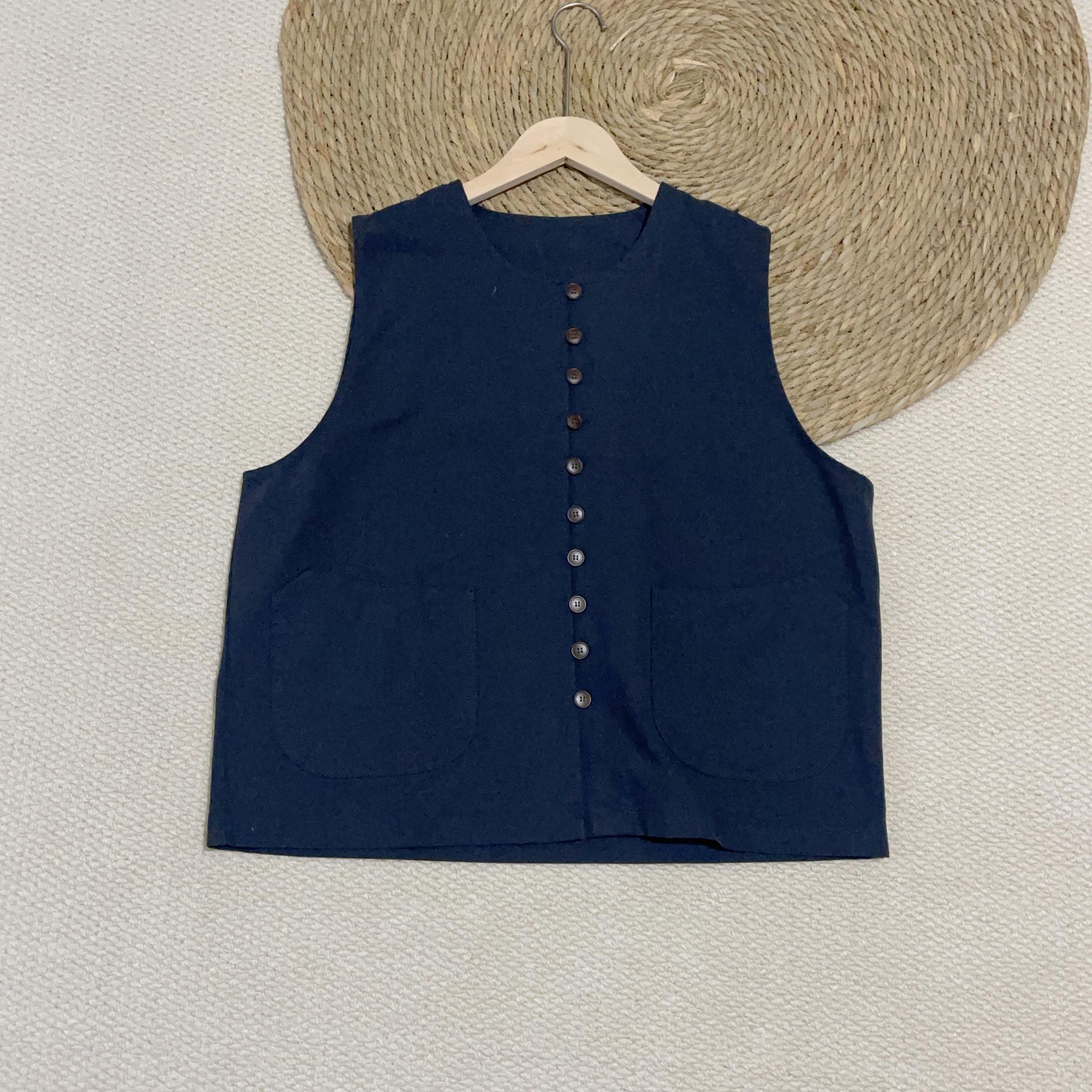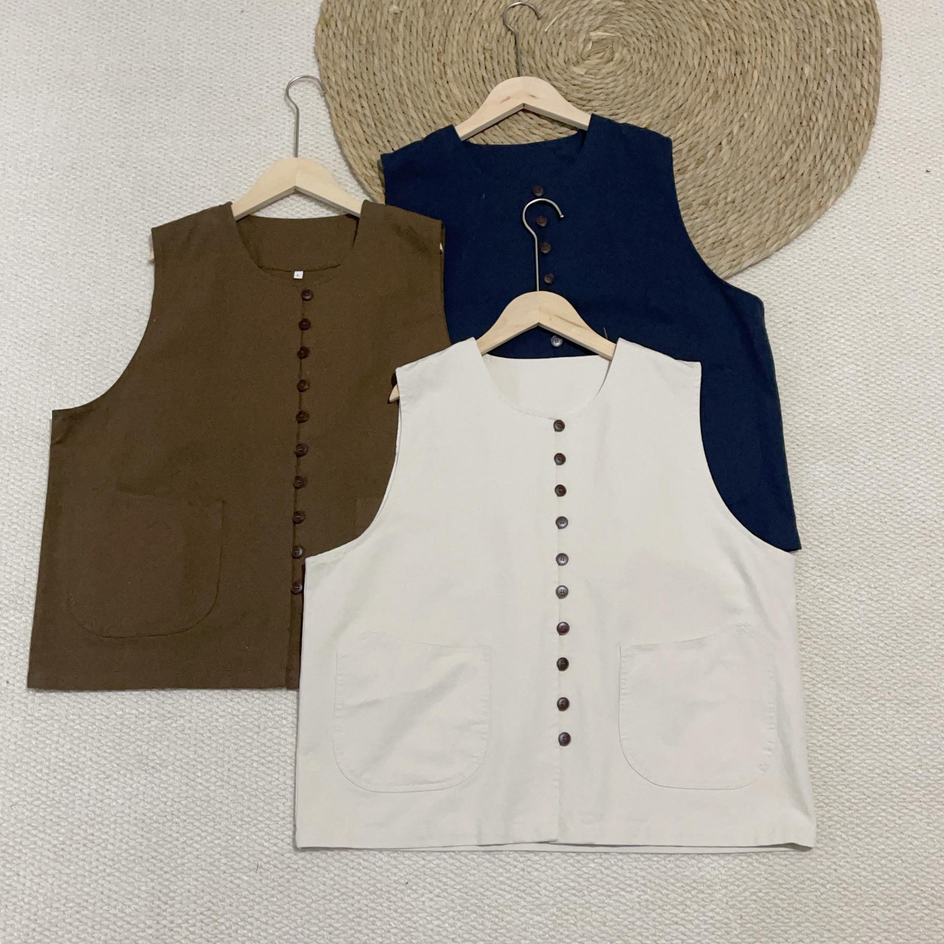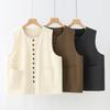 Chaleco de Algodón Primavera 2025 Nuevo Diseño Apilado Cuello Redondo Chaleco Top para Mujer Cárdigan Sencillo Chaqueta sin Mangas