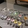 Venta Caliente Oro Rosa Cristal Verde Diamante Rojo Azul Circonita Anillo Apertura Ajustable Color Tesoro Cristal Anillo de Diamante Anillo de Compromiso