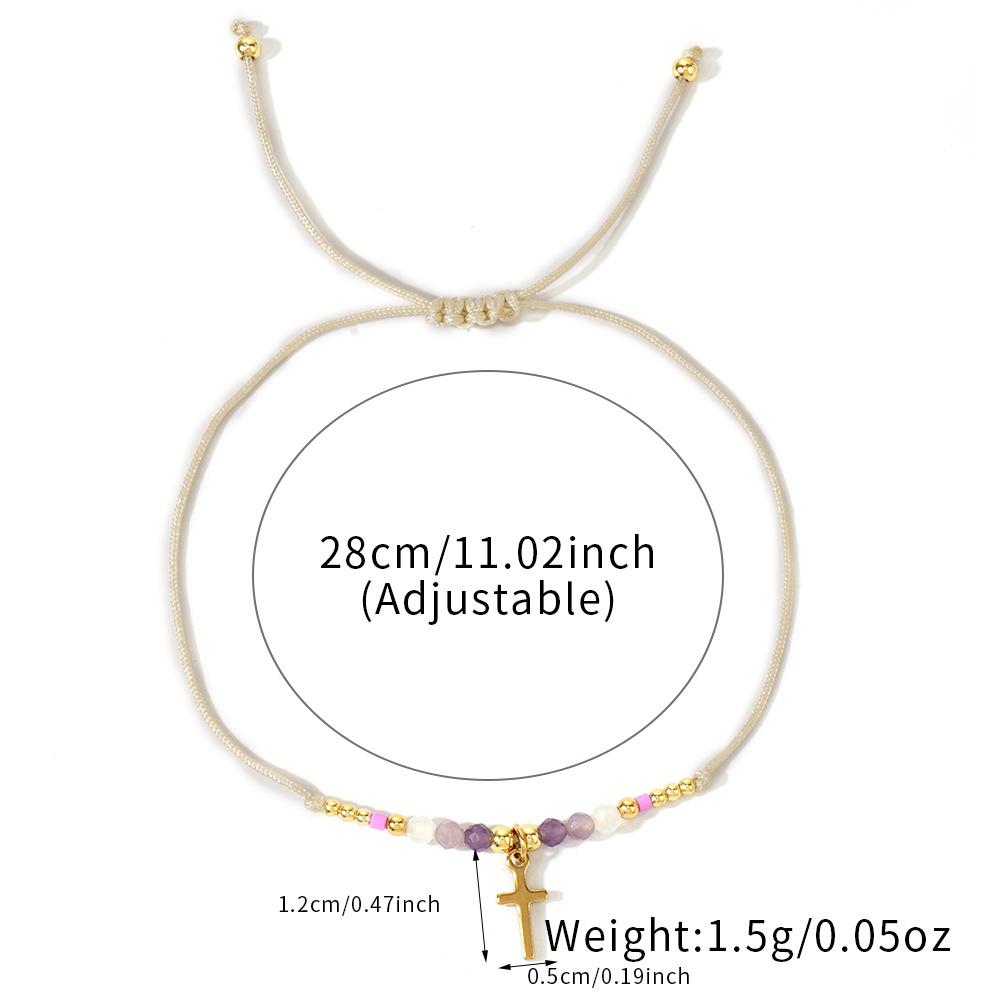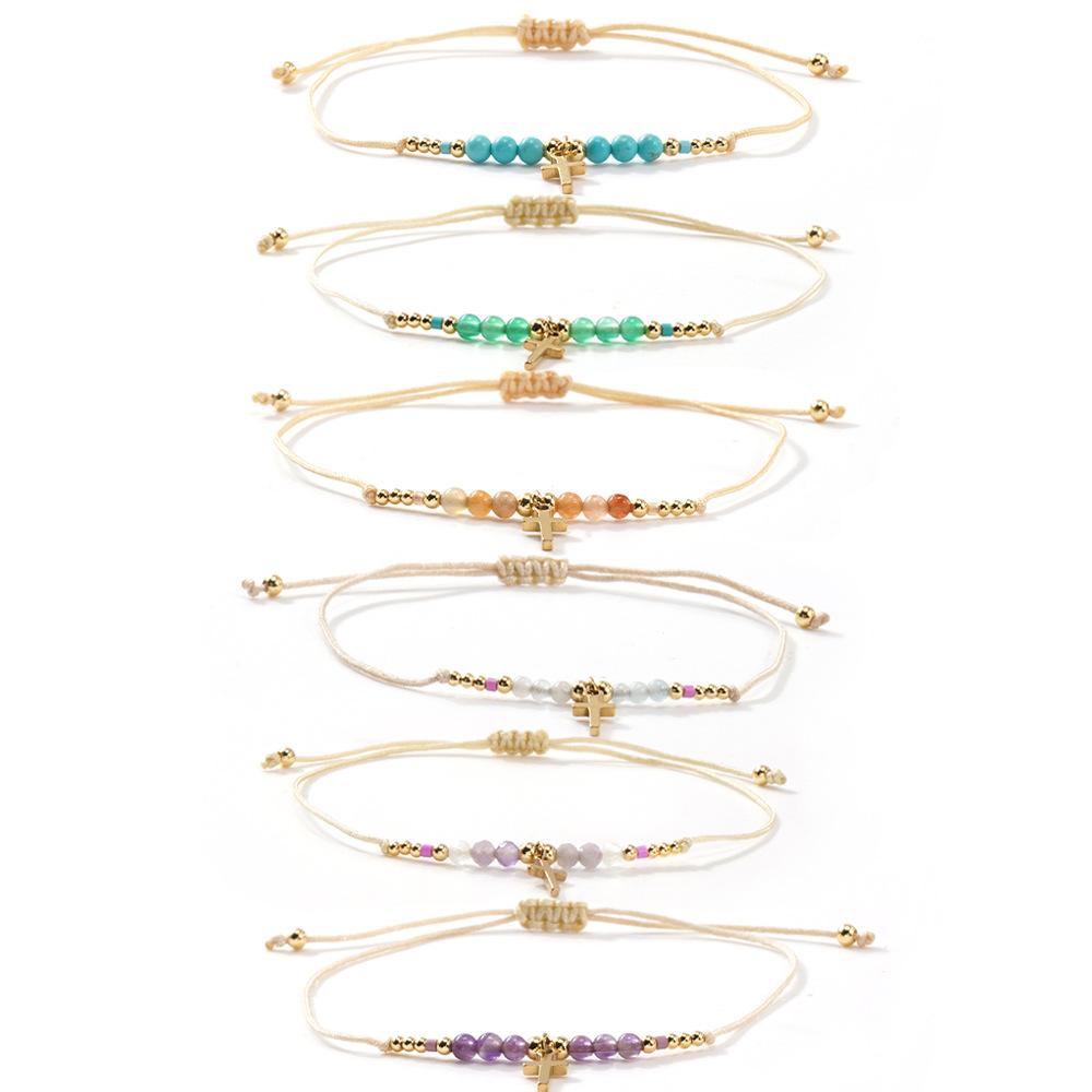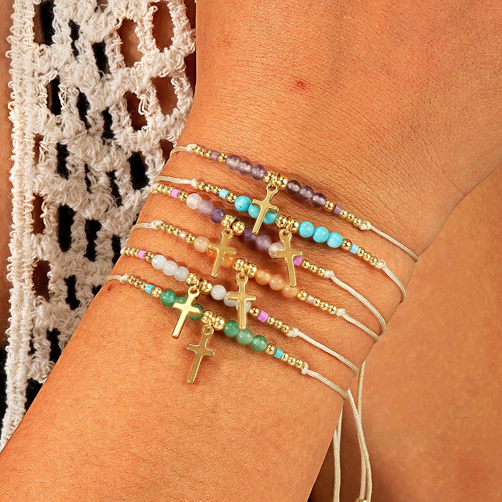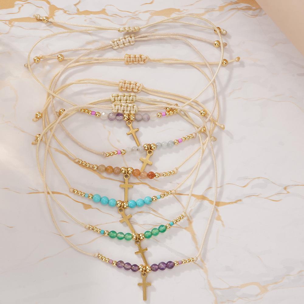 2025 nuevo estilo ins pulsera cruz de piedra semipreciosa diseño nicho cordón ajustable lujo ligero joyería de mano al por mayor